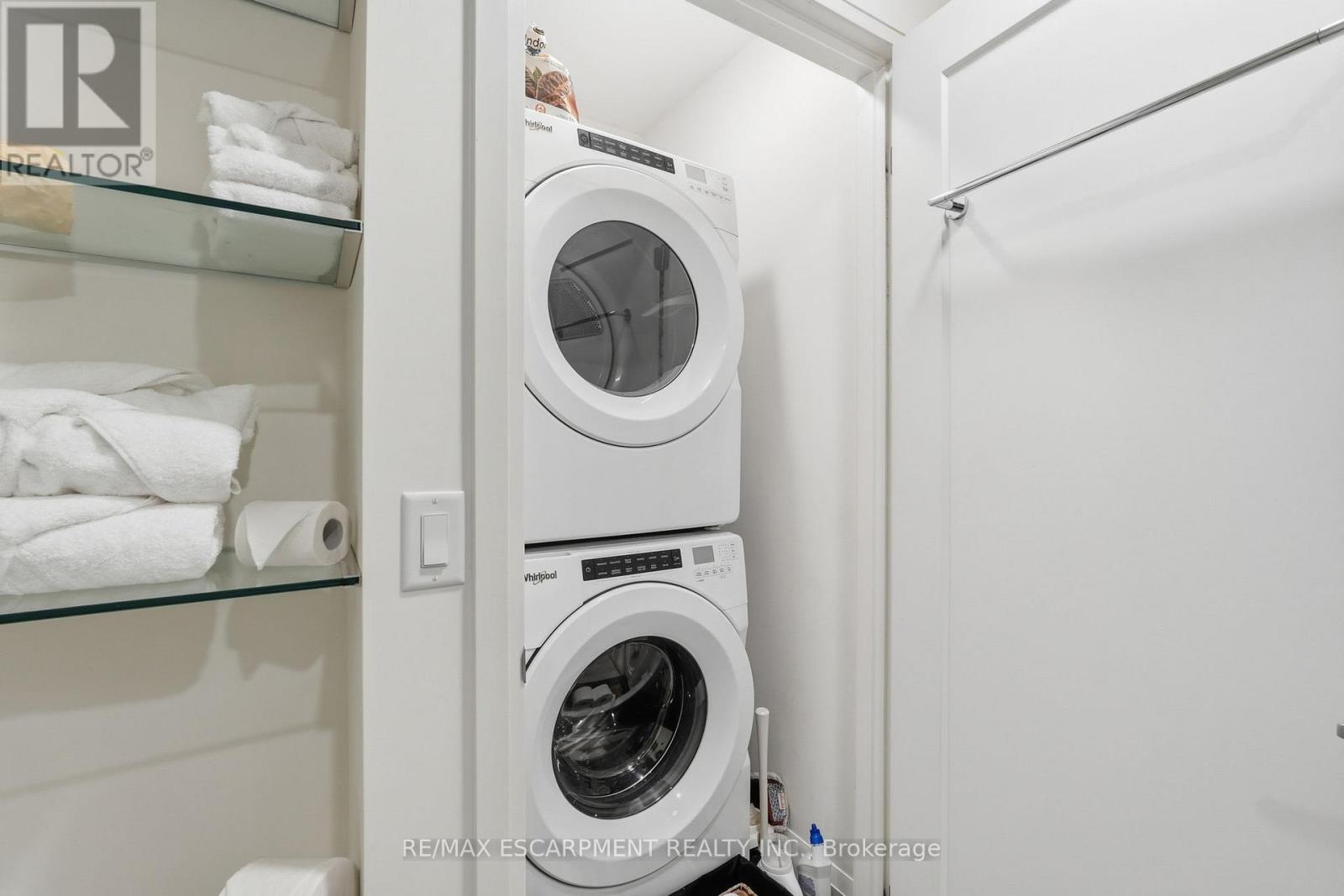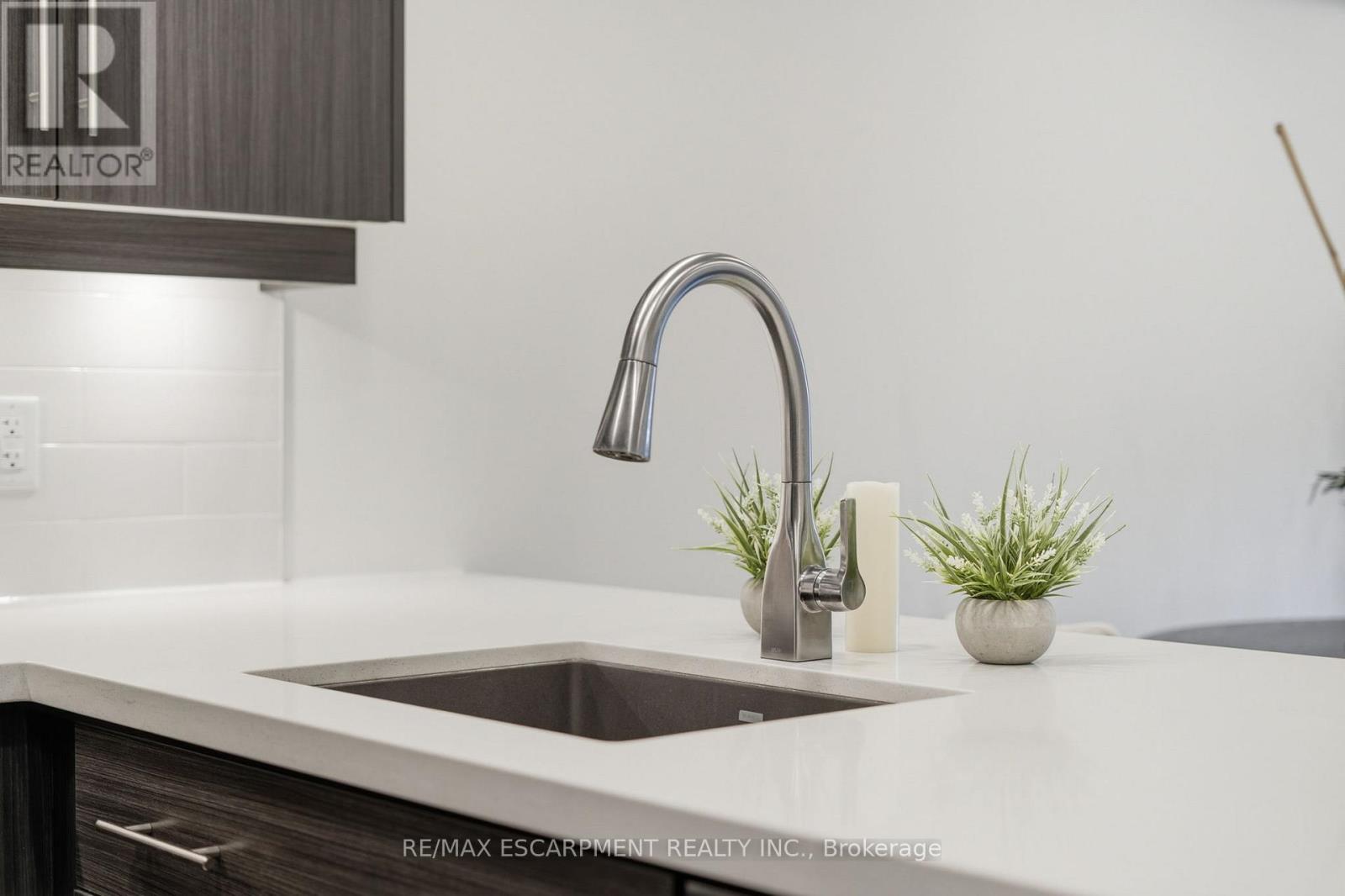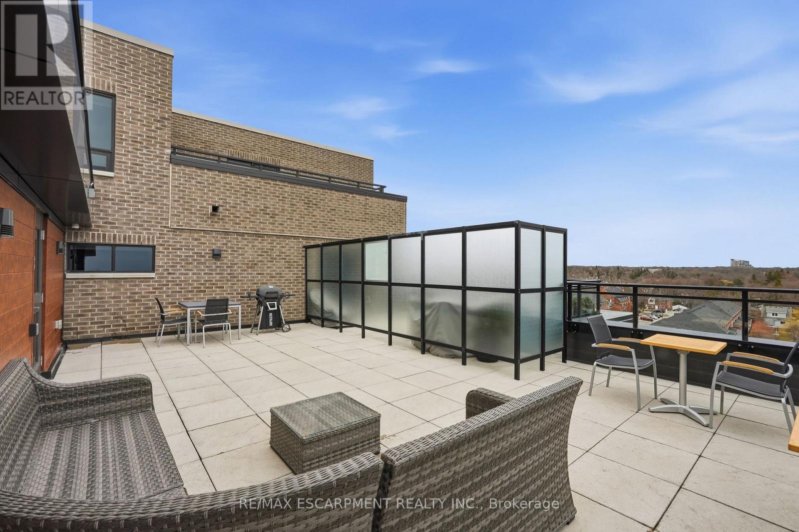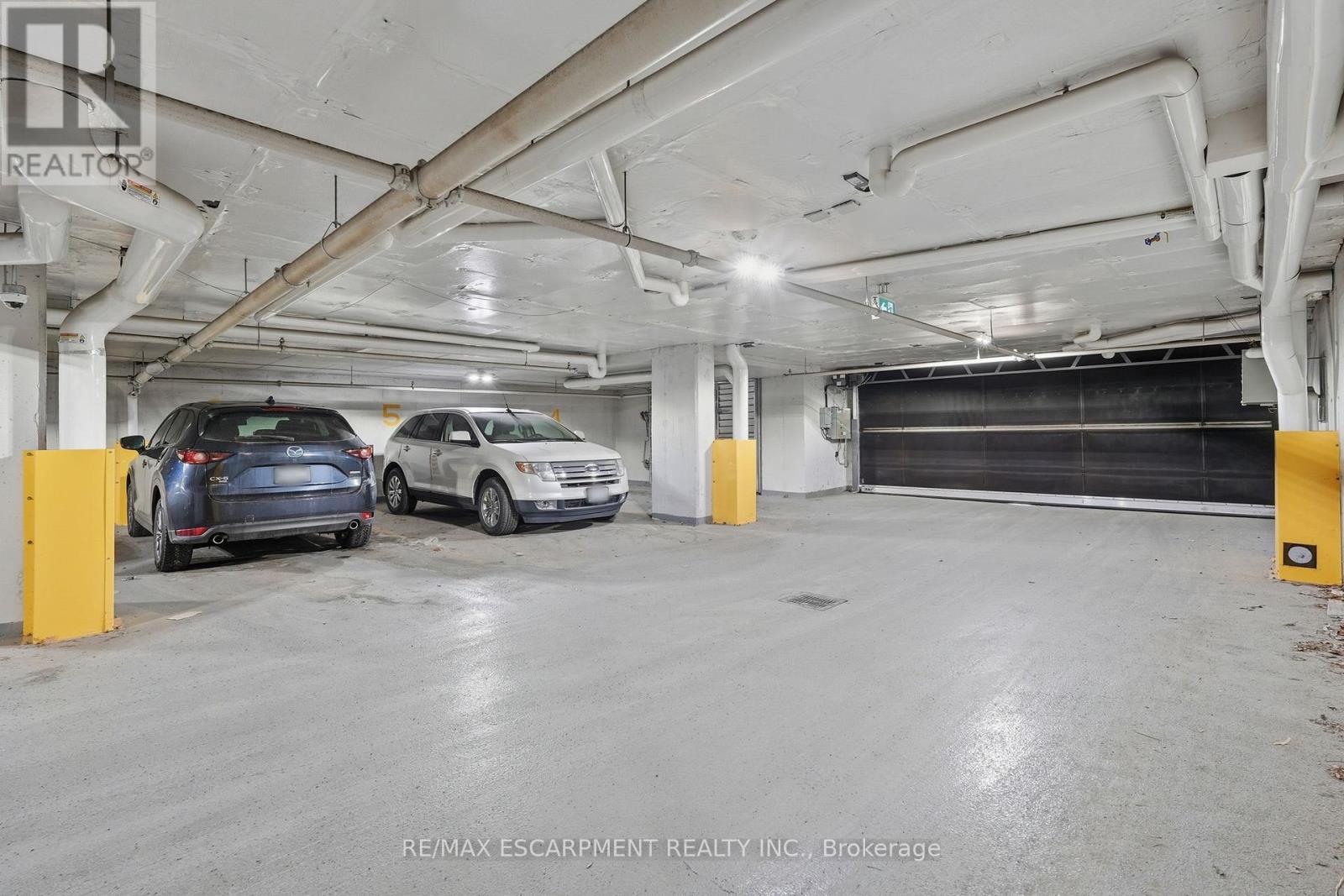 Tucked on a quiet, mature side street in sought-after Waterdown, this stylish south-facing 1-bedroom + Den suite with 1 garage parking and locker at "The View" offers you a rare blend of peaceful surroundings and walkable convenience. Just steps to the quaint downtown core, local shops, and the scenic trails and lookout points along the Niagara Escarpment, the location feels both connected and tucked away. From inside the well-cared for Unit 201, you'll enjoy tranquil views of trees that create a true sense of calm. Thoughtfully designed, the suite features a versatile den ideal for a home office or hobby room, a spacious dining area that can accommodate a full table set, a spacious living room with a wall-mounted electric fireplace, and a private balcony to enjoy. The kitchen is well-appointed with white quartz countertops, stainless steel appliances, and a generous peninsula for everyday living and entertaining. The bedroom easily fits a complete furniture set, while the spa-like bathroom offers a tiled walk-in shower, linen storage, large floating vanity, and a laundry machine closet. This well-maintained 6-year-old building feels like an extension of your home, with concierge/security staff that know your name, a fully equipped gym, expansive party room w prep kitchen, cozy lounge, 6th floor terraces w seating and wonderful views, a pet spa, EV parking, and lots of parking for your guests. While being a quick drive to major highways, GO Stations and major shopping centers; your new home awaits in Unit 201, a peaceful, well-designed suite in Waterdown's most modern yet charming settings. (id:4555)