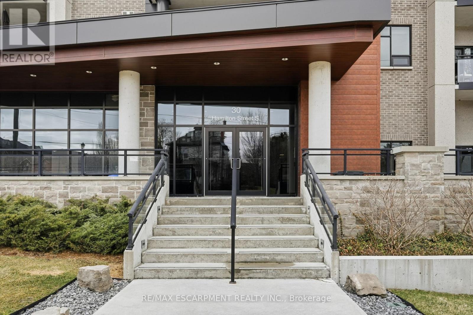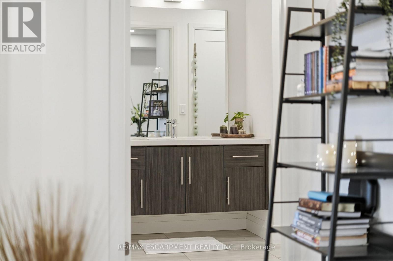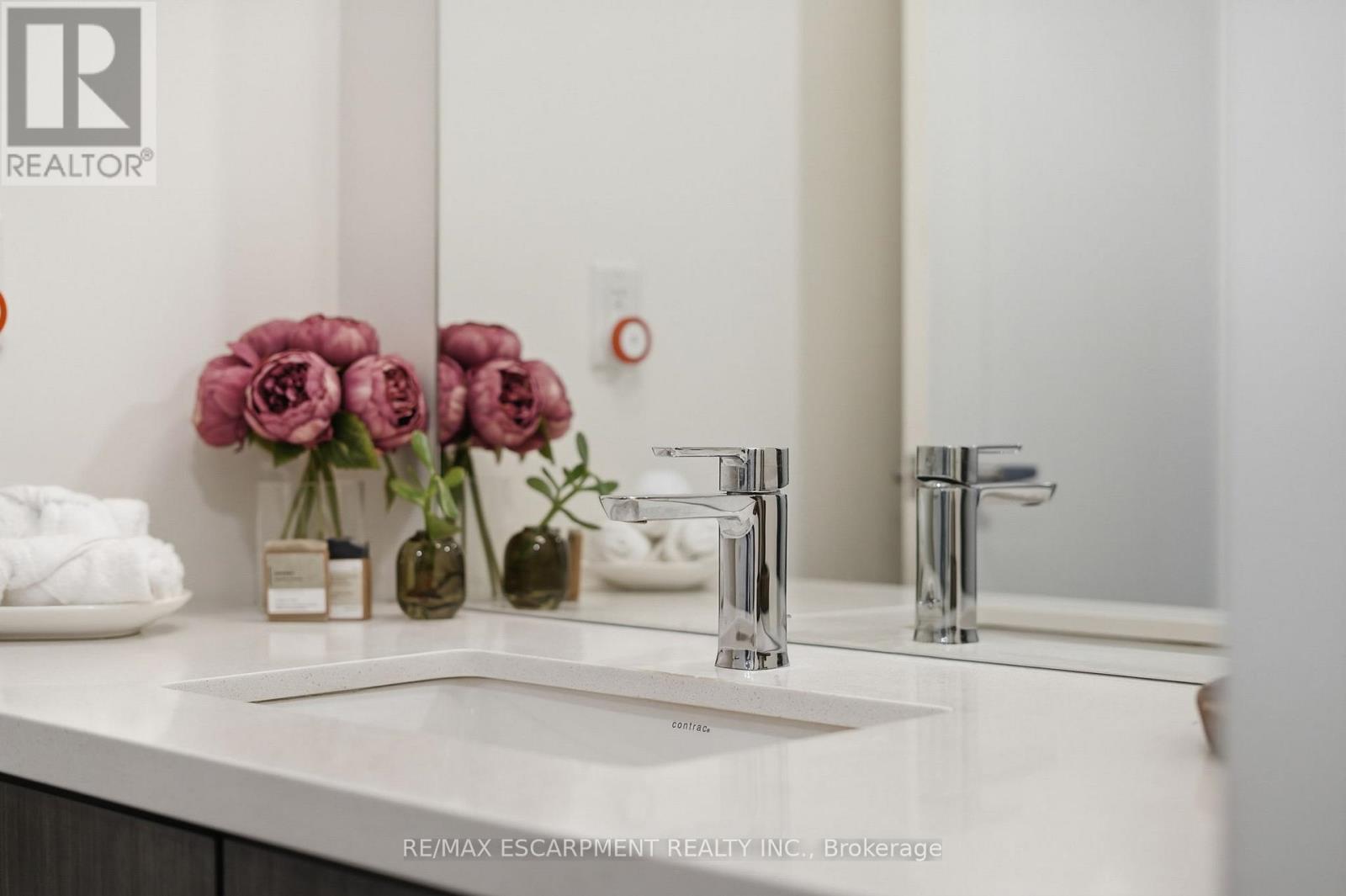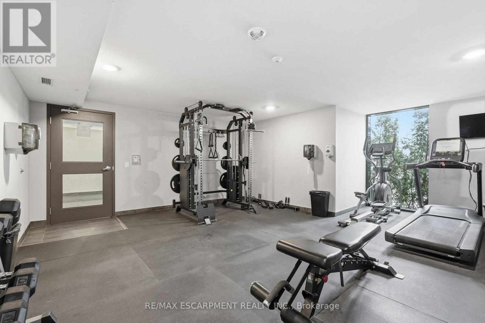 Tucked on a quiet, mature side street in sought-after Waterdown, this stylish south-facing 1-bedroom + Den suite with 1 garage parking and locker at "The View" offers you a rare blend of peaceful surroundings and walkable convenience. Just steps to the quaint downtown core, local shops, and the scenic trails and lookout points along the Niagara Escarpment, the location feels both connected and tucked away. From inside the well-cared for Unit 201, you'll enjoy tranquil views of trees that create a true sense of calm. Thoughtfully designed, the suite features a versatile den ideal for a home office or hobby room, a spacious dining area that can accommodate a full table set, a spacious living room with a wall-mounted electric fireplace, and a private balcony to enjoy. The kitchen is well-appointed with white quartz countertops, stainless steel appliances, and a generous peninsula for everyday living and entertaining. The bedroom easily fits a complete furniture set, while the spa-like bathroom offers a tiled walk-in shower, linen storage, large floating vanity, and a laundry machine closet. This well-maintained 6-year-old building feels like an extension of your home, with concierge/security staff that know your name, a fully equipped gym, expansive party room w prep kitchen, cozy lounge, 6th floor terraces w seating and wonderful views, a pet spa, EV parking, and lots of parking for your guests. While being a quick drive to major highways, GO Stations and major shopping centers; your new home awaits in Unit 201, a peaceful, well-designed suite in Waterdown's most modern yet charming settings. (id:4555)