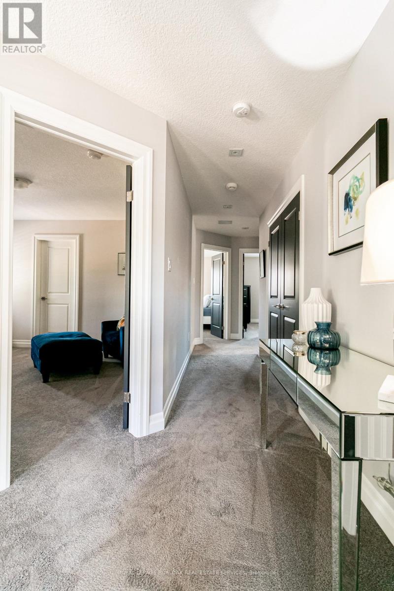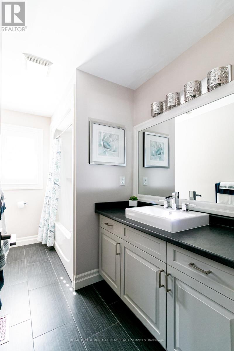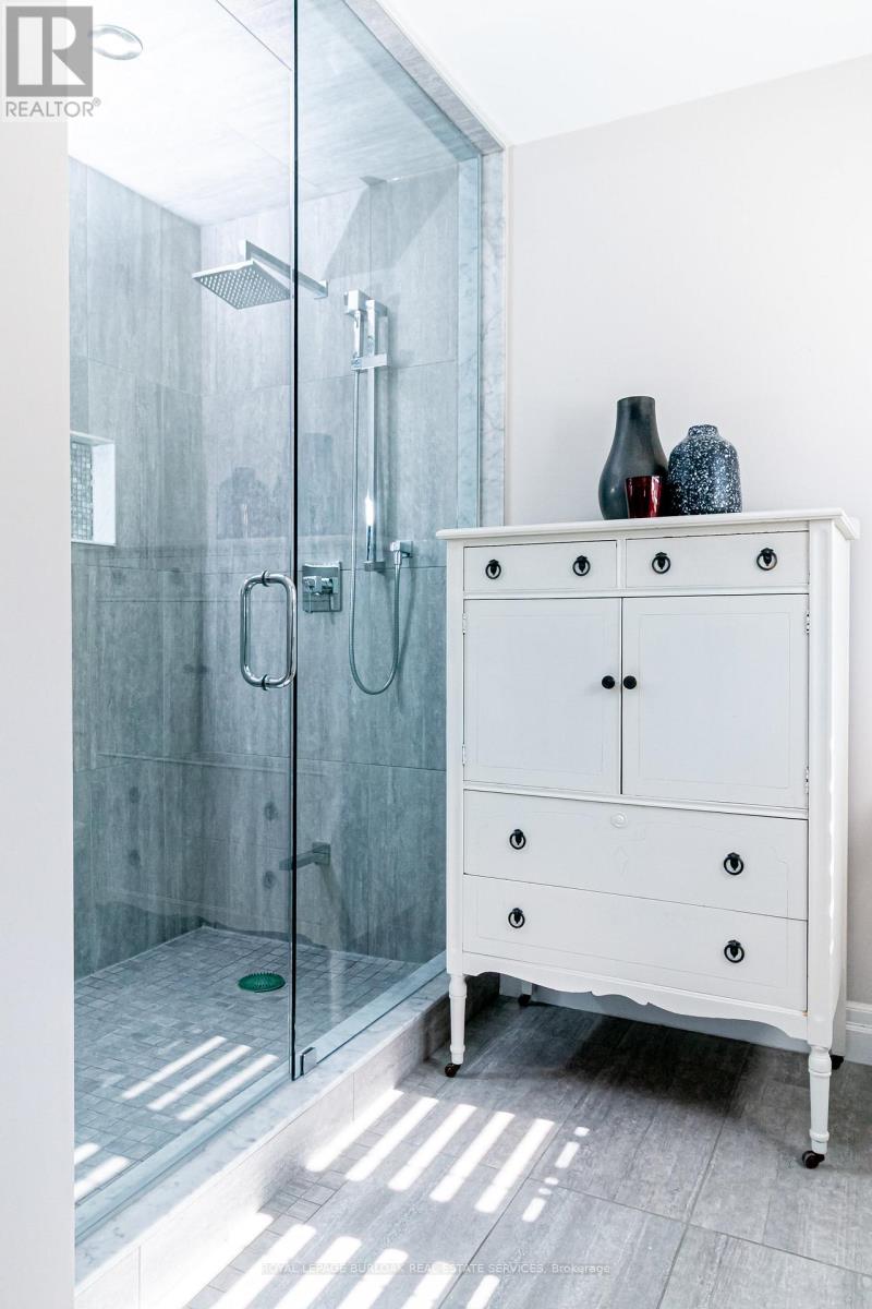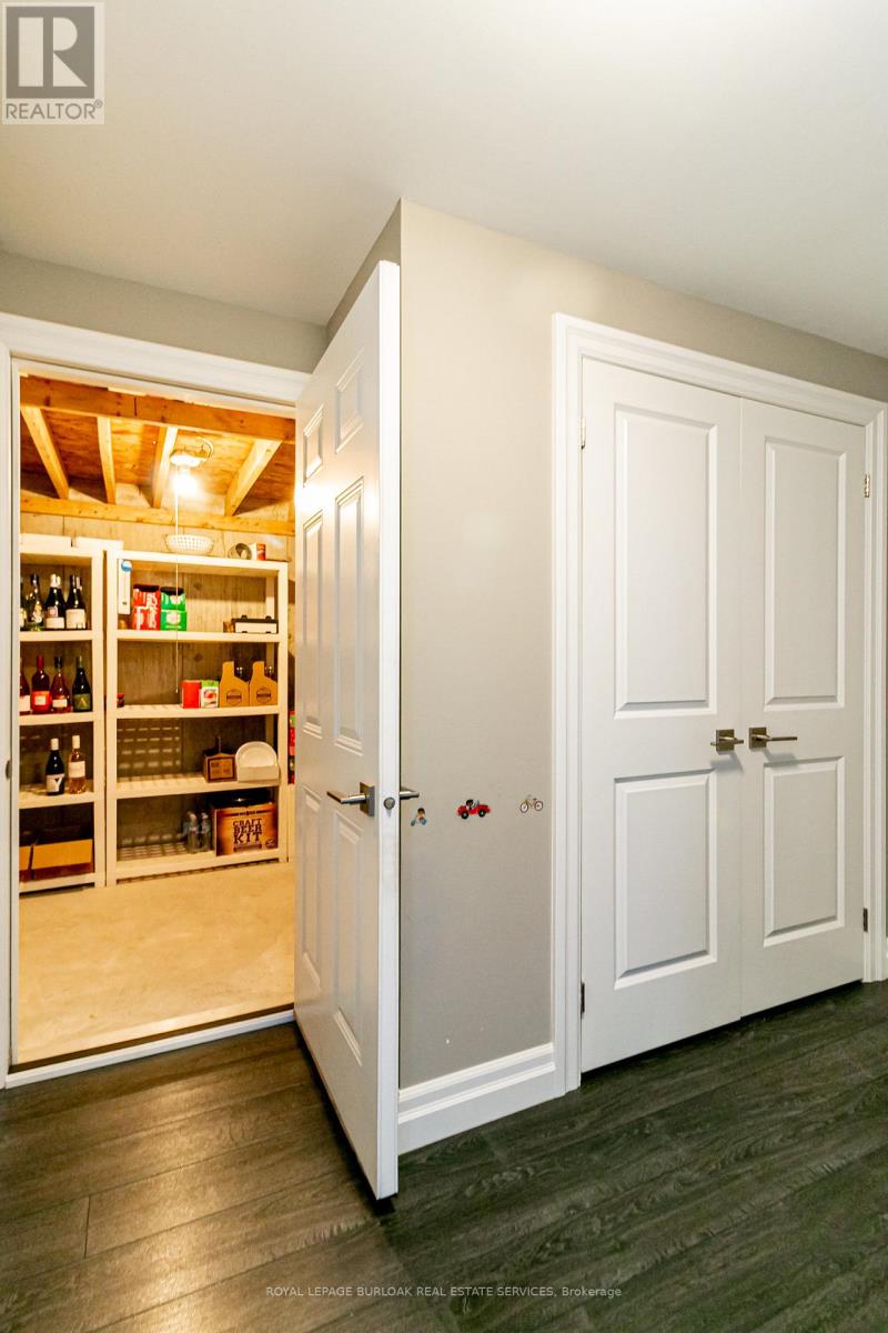 Welcome to this breathtaking Galli Custom-Built 4+1 bedroom, 4-bathroom home offering a coveted corner lot in the sought-after Gilbert neighbourhood on the Hamilton Mountain. Showcasing timeless elegance, and premium finishes, this home blends modern luxury with everyday comfort. A rare triple-car garage with roll-through access to the backyard, an exposed aggregate driveway and patio, and professionally landscaped grounds with multiple areas to relax and entertain create a standout exterior. Bathed in natural light from three sides, the home enjoys a bright, airy feel with views of surrounding greenery. Inside, a soaring two-storey loft foyer with a grand chandelier sets the tone. The open-concept main floor features a formal dining area and a sophisticated living room with a stone accent wall, electric fireplace, floating wood shelves, and a built-in media niche. The stunning custom kitchen is complete with stainless steel appliances, beveled grey subway tile backsplash, and a striking live-edge maple island. Upstairs, four spacious bedrooms offer comfort and functionality, most with walk-in closets and two with private ensuites. The primary retreat features a spa-like ensuite with an oversized glass shower and double vanity, while a separate full bath with a tub serves the remaining bedrooms. A second-floor laundry room, complemented by an additional lower-level laundry, adds convenience for busy or multigenerational households. The fully finished lower level is designed for entertaining, offering a spacious great room, custom media and home theatre setup, a built-in framed aquarium, an additional bedroom, and bathroom. Additional highlights include upgraded lighting throughout, a built-in speaker system, and a security system. Ideally located steps to parks and minutes from the Lincoln M. Alexander Parkway, QEW, Ancaster Meadowlands, and top amenities, this turnkey home offers an elevated lifestyle in one of Hamilton Mountain's most desirable communities. (id:4555)