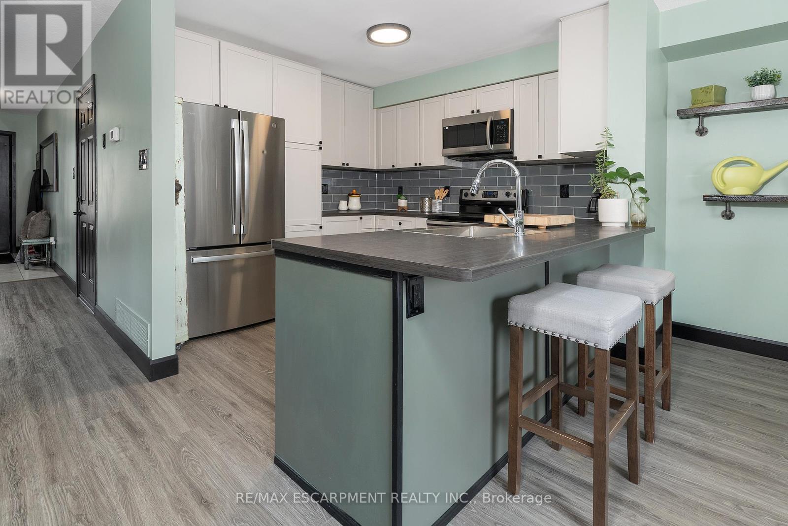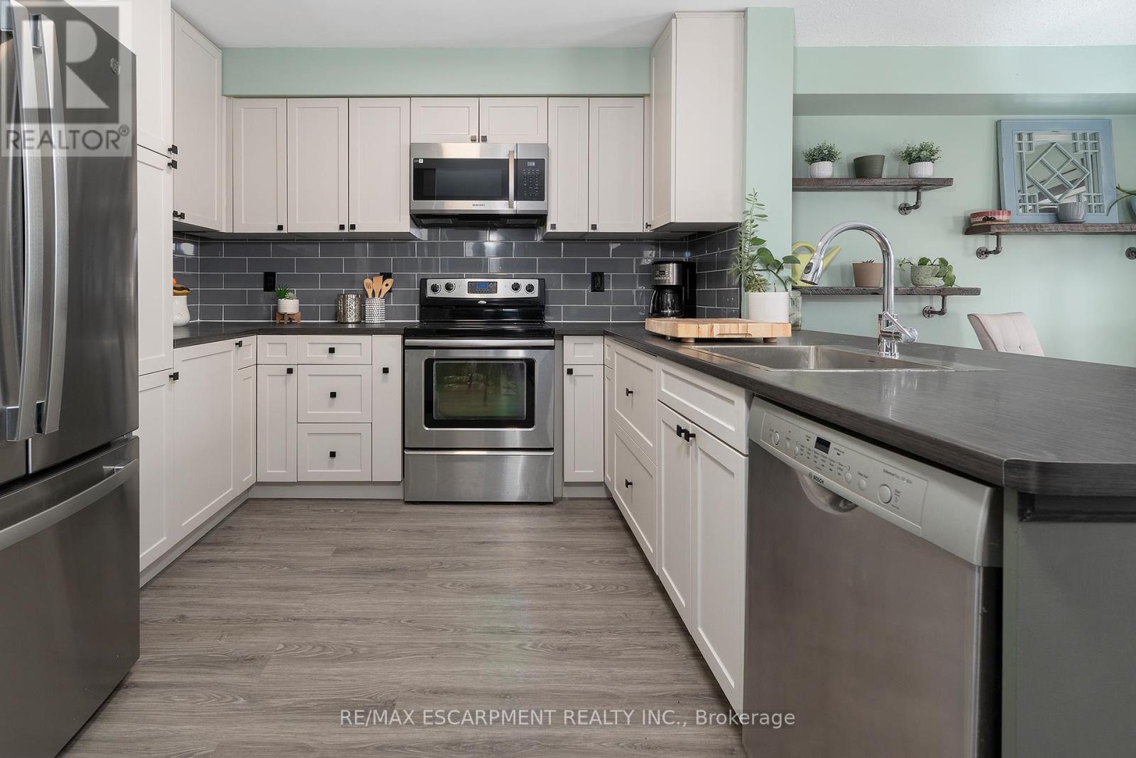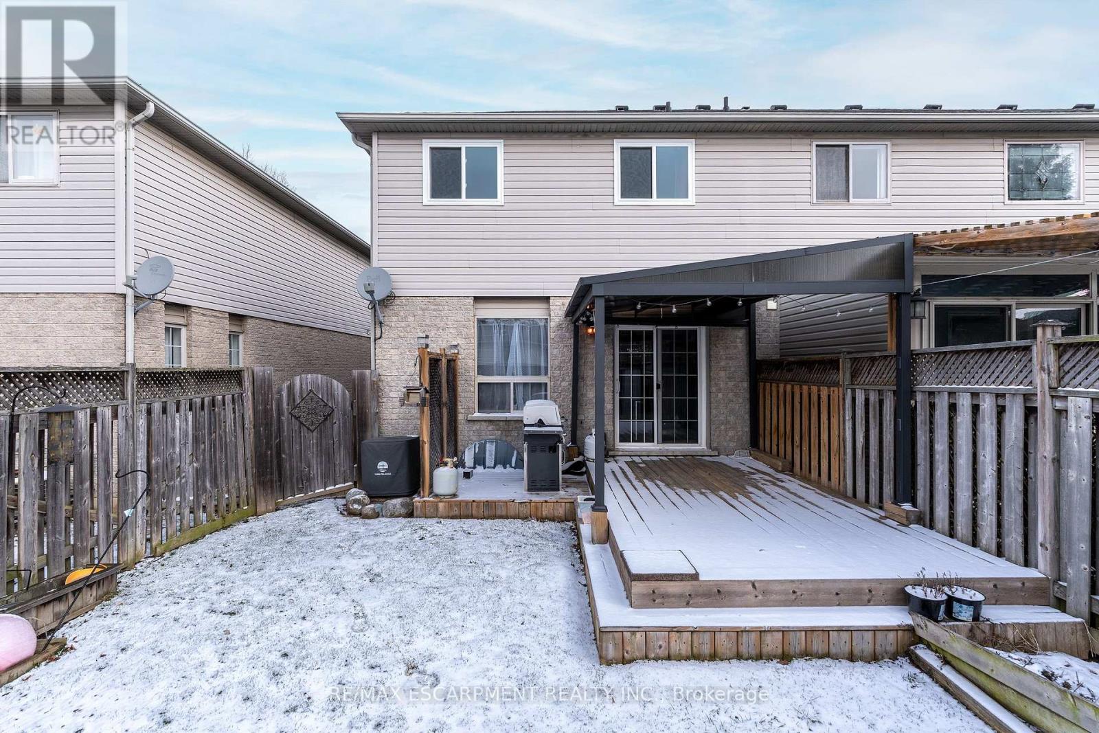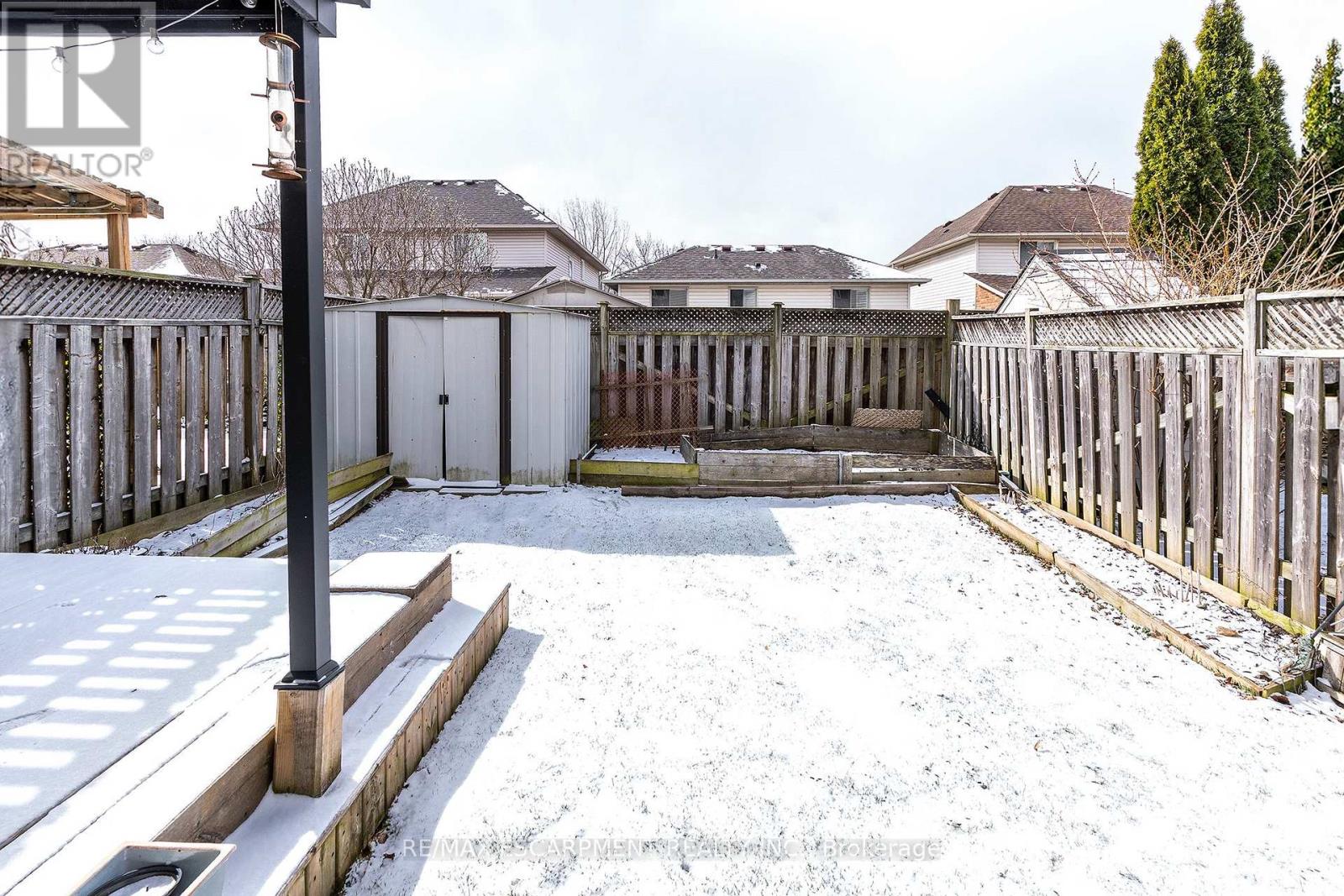 LOCATION LOCATION LOCATION!!!!! Check out this spacious over 1400 Sq ft end unit FREEHOLD town with single car garage in the sought after Maple Lane area. This great layout with open concept living room & eat-in kitchen with walk-out to the back deck make this one ideal for entertaining family & friends. The eat-in kitchen was updated in 2025 and offers plenty of modern white cabinets, modern yet classic subway tile backsplash, ample stone counter space including the large peninsula with additional seating. The living room offers plenty of natural light giving a spacious feel. This floor is complete with the convenience of a 2 piece powder rm. Upstairs offers plenty of space for the family with a three spacious beds and a 3 piece bath. The Master retreat offers plenty of space, ensuite privilege and his and her closets. Looking for even more space for the family the finished basement offers, large rec room perfect for family games or movie nights with plenty of space for an office or kids play area & there is still plenty of room for storage. The fully fenced backyard is a great size for a townhome and offers an extra large covered deck for entertaining and meals and a bonus hook up for gas BBQ and a shed for all your outdoor storage. This home has it ALL and close to all conveniences including highway access for commuting. (id:4555)