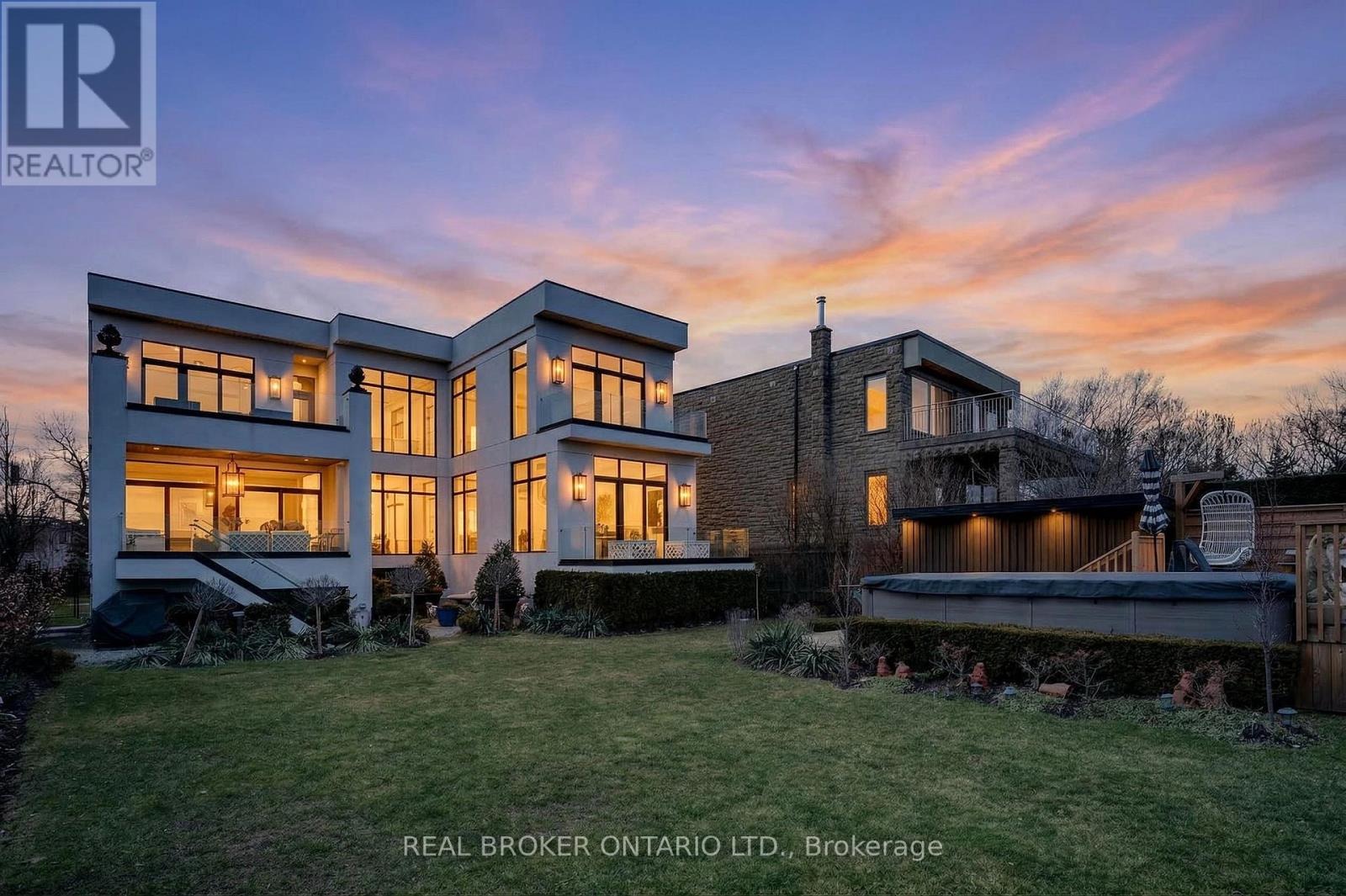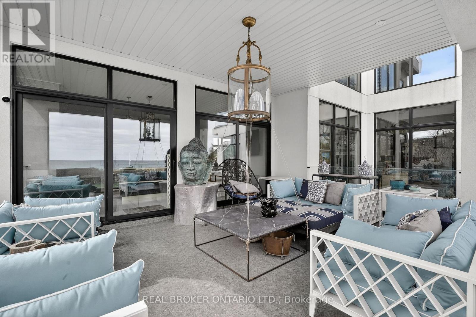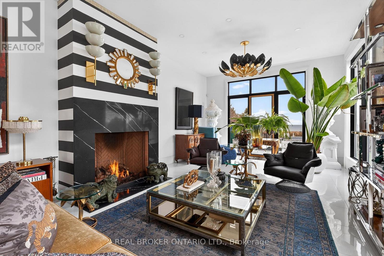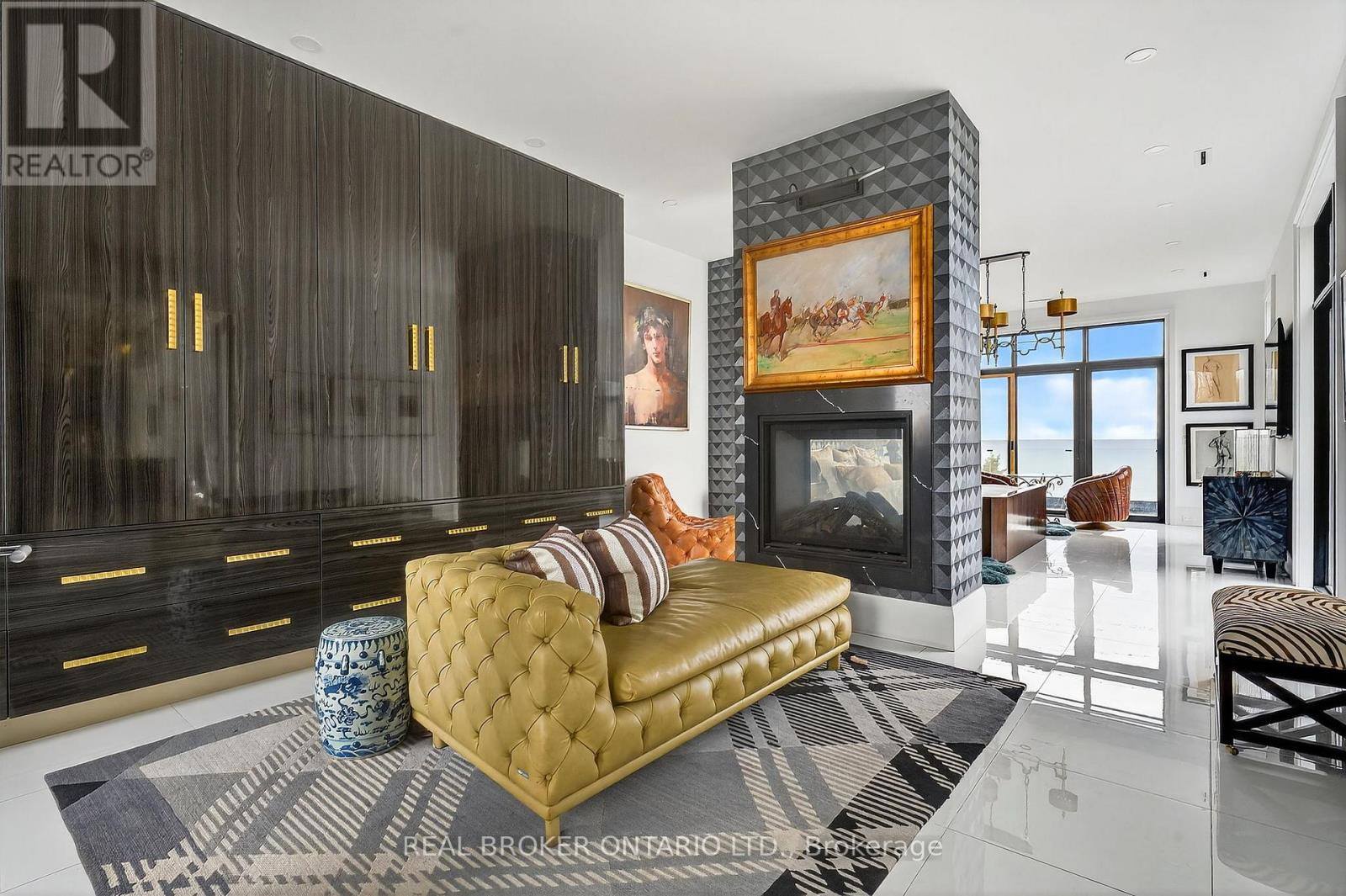 DIRECT WATERFRONT LUXURY. Experience refined lakeside living at 711 Beach Blvd, a 6,700+ sq ft custom masterpiece (2020) situated directly on the 10km Hamilton Waterfront Trail with private beach access. This 3+2 bed, 5 bath sanctuary blends architectural grit with coastal elegance.10' ceilings, bespoke millwork, and hand-cut marble inlays. The grand foyer features a showstopping chandelier of 600 gold spoons and Swarovski accents. A true Chef's kitchen boasts an 8-burner range, dual dishwashers & fridges and a dedicated coffee/bar room overlooking the lake.The primary suite offers a double-sided fireplace and a spa-style bath with a signature gold soaking tub. The lower level adds a gym, media room, and 2 extra bedrooms/offices.4 Duradek terraces, a Jacuzzi swim spa, and professional landscaping on a lot that widens to 72' at the water. Double garage with lift potential + parking for 6. A rare, high-design sanctuary on the shores of Lake Ontario. (id:4555)