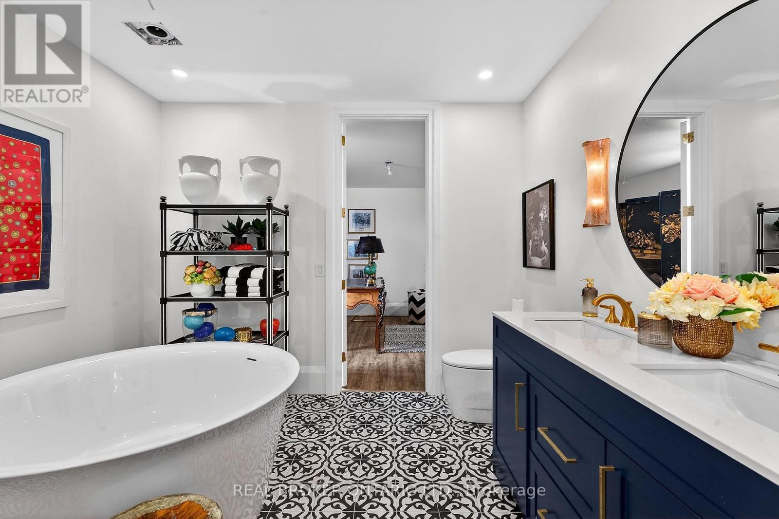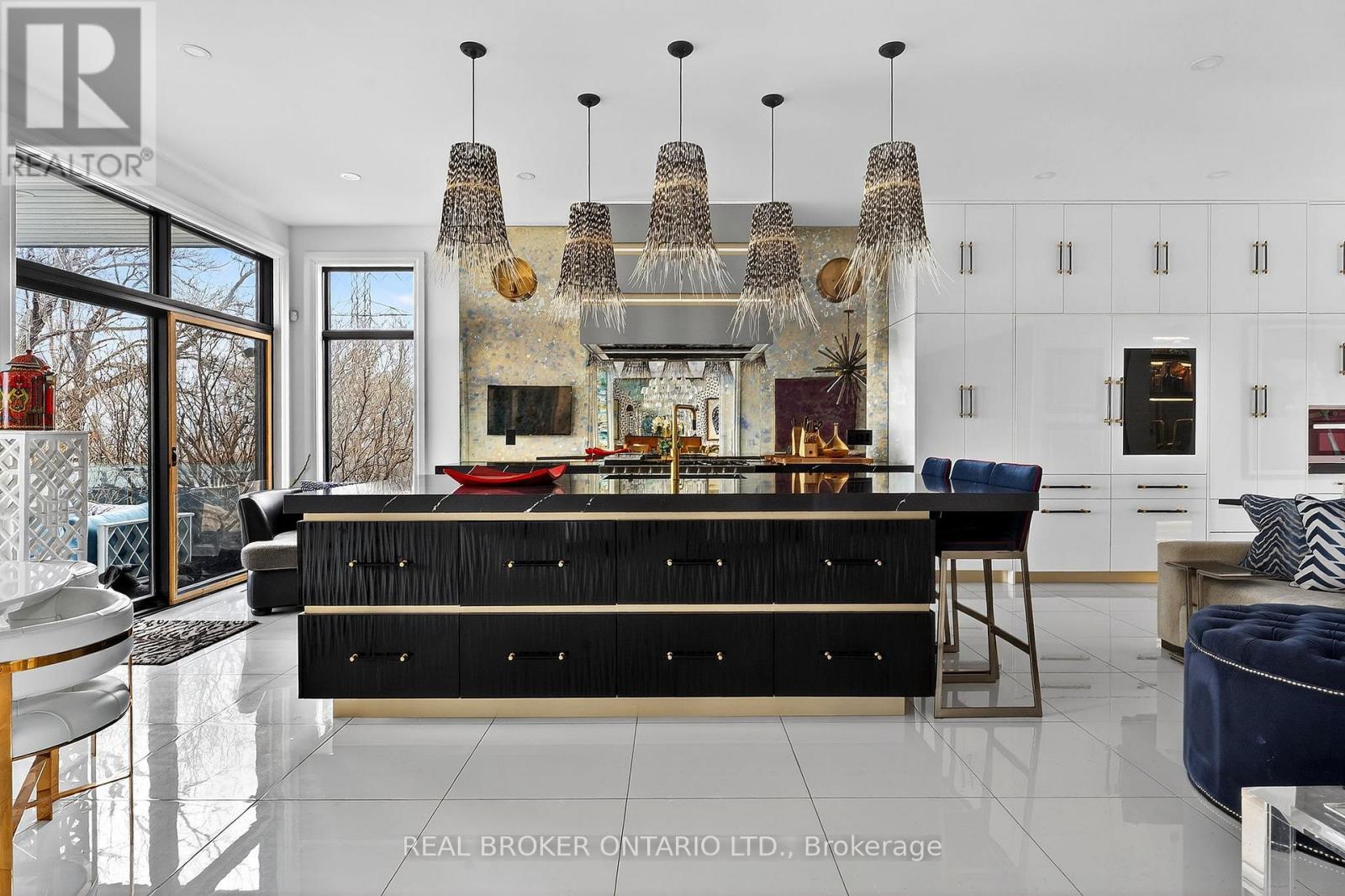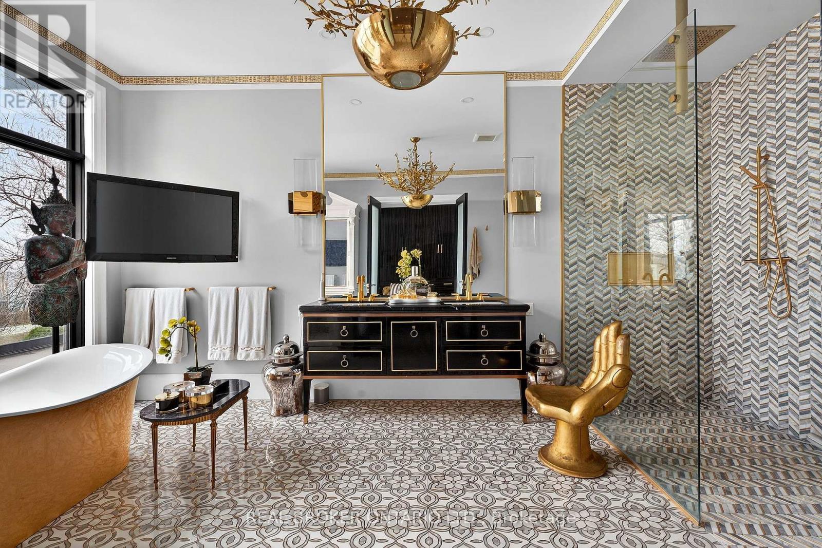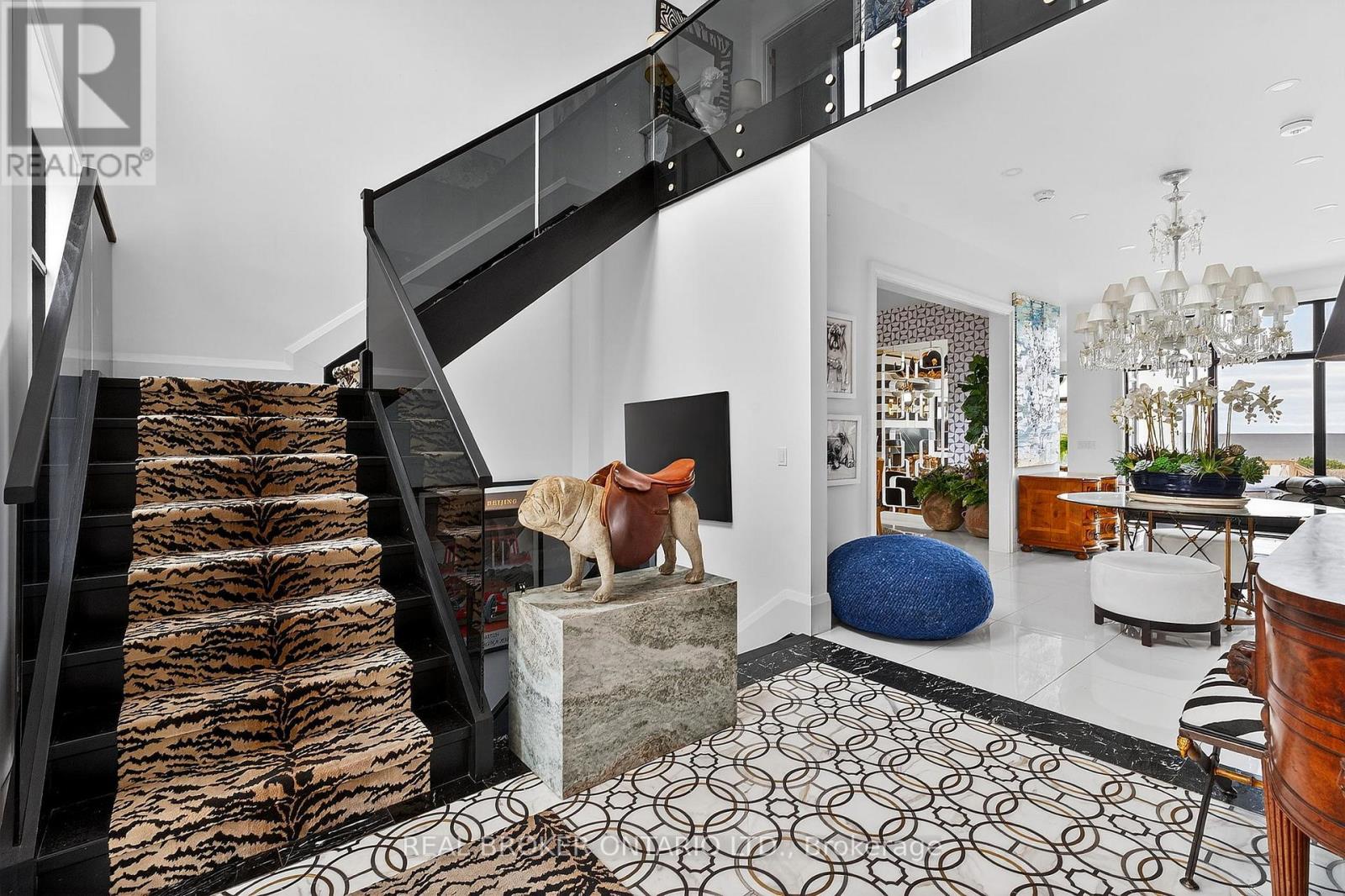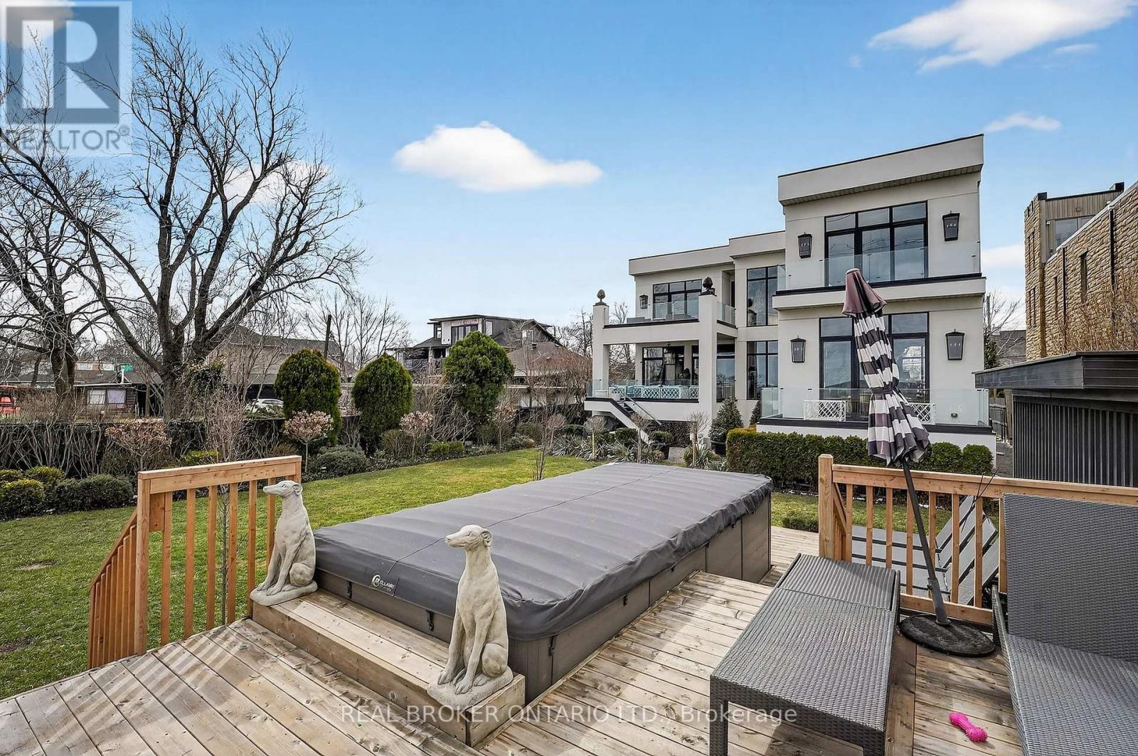 DIRECT WATERFRONT LUXURY. Experience refined lakeside living at 711 Beach Blvd, a 6,700+ sq ft custom masterpiece (2020) situated directly on the 10km Hamilton Waterfront Trail with private beach access. This 3+2 bed, 5 bath sanctuary blends architectural grit with coastal elegance.10' ceilings, bespoke millwork, and hand-cut marble inlays. The grand foyer features a showstopping chandelier of 600 gold spoons and Swarovski accents. A true Chef's kitchen boasts an 8-burner range, dual dishwashers & fridges and a dedicated coffee/bar room overlooking the lake.The primary suite offers a double-sided fireplace and a spa-style bath with a signature gold soaking tub. The lower level adds a gym, media room, and 2 extra bedrooms/offices.4 Duradek terraces, a Jacuzzi swim spa, and professional landscaping on a lot that widens to 72' at the water. Double garage with lift potential + parking for 6. A rare, high-design sanctuary on the shores of Lake Ontario. (id:4555)