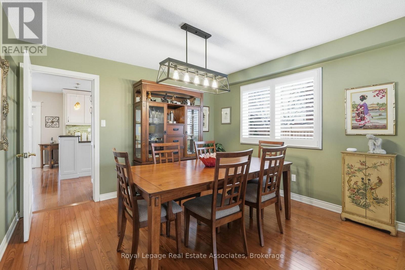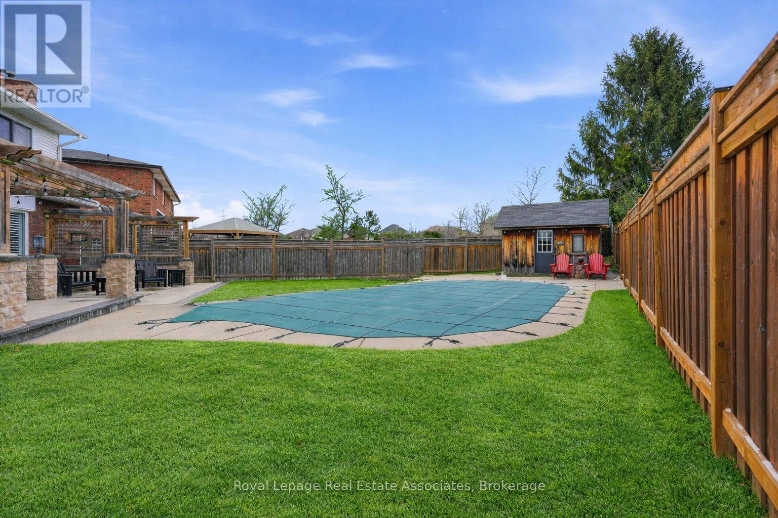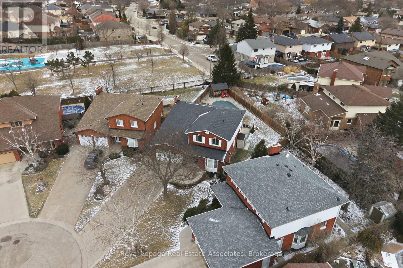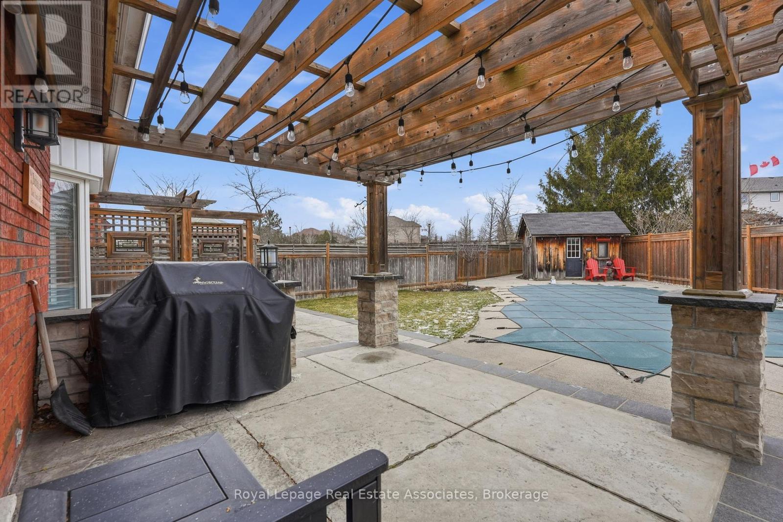 Welcome to 9 Waldorf Court! A classic brick two storey family home tucked away on a quiet court beside Thorner Park. This spacious property offers a double car garage, 4+1 bedrooms, and 2 full plus 2 half bathrooms. The main floor features two comfortable living spaces, hardwood flooring throughout, and a bright eat in kitchen with quartz counters, sleek white cabinetry, and a gas stove. A separate dining room creates the perfect setting for family gatherings. Upstairs, the primary suite includes a beautifully updated ensuite and his and hers closets, along with three additional well sized bedrooms. The finished basement adds even more living space with an entertainment and bar area, an extra bedroom, a crafts room, and plenty of storage. Step outside to enjoy the private backyard with a concrete deck, wood pergola, gas line for the BBQ, and an inground heated pool with a brand new liner, all set on a pie shaped lot with a generous side yard that is perfect for summer lawn games. The backyard also features two sheds, multiple sitting areas, and excellent privacy to enjoy warm summer days. Conveniently located close to shopping and highway access, this is a fantastic opportunity to settle into a well maintained home in a family friendly neighbourhood. (id:4555)