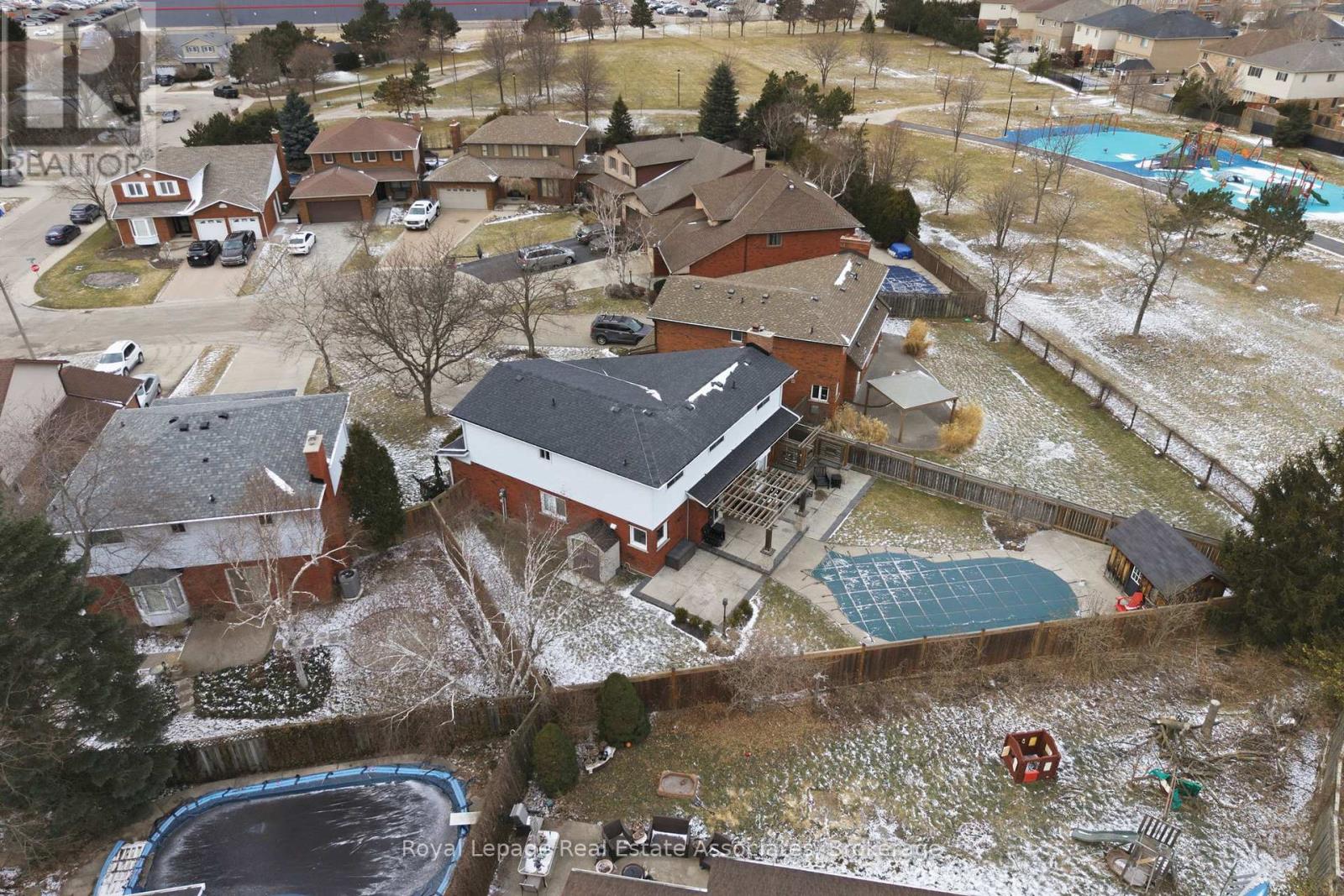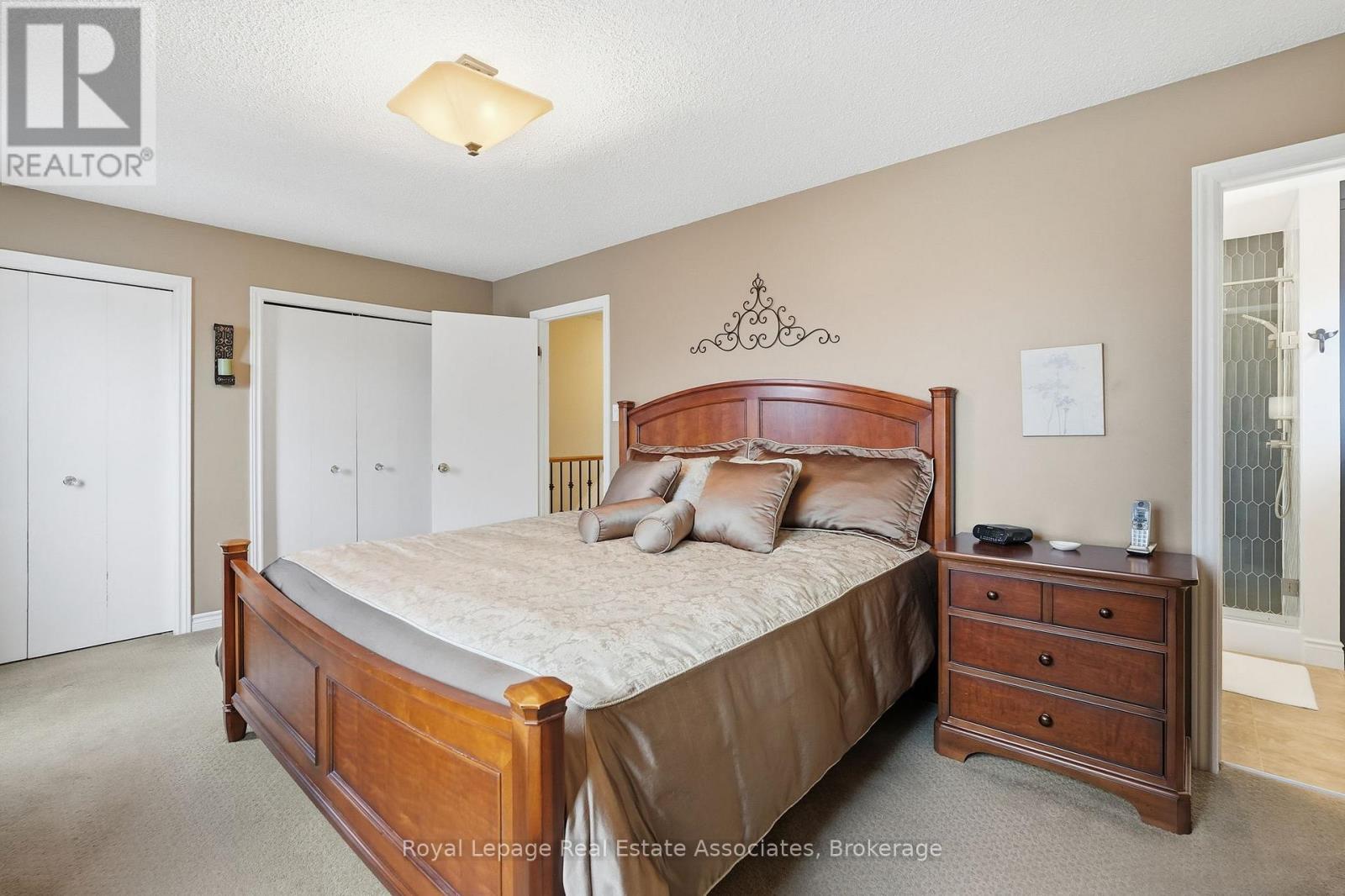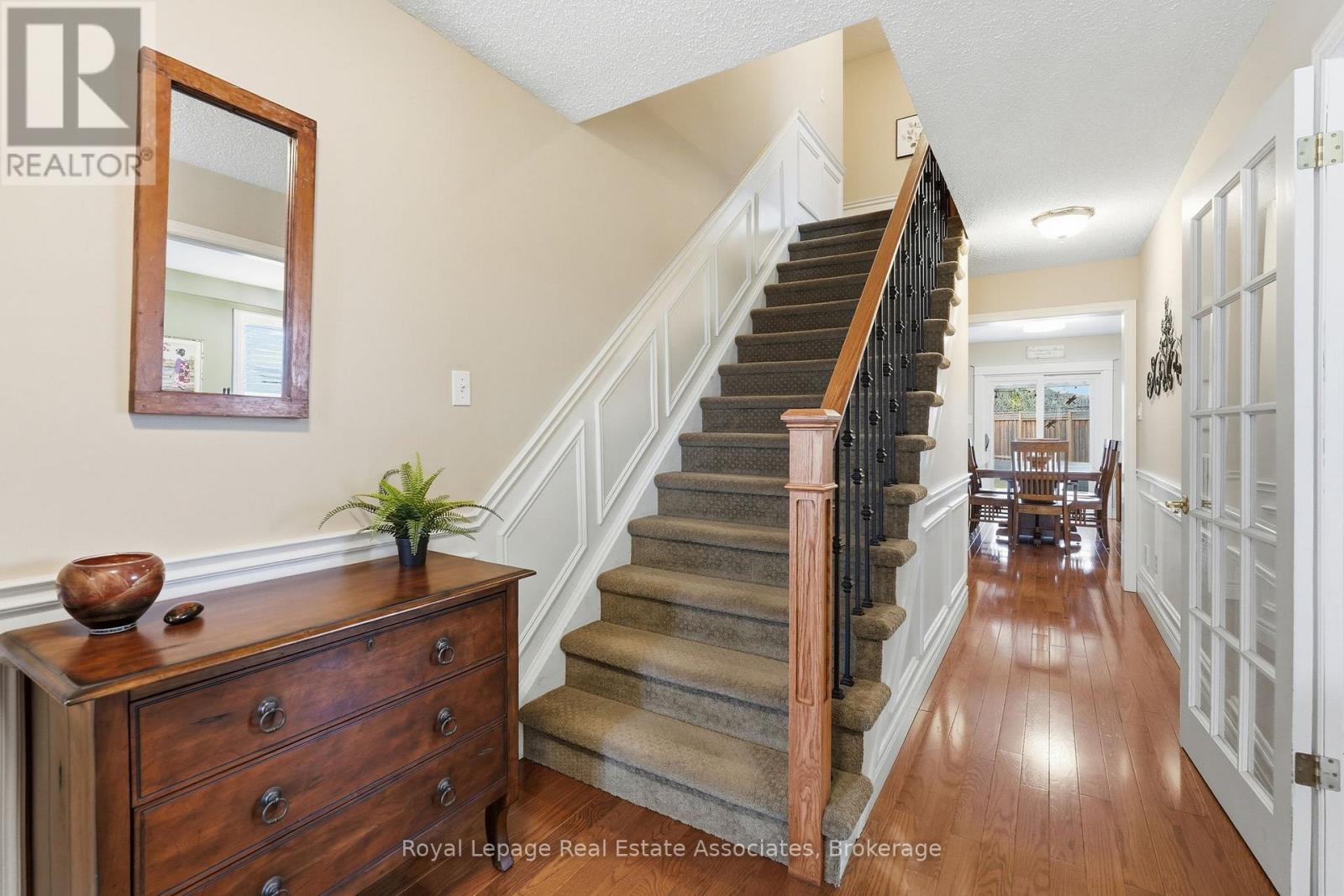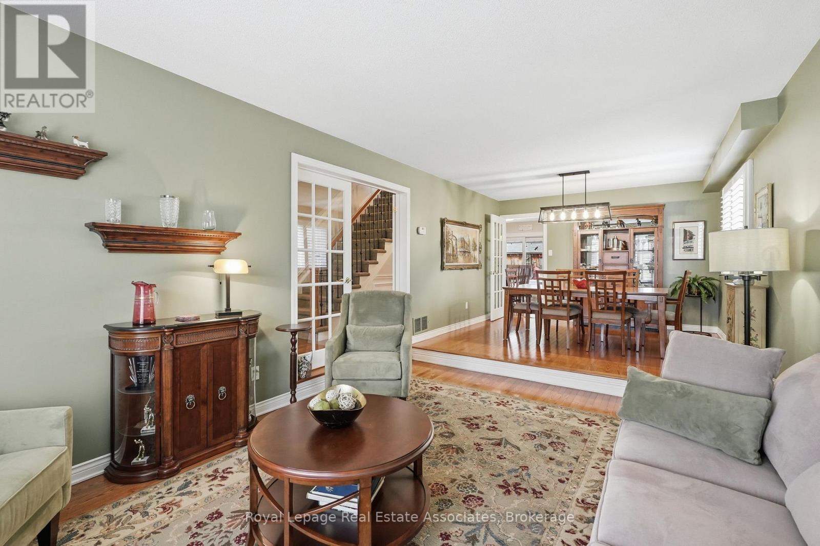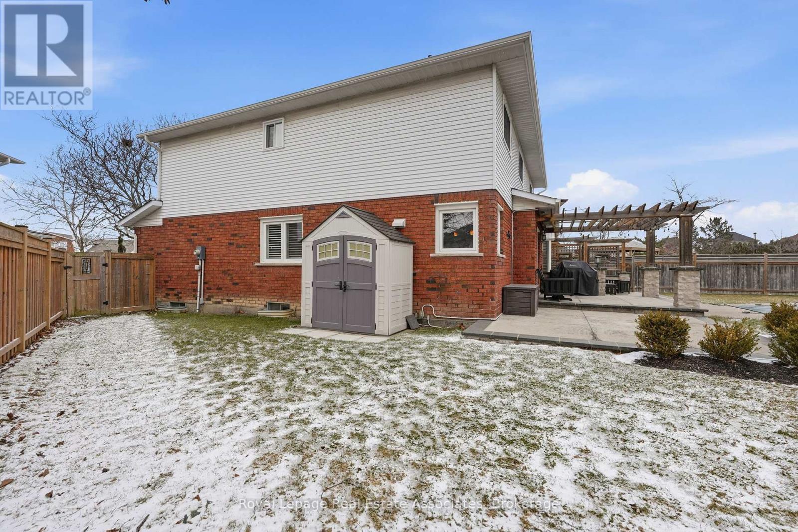 Welcome to 9 Waldorf Court! A classic brick two storey family home tucked away on a quiet court beside Thorner Park. This spacious property offers a double car garage, 4+1 bedrooms, and 2 full plus 2 half bathrooms. The main floor features two comfortable living spaces, hardwood flooring throughout, and a bright eat in kitchen with quartz counters, sleek white cabinetry, and a gas stove. A separate dining room creates the perfect setting for family gatherings. Upstairs, the primary suite includes a beautifully updated ensuite and his and hers closets, along with three additional well sized bedrooms. The finished basement adds even more living space with an entertainment and bar area, an extra bedroom, a crafts room, and plenty of storage. Step outside to enjoy the private backyard with a concrete deck, wood pergola, gas line for the BBQ, and an inground heated pool with a brand new liner, all set on a pie shaped lot with a generous side yard that is perfect for summer lawn games. The backyard also features two sheds, multiple sitting areas, and excellent privacy to enjoy warm summer days. Conveniently located close to shopping and highway access, this is a fantastic opportunity to settle into a well maintained home in a family friendly neighbourhood. (id:4555)