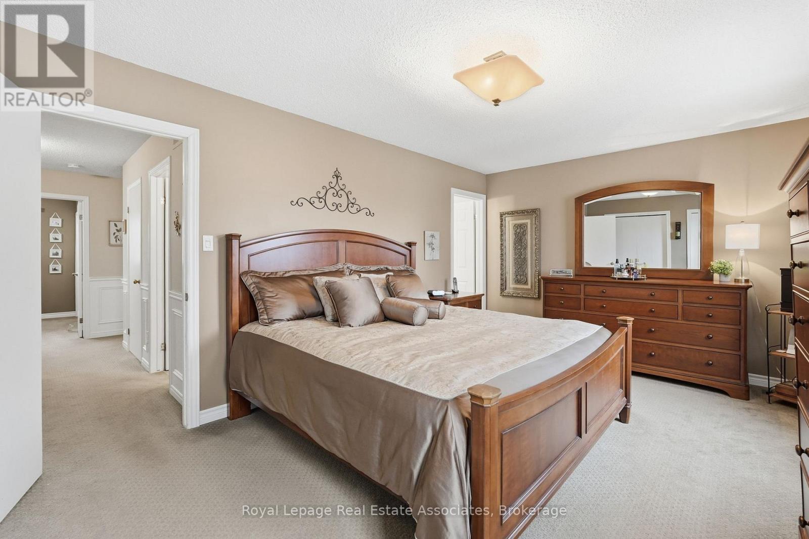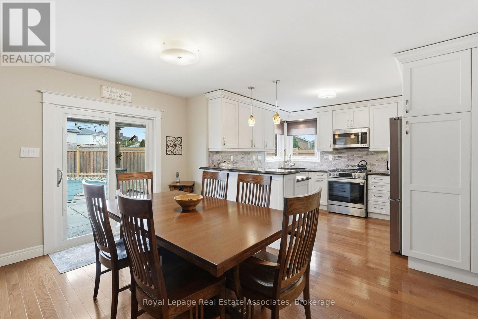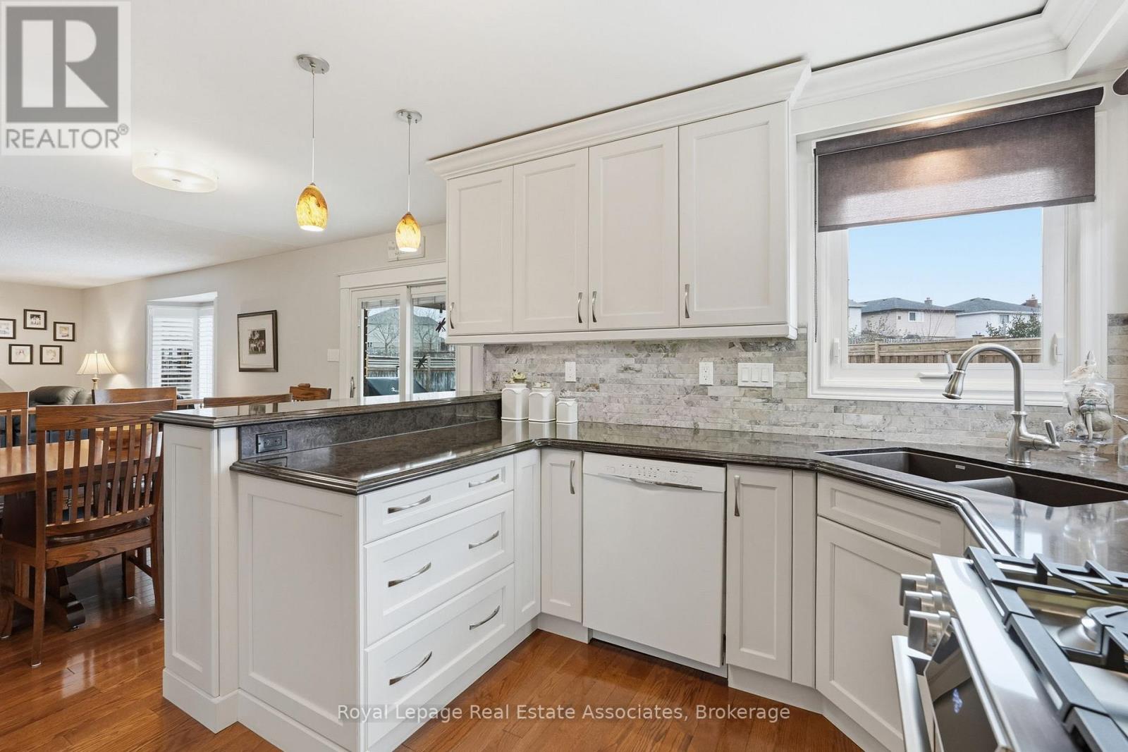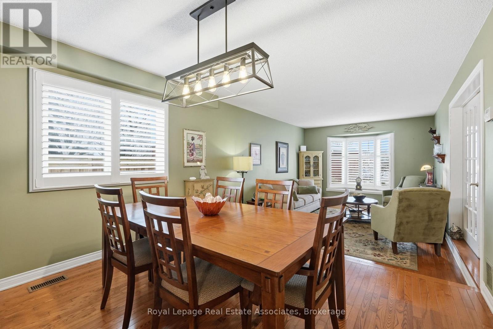 Welcome to 9 Waldorf Court! A classic brick two storey family home tucked away on a quiet court beside Thorner Park. This spacious property offers a double car garage, 4+1 bedrooms, and 2 full plus 2 half bathrooms. The main floor features two comfortable living spaces, hardwood flooring throughout, and a bright eat in kitchen with quartz counters, sleek white cabinetry, and a gas stove. A separate dining room creates the perfect setting for family gatherings. Upstairs, the primary suite includes a beautifully updated ensuite and his and hers closets, along with three additional well sized bedrooms. The finished basement adds even more living space with an entertainment and bar area, an extra bedroom, a crafts room, and plenty of storage. Step outside to enjoy the private backyard with a concrete deck, wood pergola, gas line for the BBQ, and an inground heated pool with a brand new liner, all set on a pie shaped lot with a generous side yard that is perfect for summer lawn games. The backyard also features two sheds, multiple sitting areas, and excellent privacy to enjoy warm summer days. Conveniently located close to shopping and highway access, this is a fantastic opportunity to settle into a well maintained home in a family friendly neighbourhood. (id:4555)