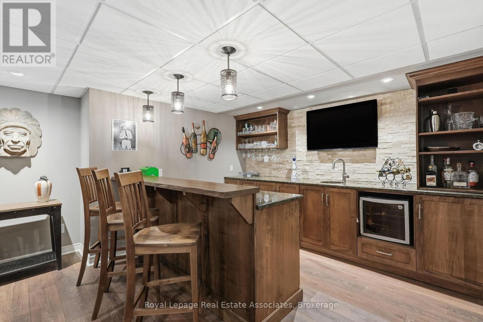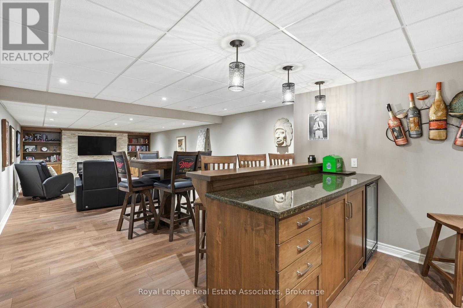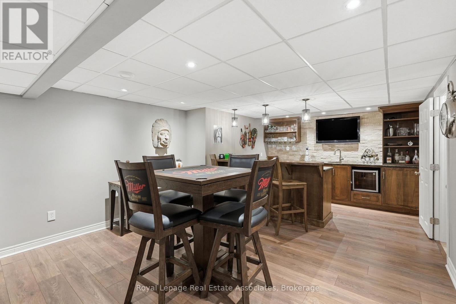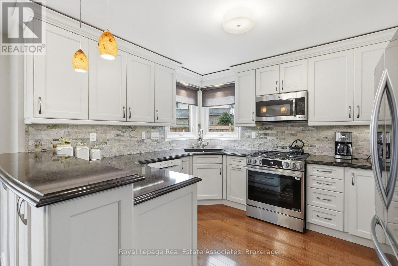 Welcome to 9 Waldorf Court! A classic brick two storey family home tucked away on a quiet court beside Thorner Park. This spacious property offers a double car garage, 4+1 bedrooms, and 2 full plus 2 half bathrooms. The main floor features two comfortable living spaces, hardwood flooring throughout, and a bright eat in kitchen with quartz counters, sleek white cabinetry, and a gas stove. A separate dining room creates the perfect setting for family gatherings. Upstairs, the primary suite includes a beautifully updated ensuite and his and hers closets, along with three additional well sized bedrooms. The finished basement adds even more living space with an entertainment and bar area, an extra bedroom, a crafts room, and plenty of storage. Step outside to enjoy the private backyard with a concrete deck, wood pergola, gas line for the BBQ, and an inground heated pool with a brand new liner, all set on a pie shaped lot with a generous side yard that is perfect for summer lawn games. The backyard also features two sheds, multiple sitting areas, and excellent privacy to enjoy warm summer days. Conveniently located close to shopping and highway access, this is a fantastic opportunity to settle into a well maintained home in a family friendly neighbourhood. (id:4555)