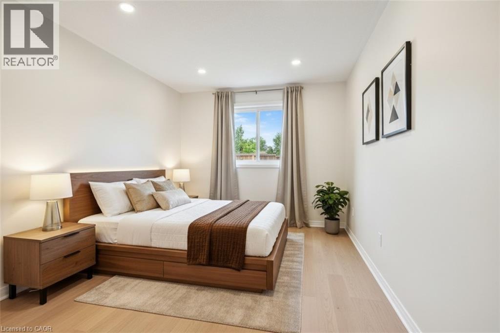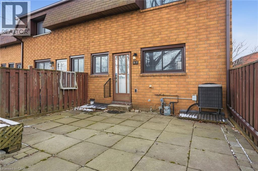 Welcome to this charming end-unit townhome located in the sought-after West Mountain community. Nestled in the quiet and well-maintained Garthstone Estates complex, this home offers approximately 1,300 sq ft of finished living space with 3 bedrooms and 2 bathrooms — an excellent opportunity for first-time buyers or those looking to downsize. Freshly painted and ready for immediate occupancy, the home features a bright, open layout with several tasteful updates. The eat-in kitchen and bathroom showcase granite countertops, while newer windows and updated ceramic and laminate flooring add a modern touch throughout. The spacious living room is perfect for relaxing or entertaining and is highlighted by a beautiful gas fireplace. With east and west exposure, the home enjoys plenty of natural light throughout the day. Step outside to your private, fully fenced backyard surrounded by mature trees, complete with a large patio ideal for outdoor dining and gatherings. The yard is conveniently accessed through the kitchen. Additional features include two parking spaces — one in the attached garage and another in the private driveway right outside the front entrance. The basement offers extra living space and future potential. Located just steps from public transit with easy access to the #35 HSR bus to Mohawk College, this home is also ideal for commuters with quick connections to the Lincoln Alexander Parkway, Red Hill Valley Parkway, QEW and Highway 403. Close to schools, parks, shopping, and everyday amenities, this well-managed complex also includes basic cable in the condo fees. (id:4555)