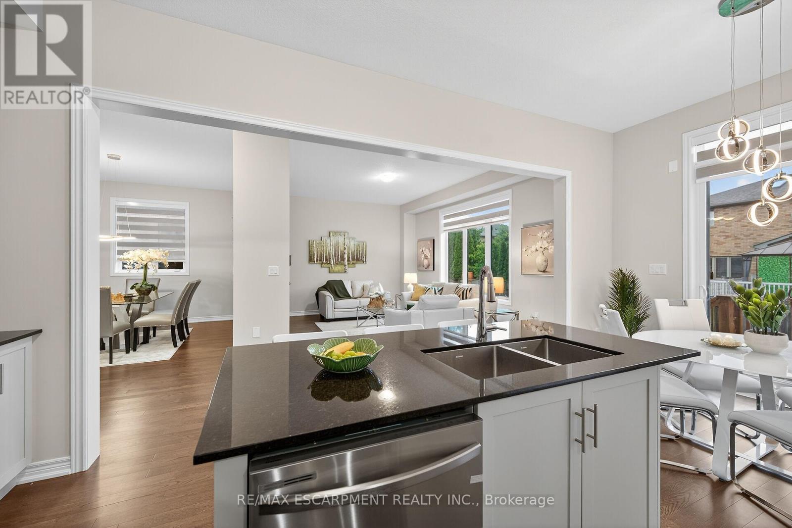 Welcome to 67 Starfire Crescent - a stunning detached home offering approximately 3,017 sq ft of beautifully designed living space in a quiet, family-friendly Stoney Creek neighbourhood with escarpment views. The bright main floor features 10 ft ceilings, hardwood flooring, a private den with French glass doors, and a spacious family room with a two-sided fireplace. The modern kitchen offers extended cabinetry, quality finishes, and a generous breakfast area ideal for everyday living and entertaining. Upstairs, enjoy the convenience of second-floor laundry and well-appointed bedrooms, including semi-ensuite access with a functional Jack & Jill layout. The primary suite features a private ensuite and a large walk-in closet. Hardwood stairs and a double-car garage complete this impressive home. Conveniently located near the QEW, Fifty Point Conservation Area, parks, schools, shopping, and dining. Photos from prior staging for illustrative purposes. (id:4555)