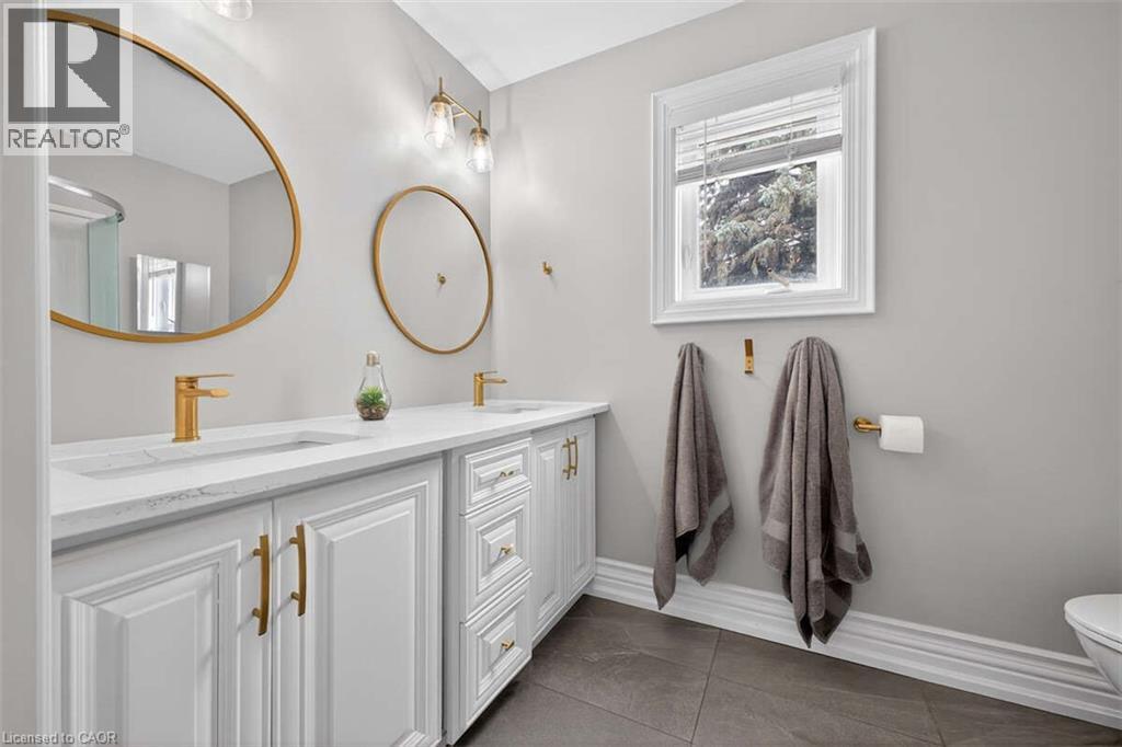 *** For more information, please click Brochure button. *** You’ll fall in love with this beautifully renovated, serene family forever home, in the charming community of Freelton. Ideally located just 10 mins from 401/403 and 20 minutes to Burlington, Cambridge, Guelph, Milton. Thoughtfully renovated - yet never stripped of its soul - this two-storey home blends beautiful country charm with timeless modern updates. With over 3,800 sq ft of carpet-free living space, this home features a bright, open-concept main floor that seamlessly connects the kitchen, living, and dining areas, perfect for everyday living and entertaining. Originally rebuilt from the studs in 2010 and extensively upgraded in 2022 with over $200K in renos. The updated kitchen features professionally refinished cabinetry with elegant gold hardware and quartz countertops, which continue throughout all three bathrooms for a cohesive, upscale finish. Rich hardwood flooring adds warmth and timeless appeal throughout. Main level includes a 4th bedroom and convenient laundry, as well as a flexible bonus room with walkout to the back deck, currently used as a home office and easily convertible to suit your needs. Upstairs offers three spacious bedrooms and a five-piece luxury bathroom, as well as a primary 4 pc ensuite with walk-in closet. As a bonus, the convenient side entrance provides access to both the main floor and fully finished basement, offering seamless in-law suite potential. The basement features a rough-in for a bathroom, a spacious recreation area, gas fireplace, and a large gym that can be easily converted into an additional bedroom. The backyard features a private outdoor oasis with a pool, hot tub, and two large decks, and new fencing and landscaping. Includes 2 large powered storage sheds. 200AMP service. New in 2022:Kitchen,Quartz Counters & appliances. Wide plank Hardwood floors on 1st & 2nd levels. Fence and Landscaping. Above-grnd Pool/Deck/Hot Tub. Roof & Furnace 2010 Septic 2020 (id:4555)