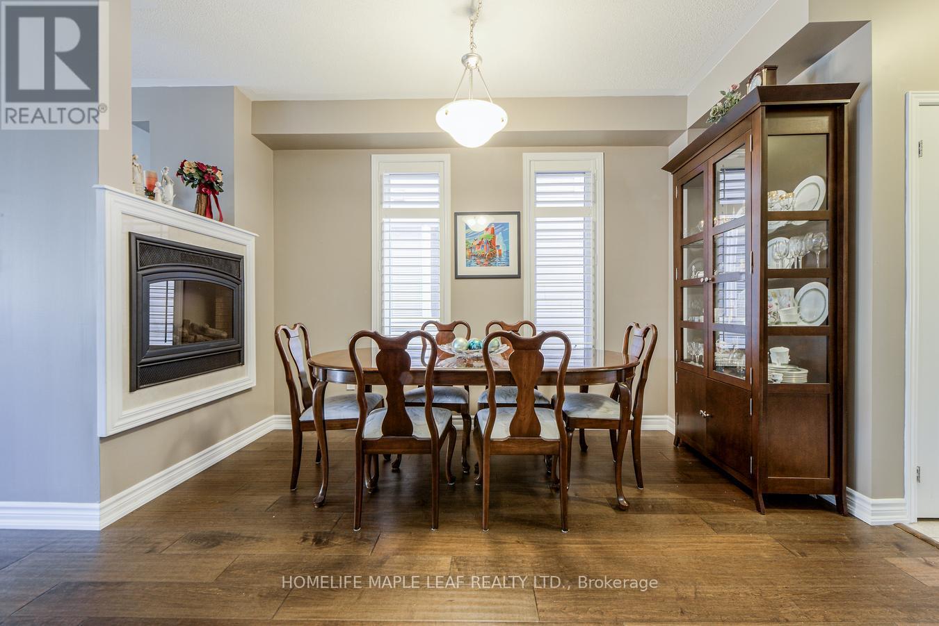 "FREEHOLD, CORNER TOWNHOME 2049 SQFT ABOVE GROUND" Welcome to your dream home in Waterdown! Perfectly placed in one of Waterdowns most sought-after neighbourhoods, this meticulously maintained corner end-unit freehold townhome offers approximately 2,900 sq. ft. of total living space including 3 spacious bdrms Plus Den and 4 washrooms With modern updates, thoughtful design, and an abundance of natural light, this home combines comfort and lifestyle in a highly desirable setting. * main floor showcases 9 Feet Ceiling, new hardwood flooring, a separate dining and living area with 2 Way fireplace, and a chef-inspired kitchen with extended cabinetry, a centre island with raised breakfast bar, granite countertops and Eat- in- kitchen area, California Shutters. Step outside to enjoy a two-tier deck a beautiful gazebo with custom built-in bench, all surrounded by lush greenery perfect for hosting! Entrance from Garage to Home. *Upstairs, the versatile loft/office is perfect for working from home, primary suite features 2 closets with one walk in closet, a luxurious En-ensuite complete with a oversized jacuzzi spa tub, glass shower, and granite vanity. 2 more generous size bdrms with windows overlooking the backyard and one full bathroom with soaker Tub. New carpet throughout the stairs and second floor. Recently renovated W/O balcony Newer Windows in the bdrms *The fully finished bsmt offers more living space with new cork flooring , Pot lights, a den, ample storage, a washroom, and a cozy fireplace set against a beautiful stone wall makes this level is as functional as it is stylish.Set in a quiet family-friendly neighbourhood on a cul-de-sac, this home is steps from one of the best schools, day Care, the YMCA, Memorial Park, and everyday amenities, with easy access to scenic walking trails, golf courses, and the Greenbelt countryside. Commuters will love being just 10 minutes to Aldershot GO Station and Highways 403, 407, and the QEW. Best rated restaurants in the area (id:4555)