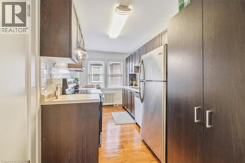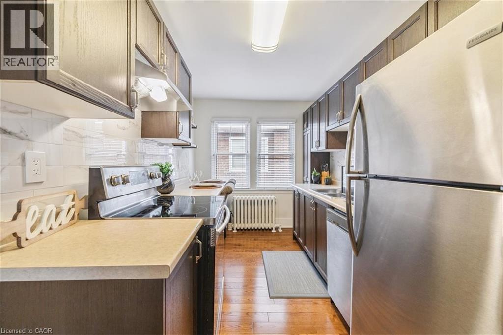 This spacious one-bedroom condominium offers approximately 892 square feet of comfortable living in Hamilton’s sought-after Durand neighbourhood. Renovated in 2019 with new hardwood flooring, windows, kitchen and bathroom! New backsplash and light fixtures in the last 3 years. This bright and functional layout includes a generous living and dining area, a dedicated office space or could be used as a second bedroom, a full eat-in kitchen, in-suite laundry, and a well-sized bedroom featuring two closets. Situated in a solid brick building, the unit provides a quiet and established setting while being just steps from downtown, hospitals, parks, public transit, and everyday amenities. An excellent opportunity for first-time buyers, downsizers, or investors looking for a centrally located, walkable lifestyle. Book your showing today! (id:4555)