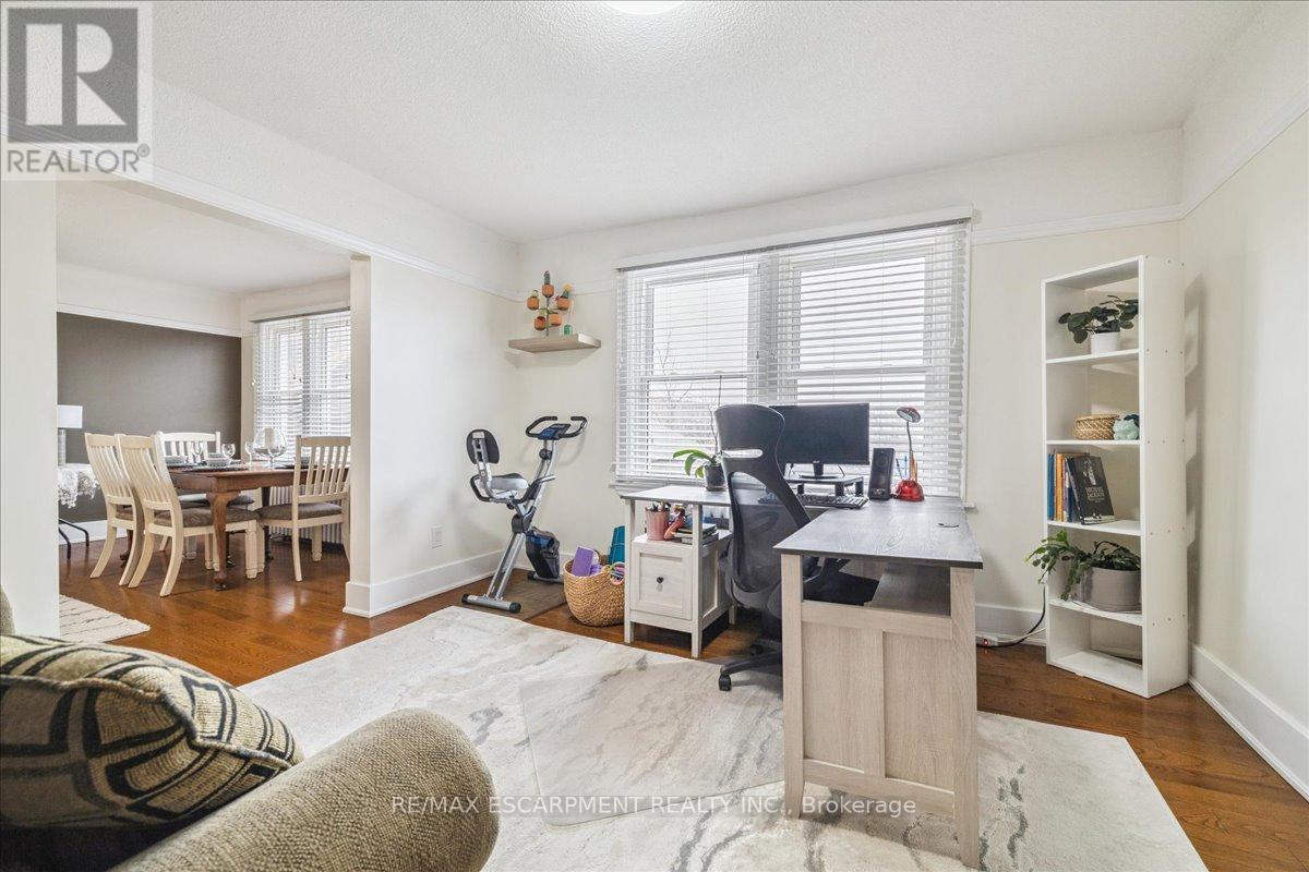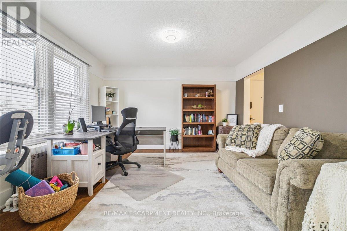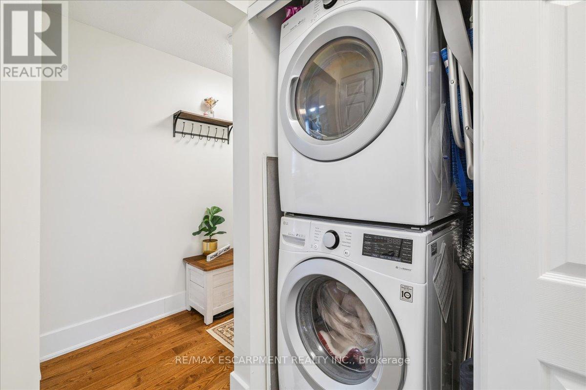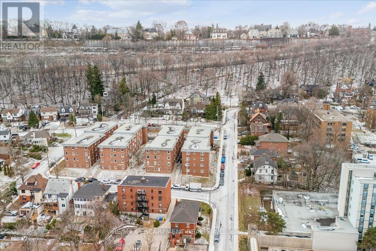 This spacious one-bedroom condominium offers approximately 892 square feet of comfortable living in Hamilton's sought-after Durand neighbourhood. Renovated in 2019 with new hardwood flooring, windows, kitchen and bathroom! New backsplash and light fixtures in the last 3 years. This bright and functional layout indudes a generous living and dining area, a dedicated den, currently used as an office space but could be used as a second bedroom, a full eat-in kitchen, in-suite laundry, and a well-sized bedroom featuring two closets. Situated in a solid brick building, the unit provides a quiet and established setting while being just steps from downtown, hospitals, parks, public transit, and everyday amenities. An excellent opportunity for first-time buyers, downsizers, or investors looking for a centrally located, walkable lifestyle. (id:4555)