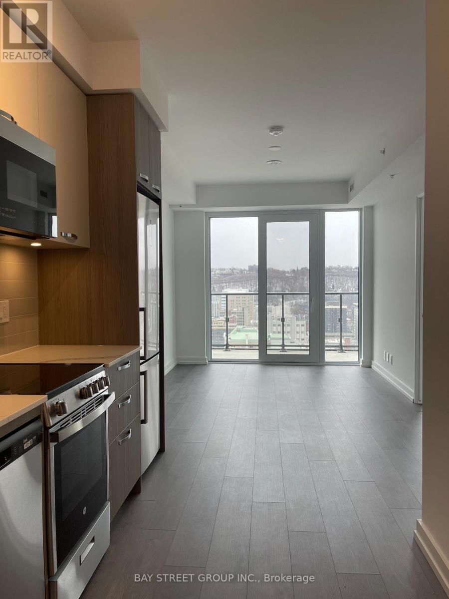 Welcome to the brand new high end 75 James St condos located in the center of Hamilton! This condo suite facing south with gorgeous view of the Hamilton city and mountain. With stainless steel appliances in the kitchen, ensuite laundry, an open balcony looking onto Hamilton's dramatic cityscape that leads up to the mountain. The building is a two minute walk to the Hamilton GO center and the future King and James LRT station, a five minute walk from the downtown campus of McMaster University,a three minute walk to Gore Park, and eleven minutes by bus to Mohawk College and hospitals. Surrounding area with a lot of shopping markets, resturants, and other service shops. Amenities include a concierge, co-work rooms, a theatre, party and gaming rooms, gym, yoga and meditation rooms, and roof top BBQ area.It is your dreaming life style building, you don't want to miss it! (id:4555)