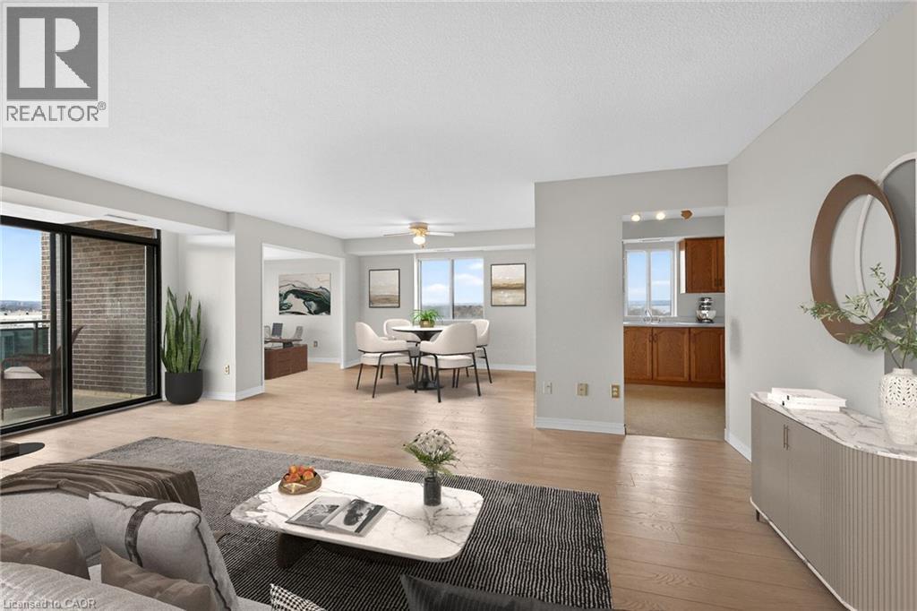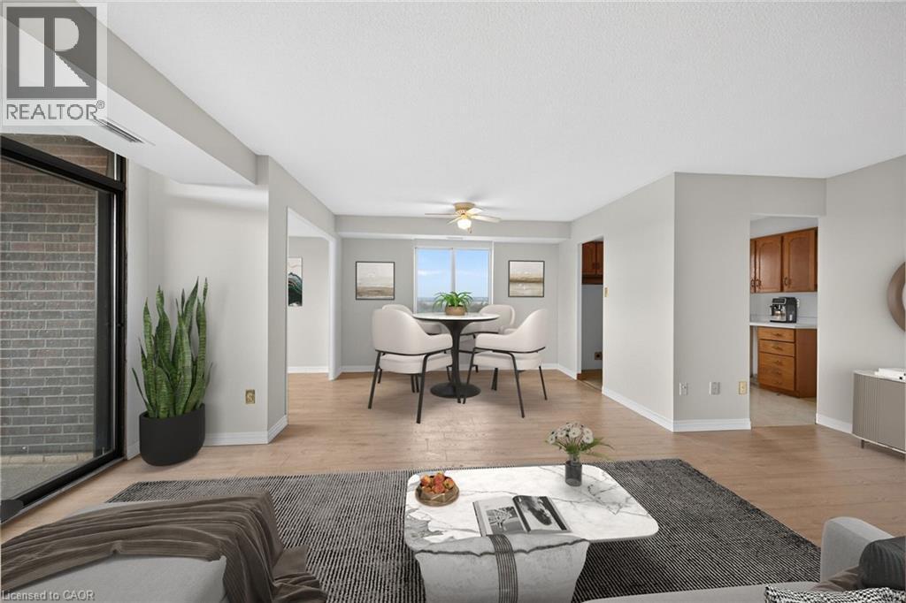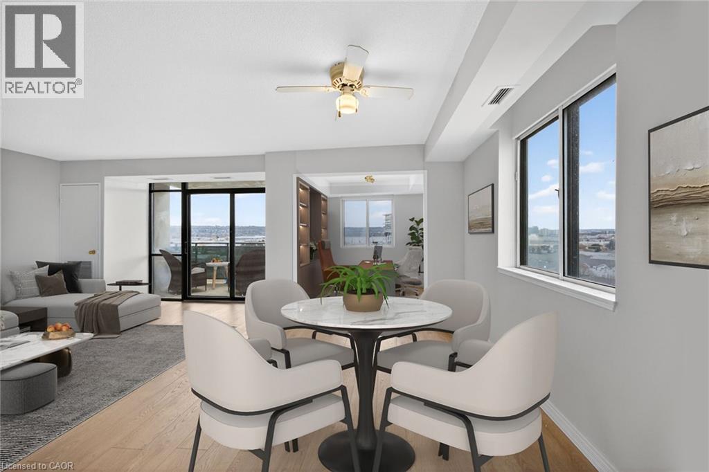 Welcome to the Bayliner, a HIGHLY desirable building within steps to the Lake, Beach and Waterfront Trail. This large 890sqft 1 Bedroom plus Den CORNER SUITE is South-West facing w/lots of natural sunlight, large balcony, panoramic views of the Escarpment, Burlington Skyline and gorgeous SUNSETS. Freshly Painted in neutral colors from Top to Bottom and newer upgraded laminate flooring. Condo fee includes Hydro, Water, Cable, Internet, Exterior Maintenance and Visitors Parking. Building Amenities include Car Wash, Outdoor Pool, Sauna, Exercise Rm, Games Rm, Party Rm, Community BBQ, Library and Workshop. Features In-suite laundry, Underground parking and Locker! Very close to all Amenities, COSTCO, Parks and Conservation Area. ** Buyer will receive Certificate for The Brick to receive Contractor Pricing on Appliances , Electronics and Home furnishings. (id:4555)
