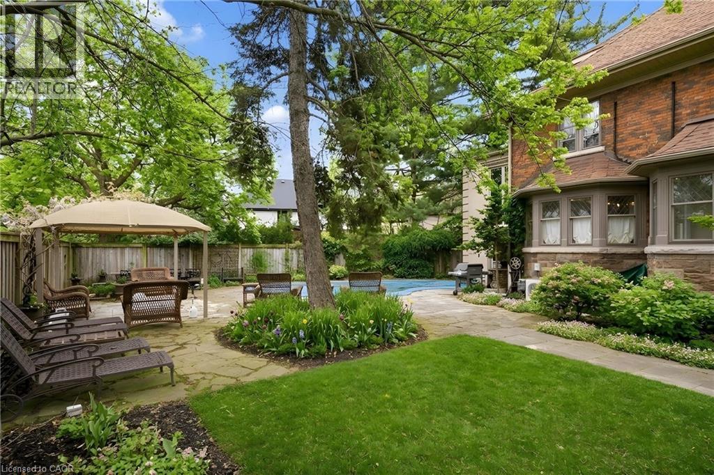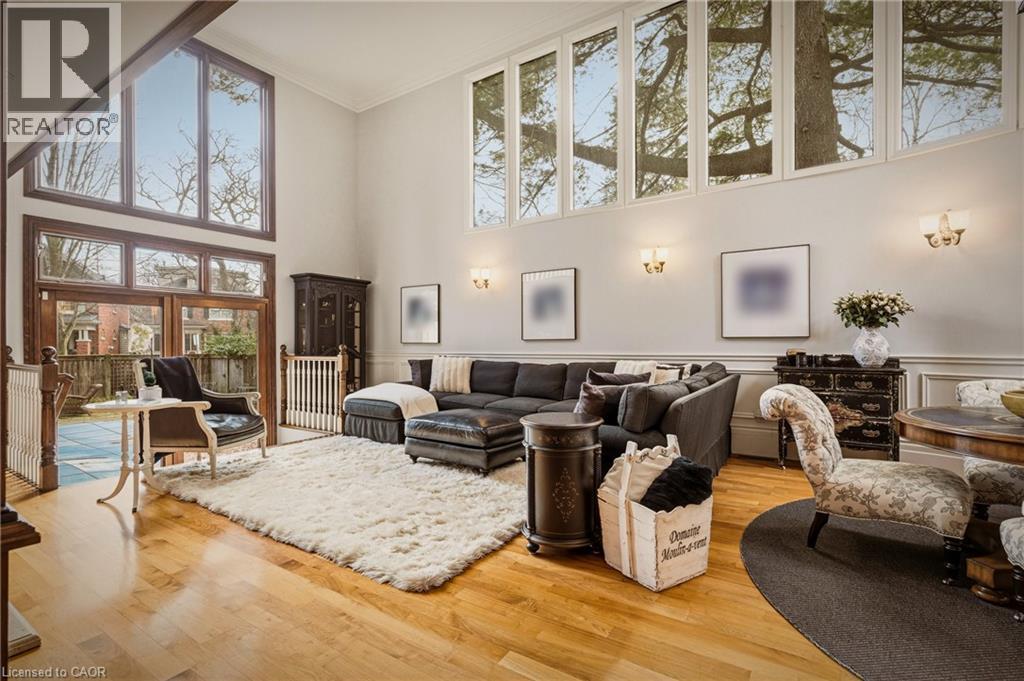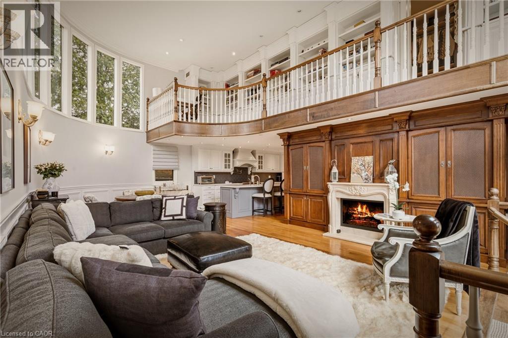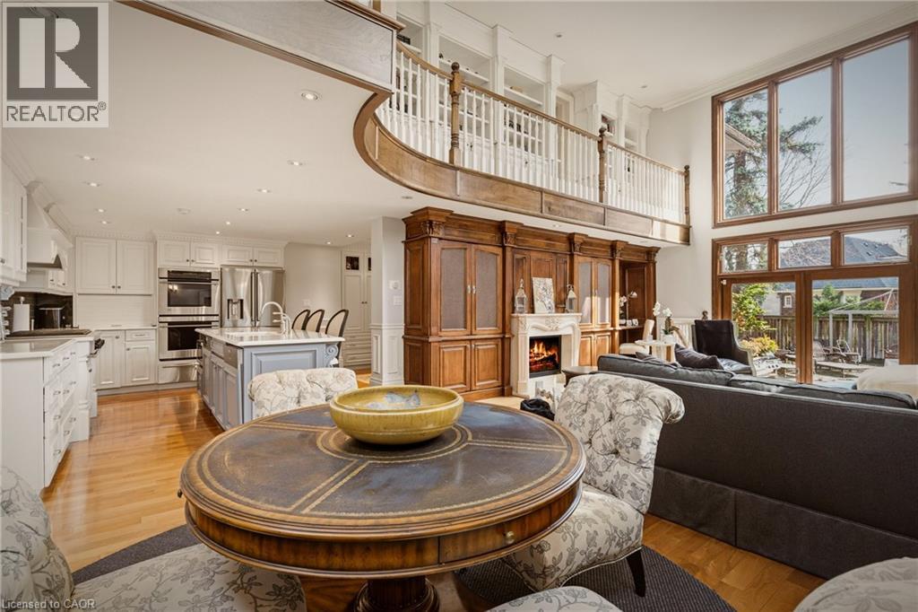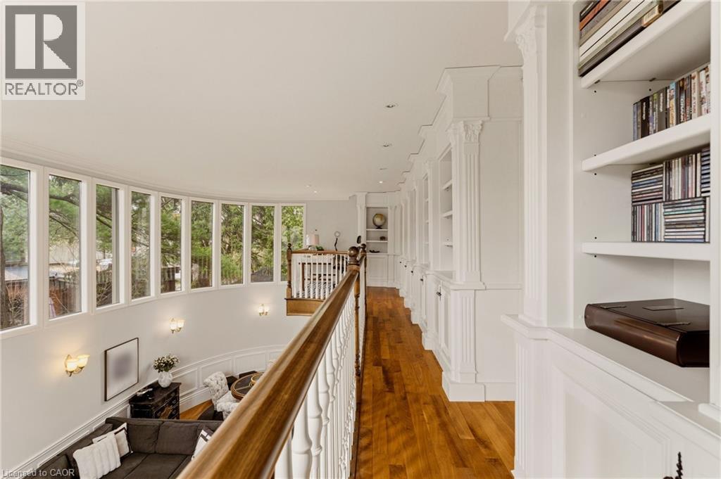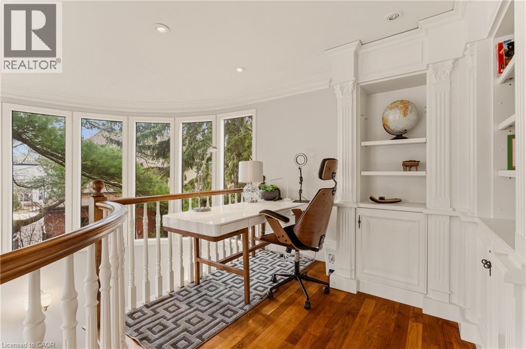 This is the kind of home people wait years for—quietly set along one of Hamilton’s most distinguished streets, on an oversized, double-width lot and framed by an exceptional natural backdrop. With the Royal Botanical Gardens quite literally at your doorstep, you’re surrounded by lush forest, winding trails, and the beauty of Cootes Paradise just moments away. The home itself strikes a rare balance between character and contemporary comfort. Original details have been preserved and elevated, while thoughtful renovations have introduced a striking layout designed for modern living. At the centre of it all is a beautifully appointed kitchen with granite finishes, effortlessly connecting to an expansive family room where the dramatic ceiling height and curved wall creates a true sense of space and light. The main living areas feel both refined and welcoming, with detailed millwork, rich hardwood floors, and a statement fireplace anchoring the space. One of the home’s most distinctive touches is the elevated library—an architectural feature that adds both character and function, overlooking the family room below. Upstairs, the bedrooms are generously proportioned and filled with natural light. The primary suite offers a walk-through walk-in closet that opens to a spa-like ensuite, making everyday living feel effortless. The lower level has been fully finished with versatility in mind, offering an entertainment lounge, additional bedroom, full bathroom with in-floor heating, and a separate exercise area—ideal for growing families or hosting guests. Parking is never a concern here, with a wide driveway accommodating multiple vehicles in addition to a double garage. All of this is set within the vibrant Westdale community, where excellent schools, McMaster University, and a charming village filled with cafés, dining spots, and everyday amenities are all within walking distance. It’s a lifestyle location that’s as connected as it is serene. Some photos virtually enhanced (id:4555)