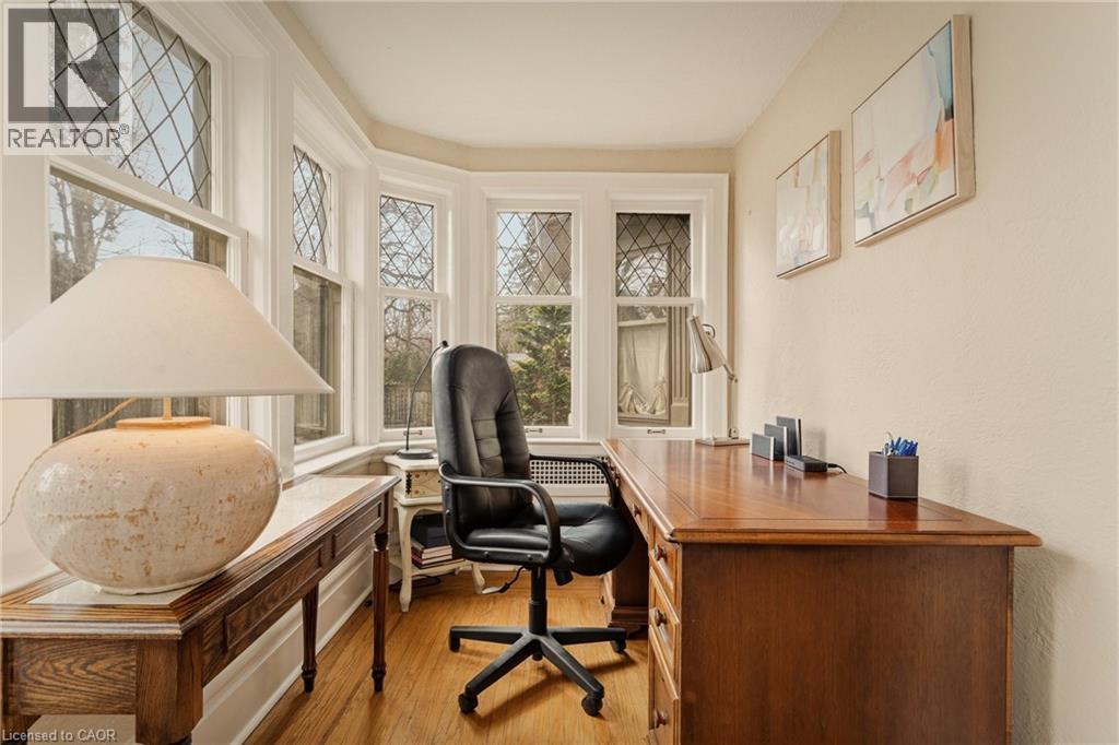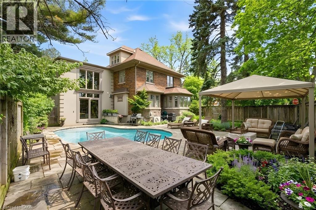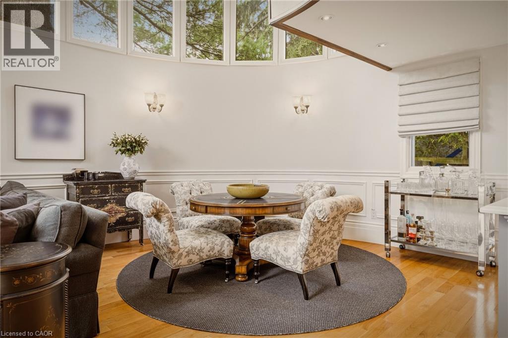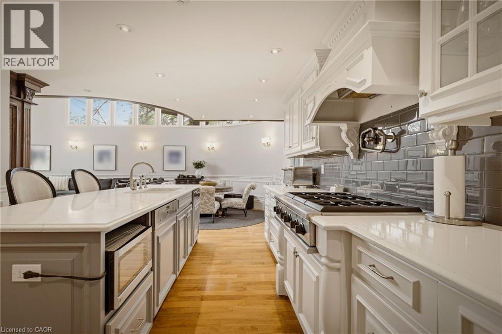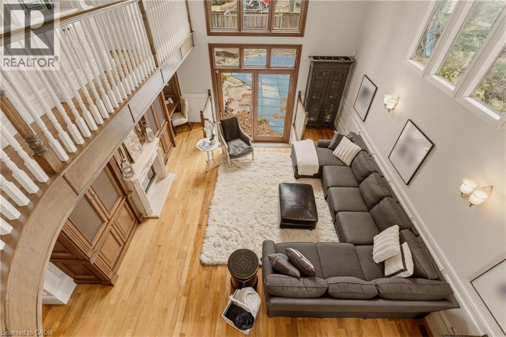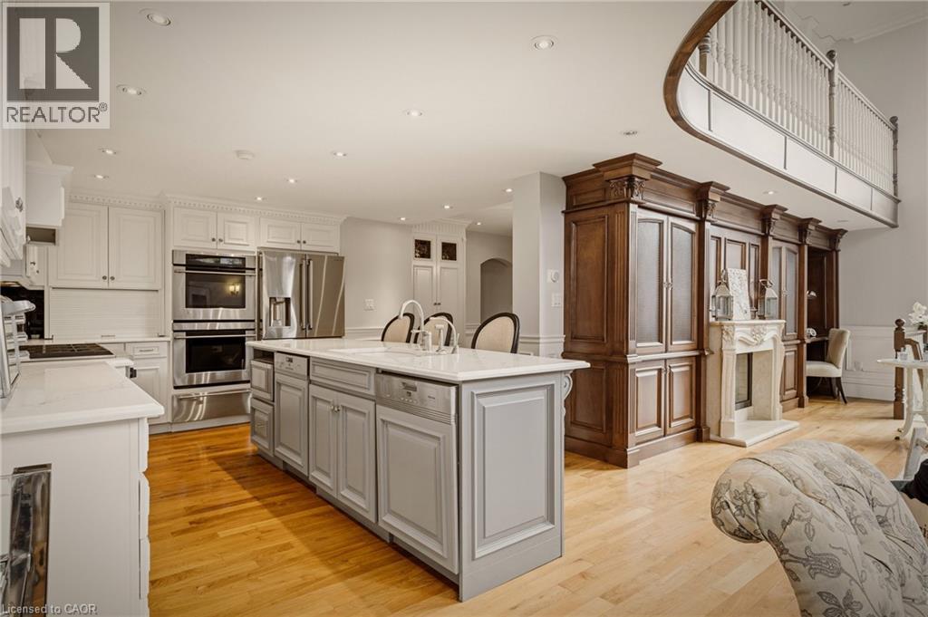 This is the kind of home people wait years for—quietly set along one of Hamilton’s most distinguished streets, on an oversized, double-width lot and framed by an exceptional natural backdrop. With the Royal Botanical Gardens quite literally at your doorstep, you’re surrounded by lush forest, winding trails, and the beauty of Cootes Paradise just moments away. The home itself strikes a rare balance between character and contemporary comfort. Original details have been preserved and elevated, while thoughtful renovations have introduced a striking layout designed for modern living. At the centre of it all is a beautifully appointed kitchen with granite finishes, effortlessly connecting to an expansive family room where the dramatic ceiling height and curved wall creates a true sense of space and light. The main living areas feel both refined and welcoming, with detailed millwork, rich hardwood floors, and a statement fireplace anchoring the space. One of the home’s most distinctive touches is the elevated library—an architectural feature that adds both character and function, overlooking the family room below. Upstairs, the bedrooms are generously proportioned and filled with natural light. The primary suite offers a walk-through walk-in closet that opens to a spa-like ensuite, making everyday living feel effortless. The lower level has been fully finished with versatility in mind, offering an entertainment lounge, additional bedroom, full bathroom with in-floor heating, and a separate exercise area—ideal for growing families or hosting guests. Parking is never a concern here, with a wide driveway accommodating multiple vehicles in addition to a double garage. All of this is set within the vibrant Westdale community, where excellent schools, McMaster University, and a charming village filled with cafés, dining spots, and everyday amenities are all within walking distance. It’s a lifestyle location that’s as connected as it is serene. Some photos virtually enhanced (id:4555)