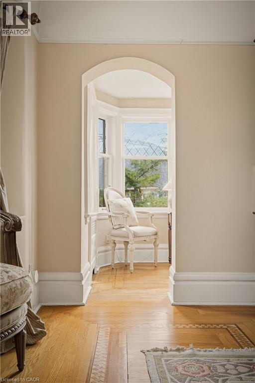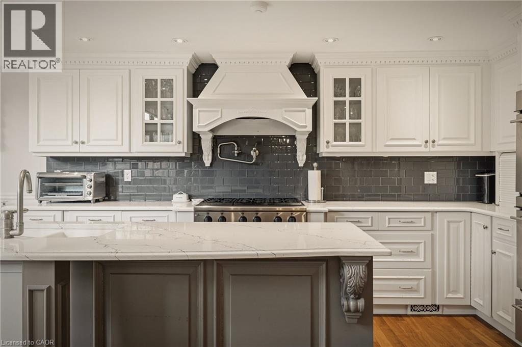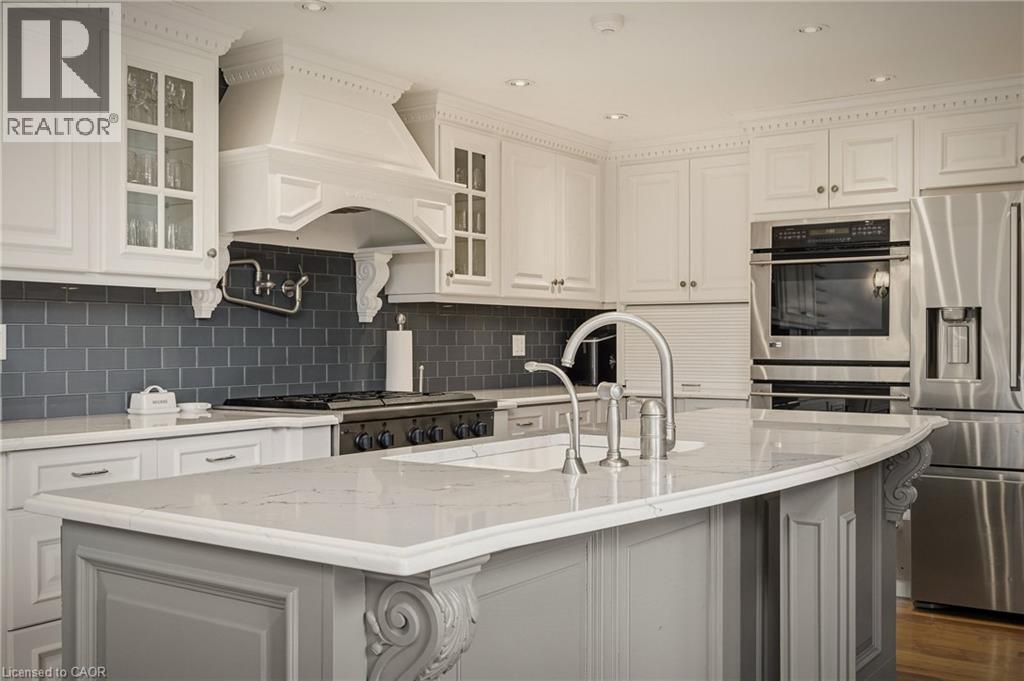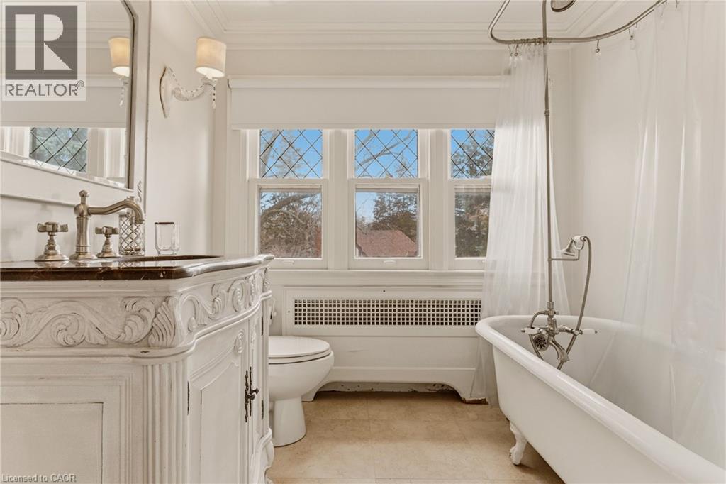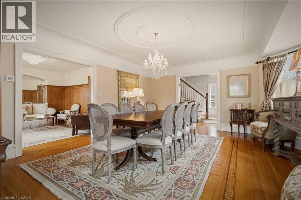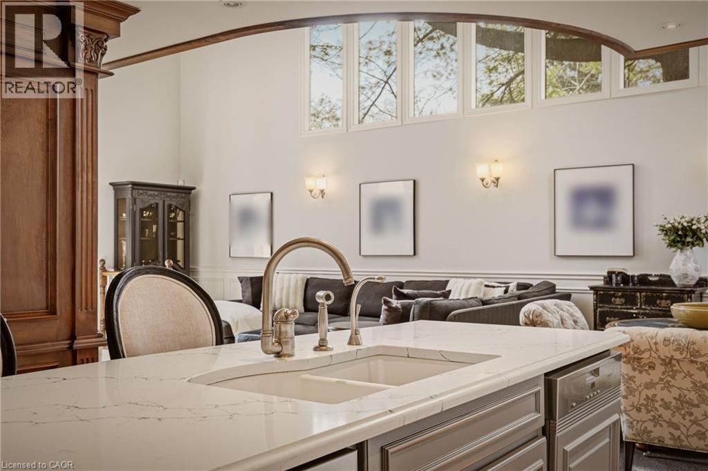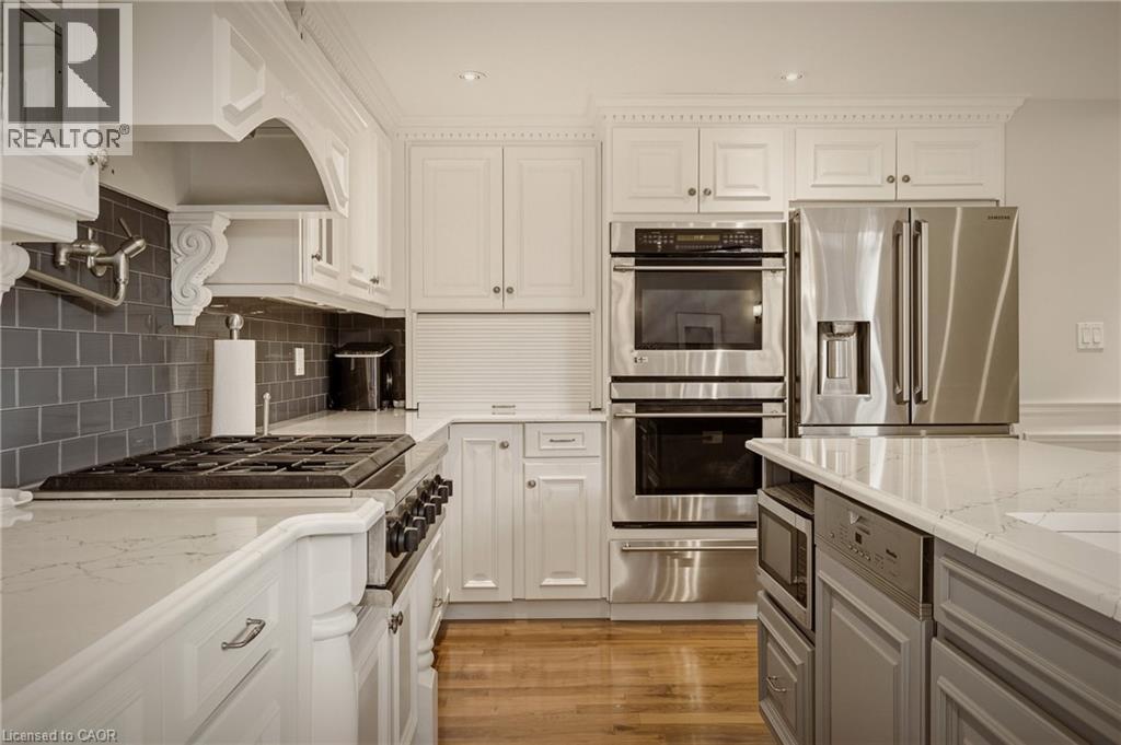 This is the kind of home people wait years for—quietly set along one of Hamilton’s most distinguished streets, on an oversized, double-width lot and framed by an exceptional natural backdrop. With the Royal Botanical Gardens quite literally at your doorstep, you’re surrounded by lush forest, winding trails, and the beauty of Cootes Paradise just moments away. The home itself strikes a rare balance between character and contemporary comfort. Original details have been preserved and elevated, while thoughtful renovations have introduced a striking layout designed for modern living. At the centre of it all is a beautifully appointed kitchen with granite finishes, effortlessly connecting to an expansive family room where the dramatic ceiling height and curved wall creates a true sense of space and light. The main living areas feel both refined and welcoming, with detailed millwork, rich hardwood floors, and a statement fireplace anchoring the space. One of the home’s most distinctive touches is the elevated library—an architectural feature that adds both character and function, overlooking the family room below. Upstairs, the bedrooms are generously proportioned and filled with natural light. The primary suite offers a walk-through walk-in closet that opens to a spa-like ensuite, making everyday living feel effortless. The lower level has been fully finished with versatility in mind, offering an entertainment lounge, additional bedroom, full bathroom with in-floor heating, and a separate exercise area—ideal for growing families or hosting guests. Parking is never a concern here, with a wide driveway accommodating multiple vehicles in addition to a double garage. All of this is set within the vibrant Westdale community, where excellent schools, McMaster University, and a charming village filled with cafés, dining spots, and everyday amenities are all within walking distance. It’s a lifestyle location that’s as connected as it is serene. Some photos virtually enhanced (id:4555)
