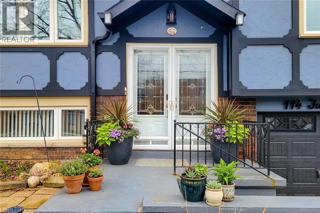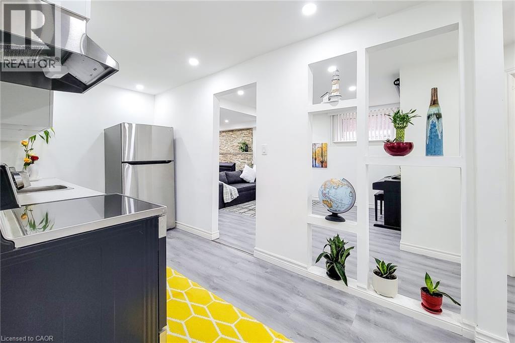 Sharp, well-maintained raised ranch in a highly sought-after West Mountain neighbourhood, situated on a quiet street. This home features a full in-law suite on the lower level with a separate rear entrance—ideal for extended family or potential rental income. A welcoming front entry opens into a bright living and dining area with hardwood floors and an abundance of natural light. The fully finished lower level provides additional comfortable living space. Conveniently located with quick access to the Linc and Hwy 403, and just minutes from Ancaster Meadowlands shopping, Costco, and Mohawk College. Hydro connection is available in the backyard shed. Recent renovations and upgrades include: roof (2021); basement renovation with new kitchen, bathroom, and fridge (2022); new basement fireplace, stove, washer, dryer, and garage door with smart opener (2024); whole-home gutter, fascia, soffit, and insulation upgrades (2025); and a new furnace, patio door, and dishwasher (2026). Water heater is owned. Move in and enjoy this beautiful, turnkey home! (id:4555)