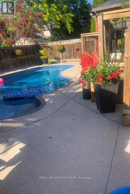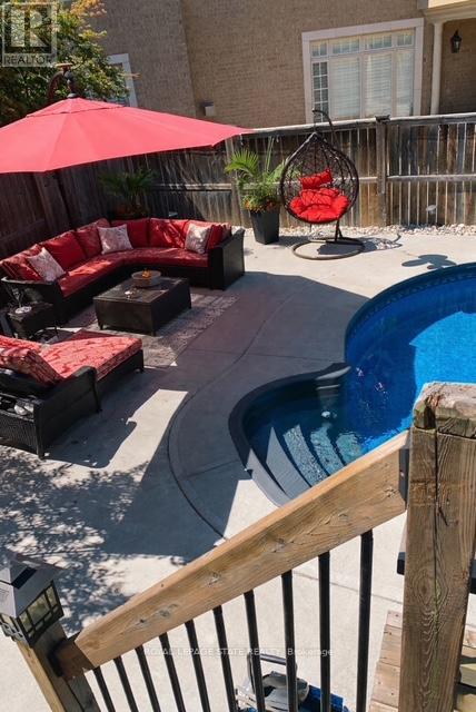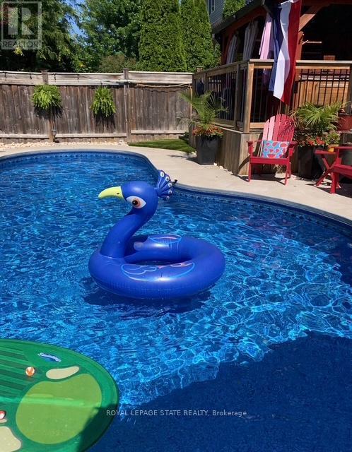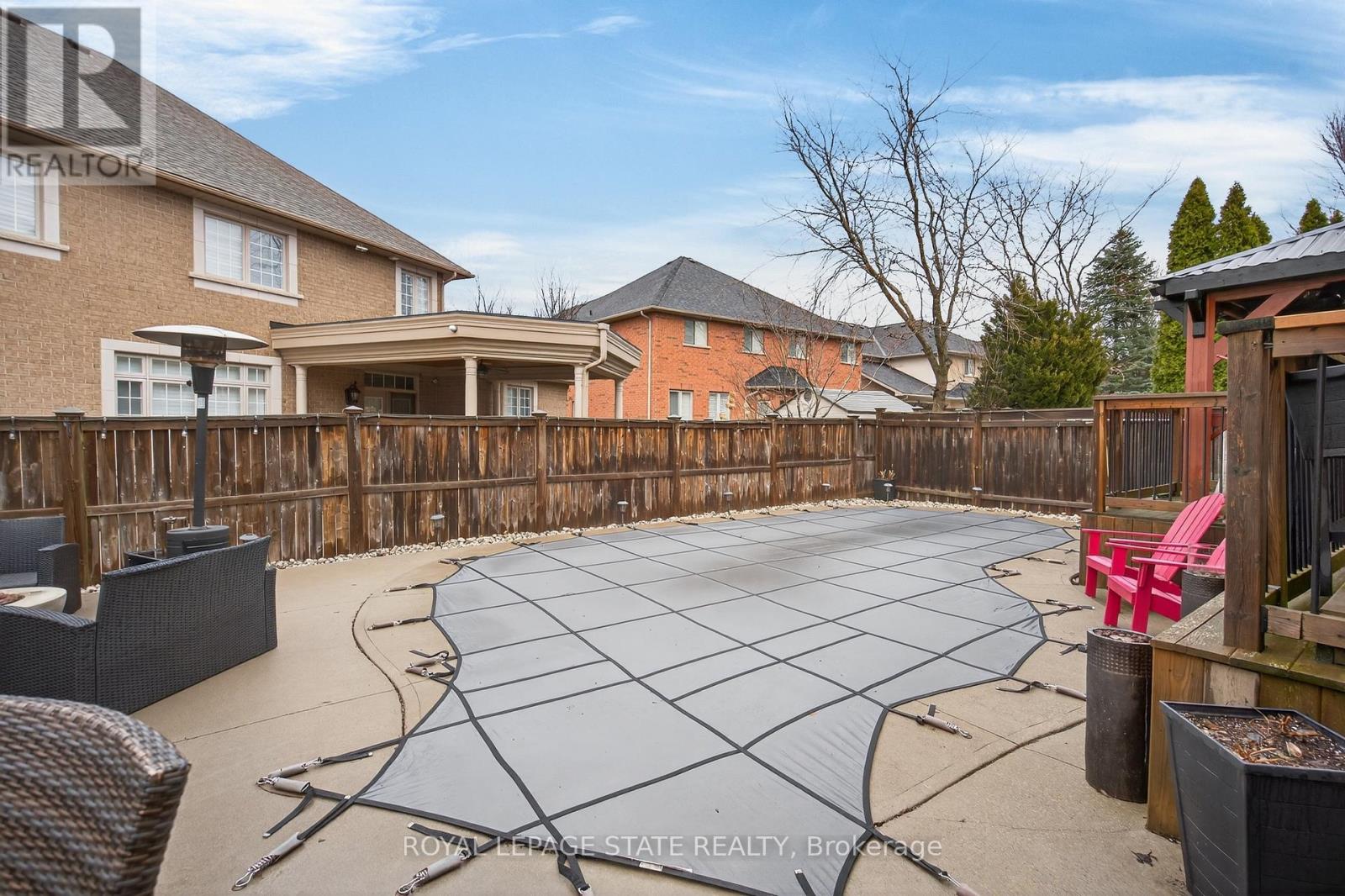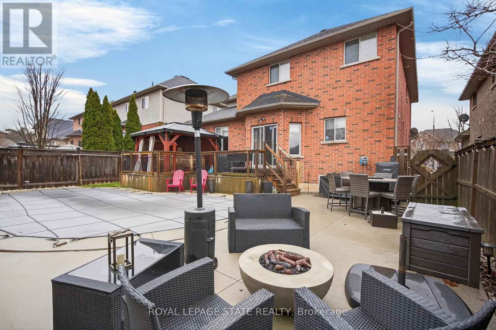 Tucked away on a quiet street in Ancaster's sought-after 'Miller's Pond', this impressive 4 bdrm, 2.5 bath home offers the perfect blend of space, functionality, & lifestyle. The home welcomes you w/ an attractive exterior facade feat brick, stone, & stucco, complemented by a covered front porch & surfaced parking for 4 cars. A spacious 2 car grg w/ inside entry adds everyday convenience. Step inside to a grand foyer w/ soaring ceilings that immediately sets the tone. The main lvl offers a thoughtful layout designed for both daily living & entertaining. A formal liv rm w/ an electric FP provides a warm, inviting space, while the formal din rm is ideal for hosting gatherings. The spacious kitch is beautifully appointed w/ S/S app, granite, undermount lighting, & a convenient dinette w/ sliding doors to the rear yard. The kitch flows seamlessly into a lrg fam rm w/ vaulted ceilings, creating an open & connected living space. Additional main lvl highlights incl a private office, a powder rm, & laundry facilities. Upstairs, the primary retreat feat a walk-in closet & a well-appointed 4-pc ensuite feat granite countertops, a stand-up shower, & an oversized corner soaker tub. 3 additional bdrms are all generously sized & share a 4-pc bath w/ granite. The home feat engineered hrdwd flrs throughout, adding warmth, elegance, & a cohesive finish to the living spaces. The unspoiled bsmt presents a blank canvas, offering a variety of possibilities. The rear yard is truly an entertainer's dream, feat an in-ground saltwater heated pool, a hot tub w/ gazebo cover, multiple seating areas, & low-maintenance artificial turf. Located in a quiet, family-friendly pocket of Ancaster, this home offers proximity to top-rated schools, scenic conservation areas, walking trails, & golf courses. Enjoy easy access to shopping, dining, & amenities, along w/ convenient highway access. Miller's Pond is known for its peaceful setting while still being close to everything Ancaster has to offer. (id:4555)