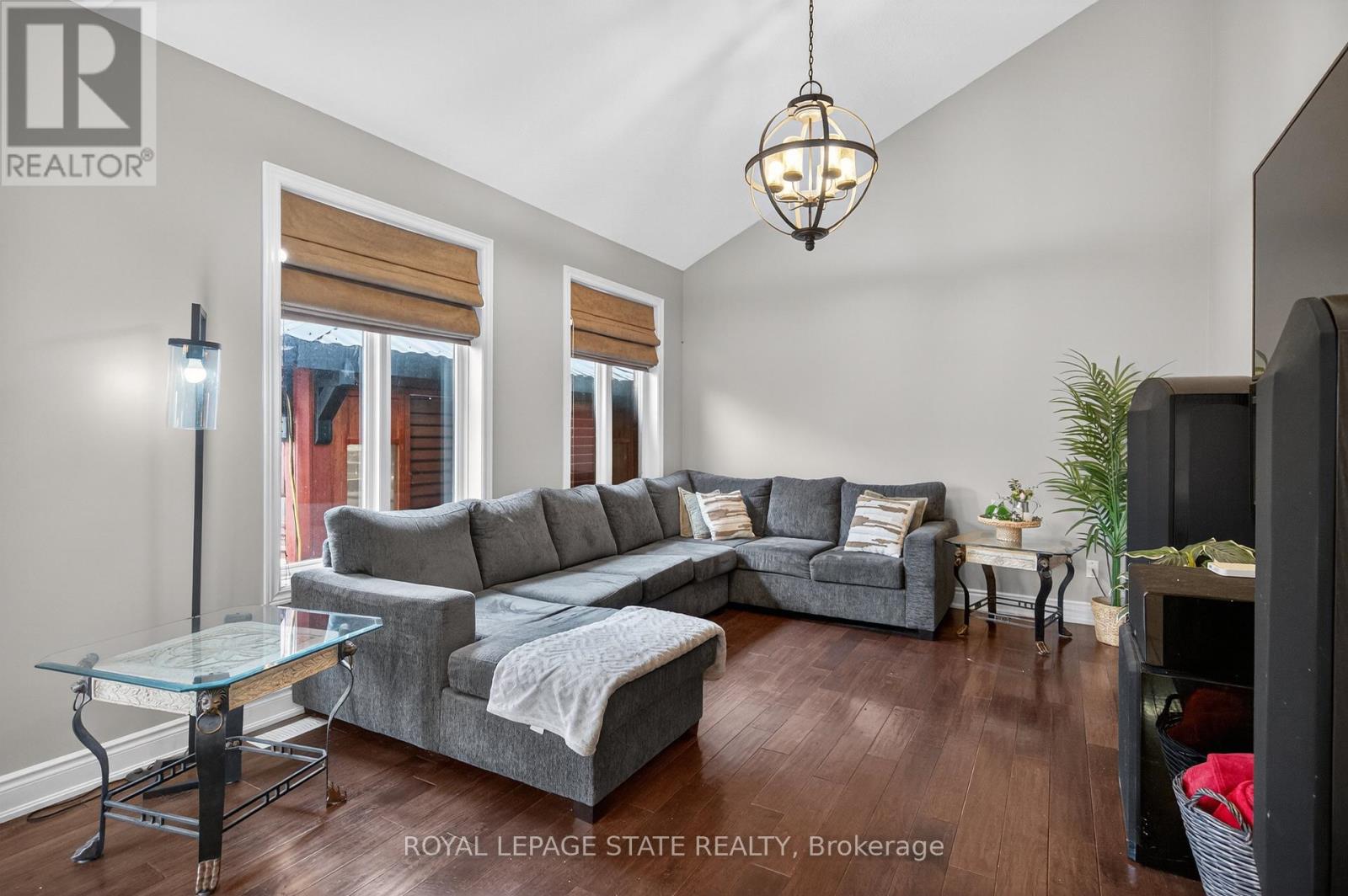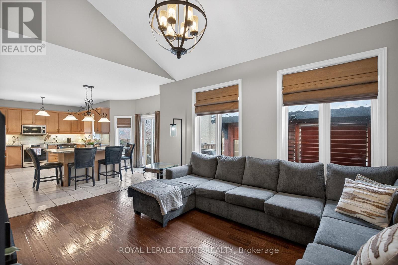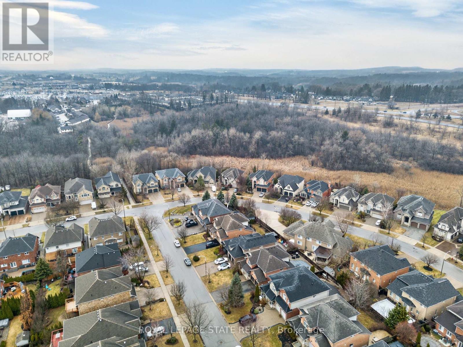 Tucked away on a quiet street in Ancaster's sought-after 'Miller's Pond', this impressive 4 bdrm, 2.5 bath home offers the perfect blend of space, functionality, & lifestyle. The home welcomes you w/ an attractive exterior facade feat brick, stone, & stucco, complemented by a covered front porch & surfaced parking for 4 cars. A spacious 2 car grg w/ inside entry adds everyday convenience. Step inside to a grand foyer w/ soaring ceilings that immediately sets the tone. The main lvl offers a thoughtful layout designed for both daily living & entertaining. A formal liv rm w/ an electric FP provides a warm, inviting space, while the formal din rm is ideal for hosting gatherings. The spacious kitch is beautifully appointed w/ S/S app, granite, undermount lighting, & a convenient dinette w/ sliding doors to the rear yard. The kitch flows seamlessly into a lrg fam rm w/ vaulted ceilings, creating an open & connected living space. Additional main lvl highlights incl a private office, a powder rm, & laundry facilities. Upstairs, the primary retreat feat a walk-in closet & a well-appointed 4-pc ensuite feat granite countertops, a stand-up shower, & an oversized corner soaker tub. 3 additional bdrms are all generously sized & share a 4-pc bath w/ granite. The home feat engineered hrdwd flrs throughout, adding warmth, elegance, & a cohesive finish to the living spaces. The unspoiled bsmt presents a blank canvas, offering a variety of possibilities. The rear yard is truly an entertainer's dream, feat an in-ground saltwater heated pool, a hot tub w/ gazebo cover, multiple seating areas, & low-maintenance artificial turf. Located in a quiet, family-friendly pocket of Ancaster, this home offers proximity to top-rated schools, scenic conservation areas, walking trails, & golf courses. Enjoy easy access to shopping, dining, & amenities, along w/ convenient highway access. Miller's Pond is known for its peaceful setting while still being close to everything Ancaster has to offer. (id:4555)