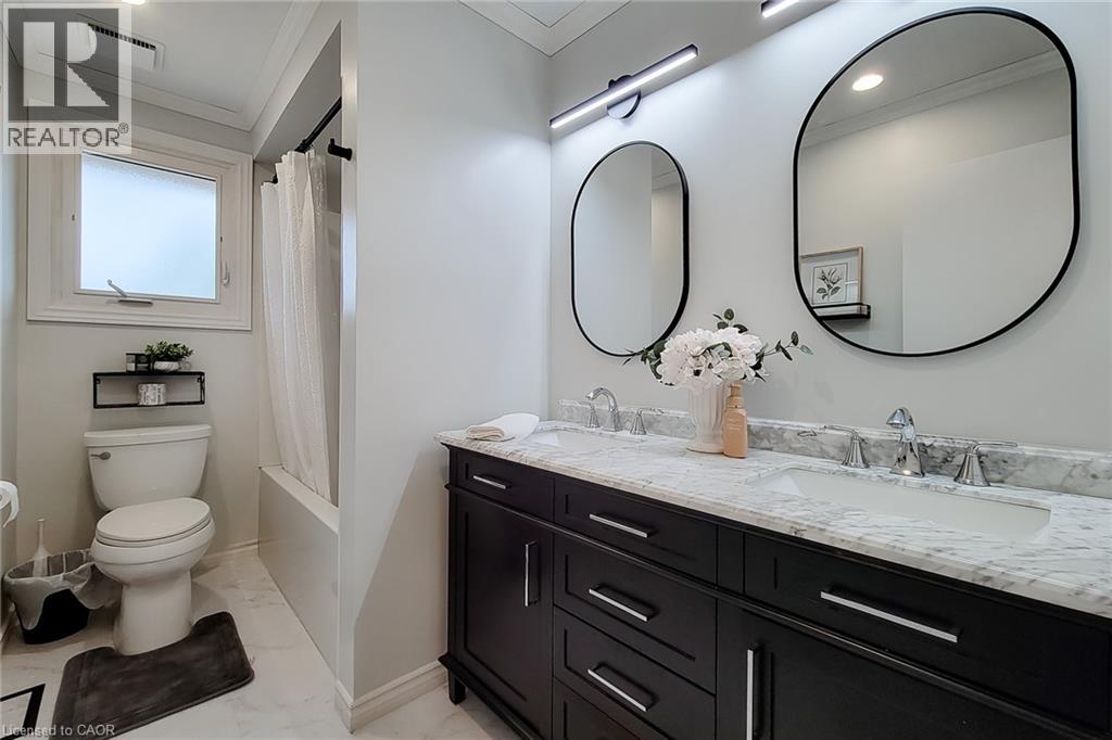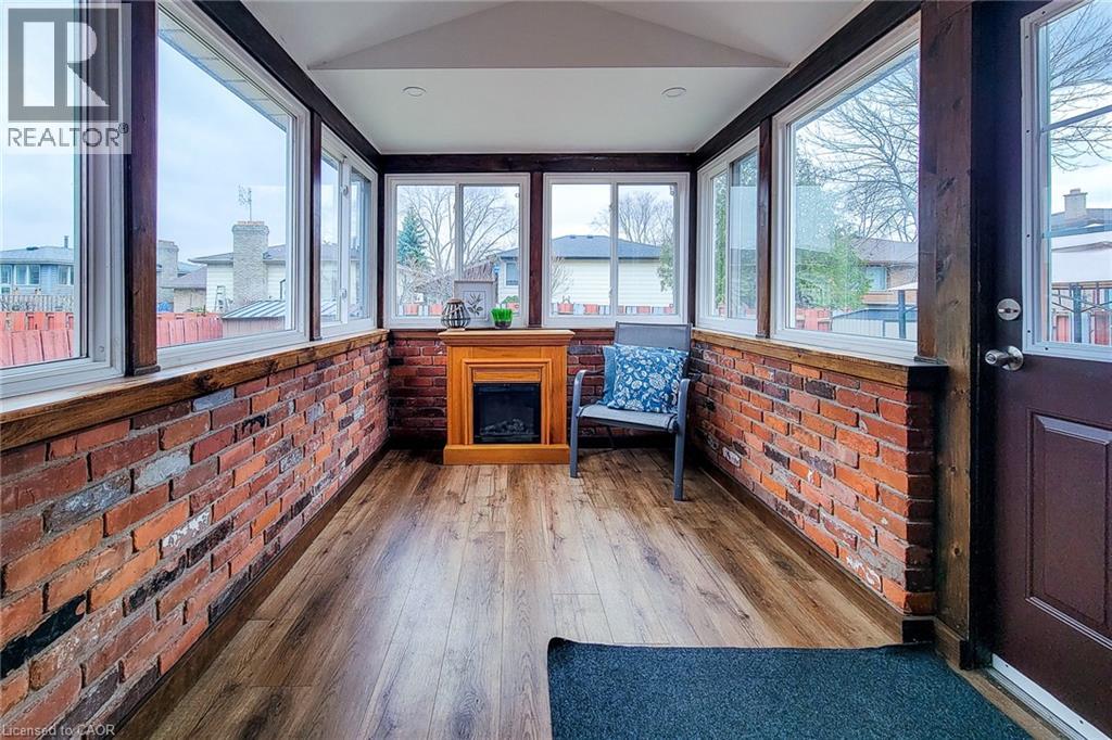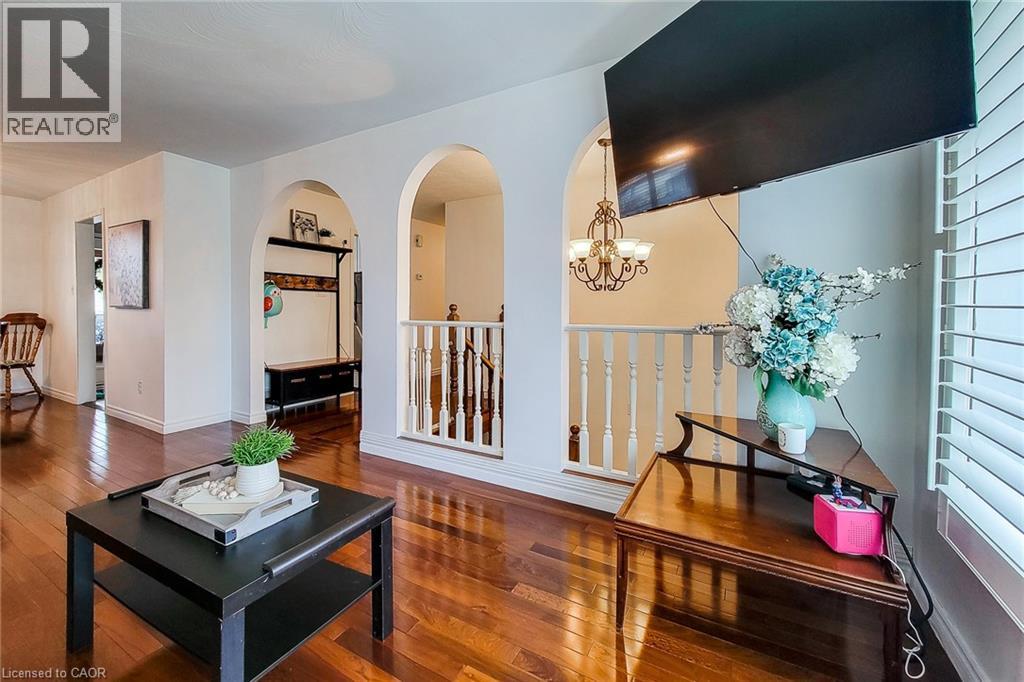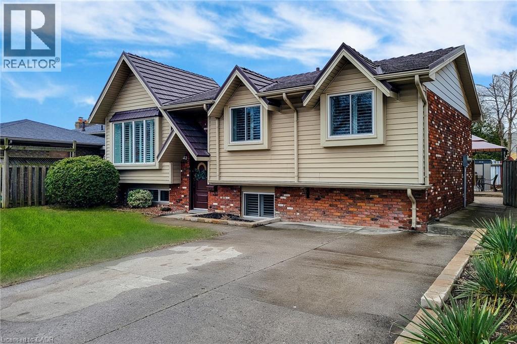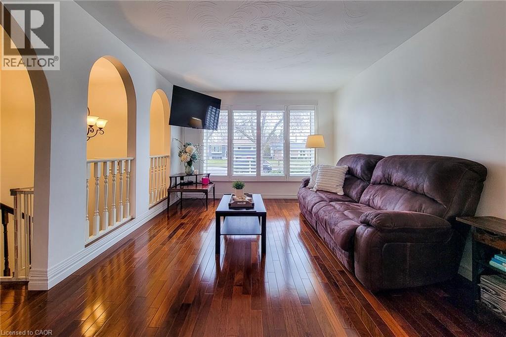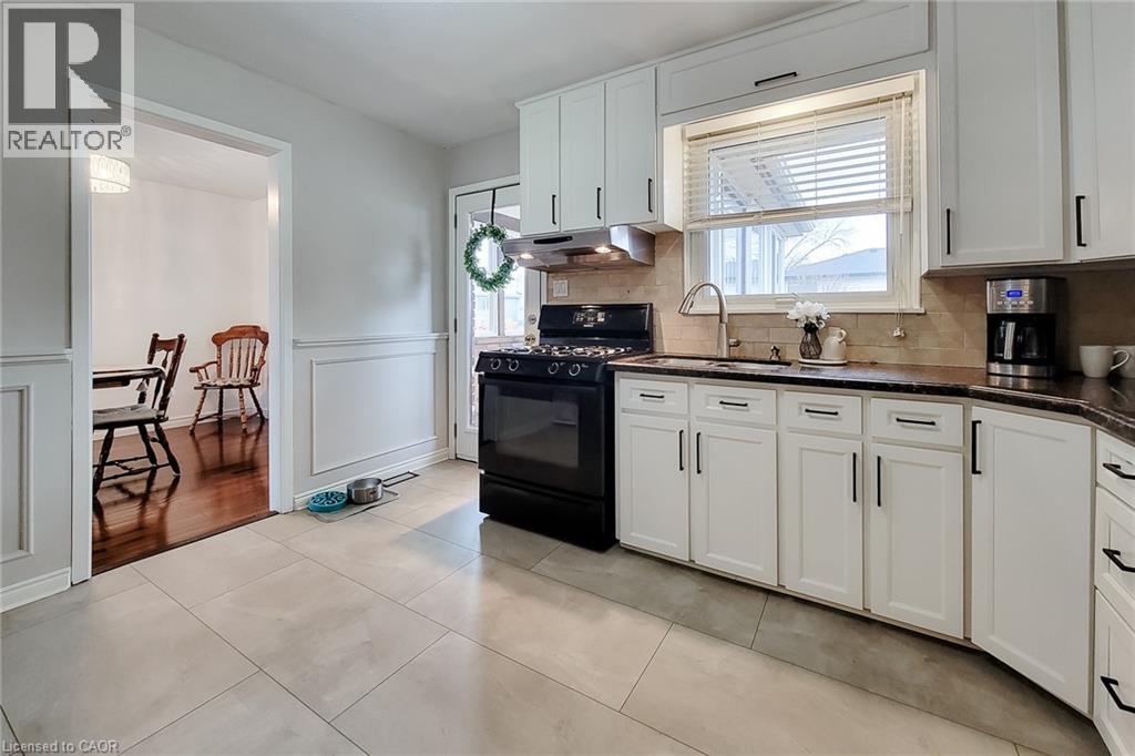 Welcome to this beautifully maintained raised ranch bungalow nestled in a quiet, family-friendly court in desirable Stoney Creek—where kids play, neighbours connect, and lasting memories are made. Offering just over 1,150 sq ft of bright, functional living space, this home features gleaming hardwood floors, California shutters, and a spacious open-concept living and dining area filled with natural light from large windows. The updated kitchen includes a brand new dishwasher and flows seamlessly into a sunroom addition, creating the perfect space to relax and enjoy views of the backyard. The main level offers three generously sized bedrooms and beautifully updated bathrooms finished in a modern white palette with stylish black accents. The raised ranch design provides a bright, fully finished lower level featuring a cozy family room with a wood-burning fireplace, an additional bedroom or office space, laundry, and ample storage. The lower level bedroom offers flexibility and can be converted back to a garage if desired. Step outside to your fully fenced backyard retreat, complete with a gazebo, updated deck, and two storage sheds—perfect for entertaining or relaxing. This home also boasts excellent curb appeal with a durable metal roof, new eavestroughs, and a furnace updated in 2025 for added peace of mind. Located within walking distance to schools, parks, and public transit, and just minutes from highway access, this home offers the perfect blend of comfort, convenience, and community. (id:4555)
