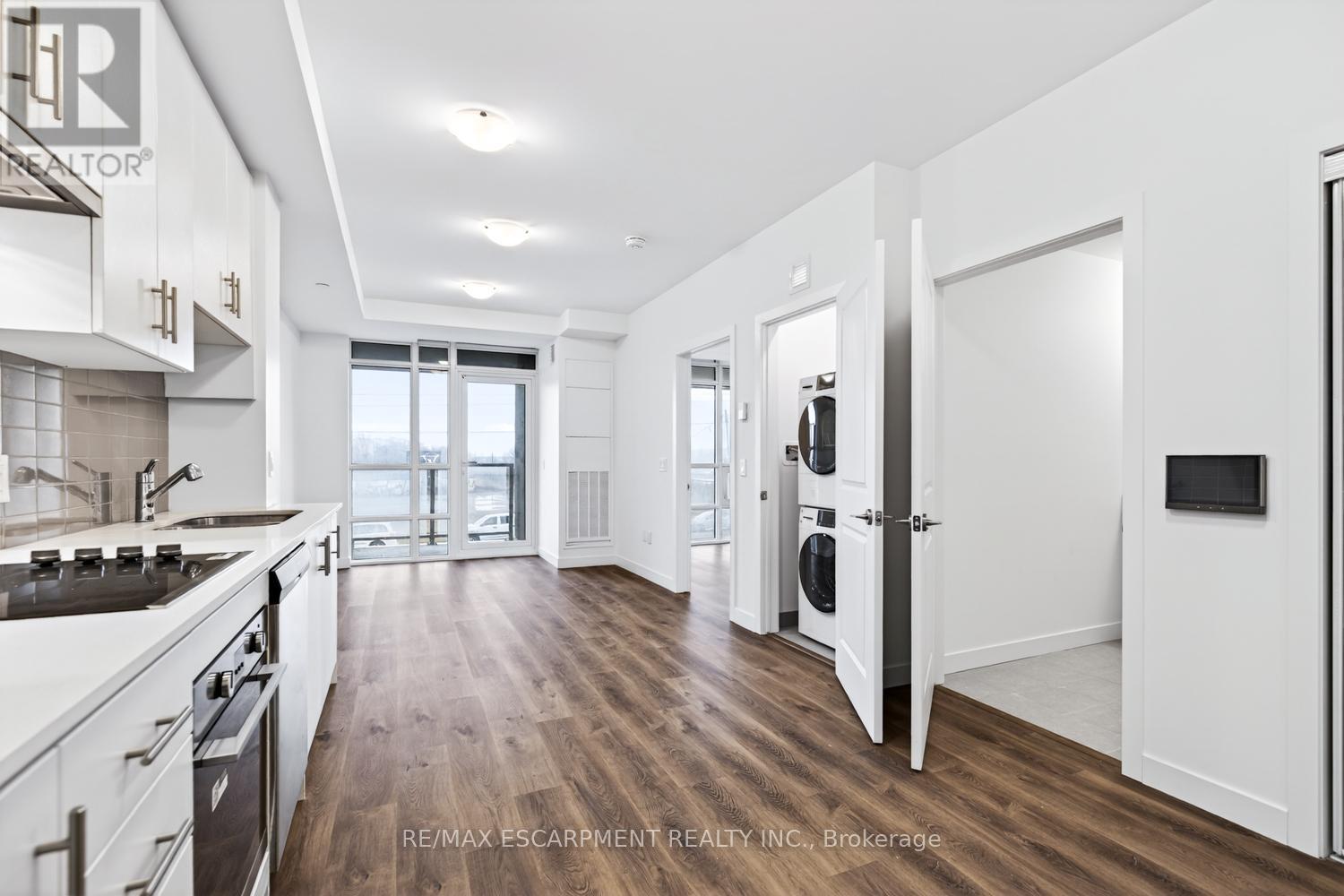 Welcome to stylish condo living at Muse Condos in Stoney Creek, just steps to Lake Ontario and scenic waterfront trails! This brand new 1 bed, 1 bath suite offers a bright open-concept layout with luxury vinyl flooring throughout, a sleek kitchen with quartz countertops, stainless steel appliances, ample cabinetry, in-suite laundry, energy-efficient geothermal heating/cooling & more! 1 parking & 1 locker included. Residents enjoy access to premium building amenities including a fitness centre, party room, rooftop terrace, and visitor parking. Ideally located with easy access to the QEW. Perfect for first-time buyers, downsizers, or investors! (id:4555)