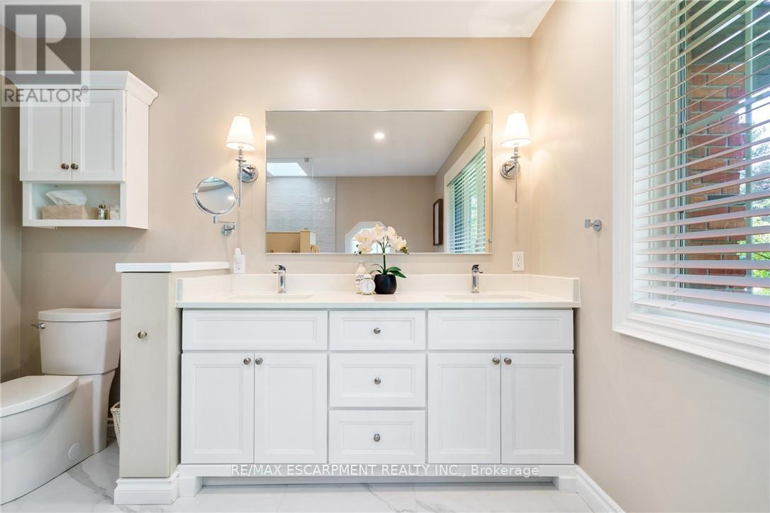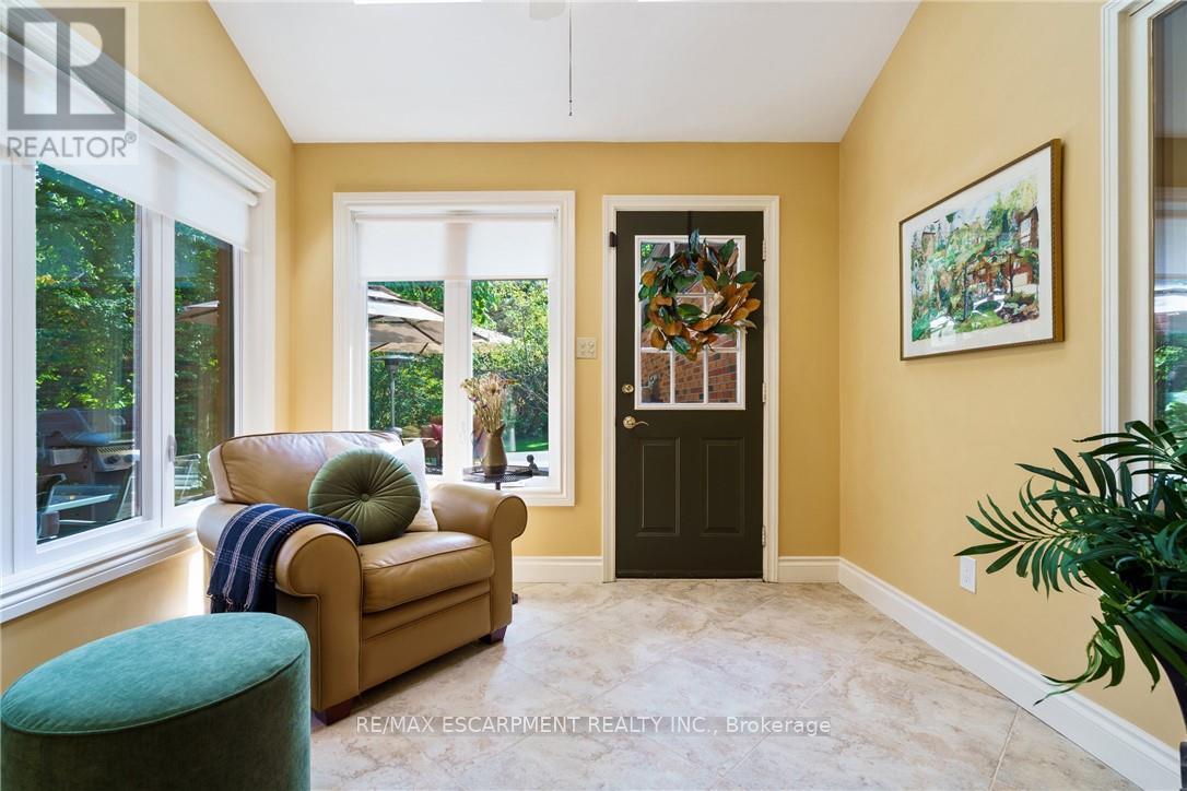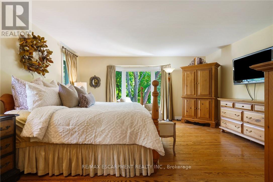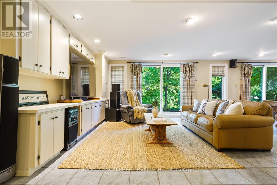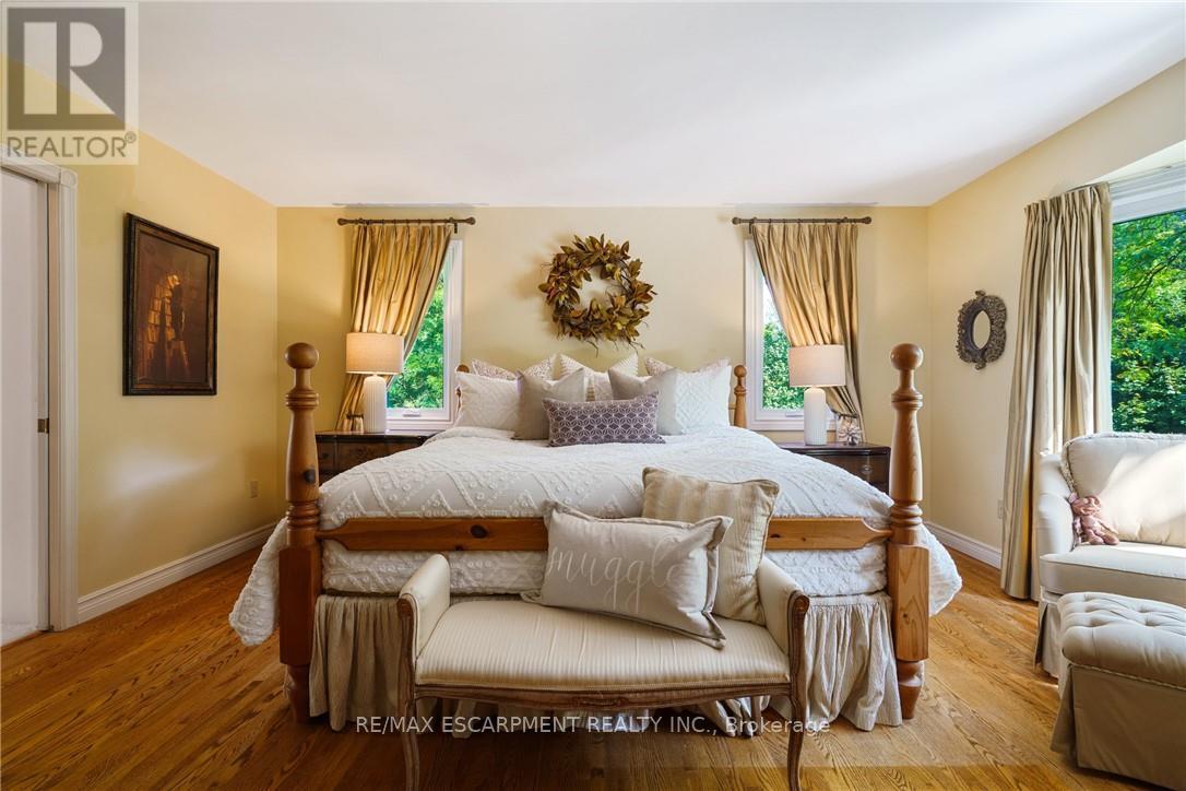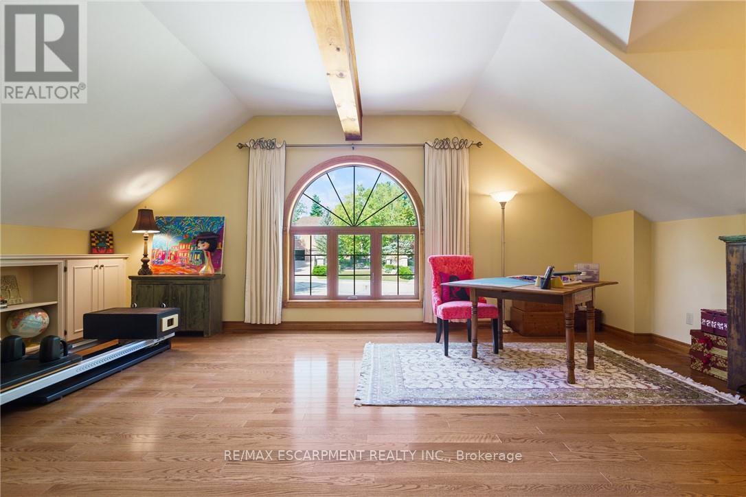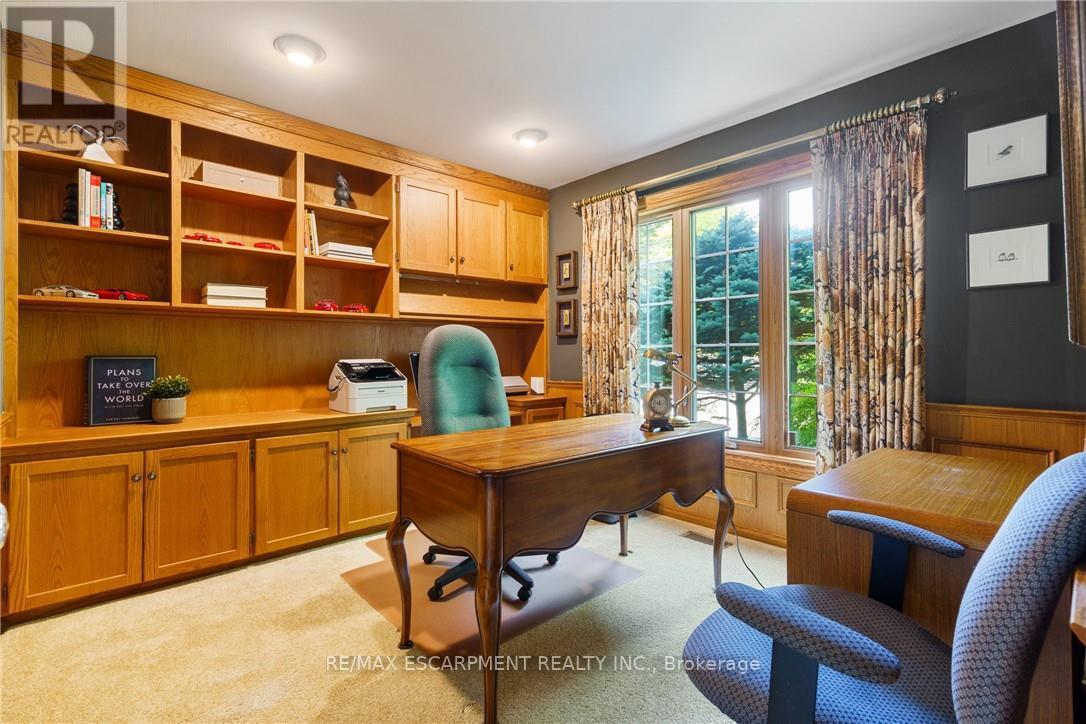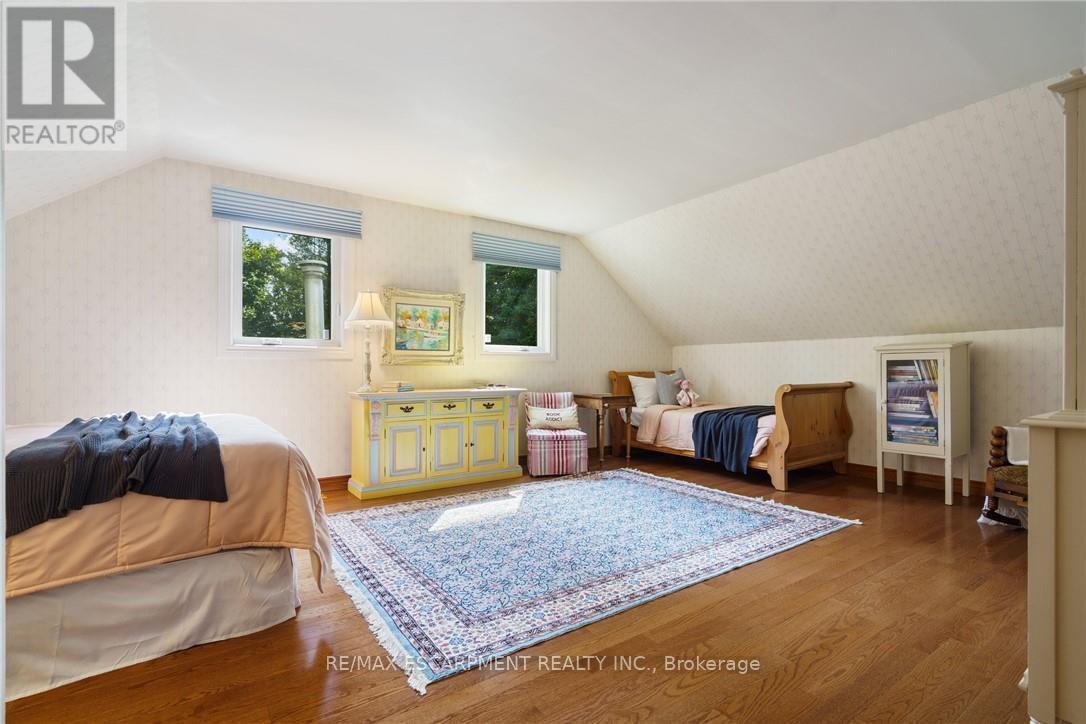 A rare blend of luxury, privacy, and pure lifestyle magic-this exceptional property delivers an experience unlike anything else. Set on a picturesque 0.61-acre, tree-lined lot backing onto protected conservation lands, this pristine all-brick two-storey home offers refined living surrounded by serene, uninterrupted green space. Designed with family living and entertaining in mind, the home offers six spacious bedrooms and five well-appointed bathrooms.The main level features elegant principal rooms, including a formal living and dining area highlighted by a beautiful bay window.The chef-inspired kitchen is a standout, complete with a gas stove, stone countertops, stainless steel appliances, walk-in pantry, and a generous island with bar seating-seamlessly connecting to a bright dinette and an inviting family room anchored by a wood-burning fireplace with a classic brick mantle.Thoughtful touches continue with a sun-filled reading nook, powder room, main floor laundry, and convenient inside access to the garage. Upstairs, a sweeping oak staircase leads to a luxurious primary retreat featuring a walk-in closet and a recently updated spa-like five-piece ensuite with soaker tub and separate glass shower.Additional bedrooms are generously sized, with well-designed Jack-and-Jill bath layouts, ideal for family or guests.The fully finished walk-out basement expands the living space even further, offering a large recreation area, dedicated exercise room with three-piece bath and sauna, and the show-stopping squash court.Outdoors, the property transforms into a private oasis with tiered decking, a stone patio, and beautifully landscaped grounds-all perfectly oriented to capture the tranquility of the protected green space beyond.Plus, a charming log cabin retreat and a separate viewing deck perfectly positioned to take in the sweeping natural backdrop.An extraordinary offering where sophistication, comfort, and a sense of adventure come together effortlessly. Luxury Certified (id:4555)