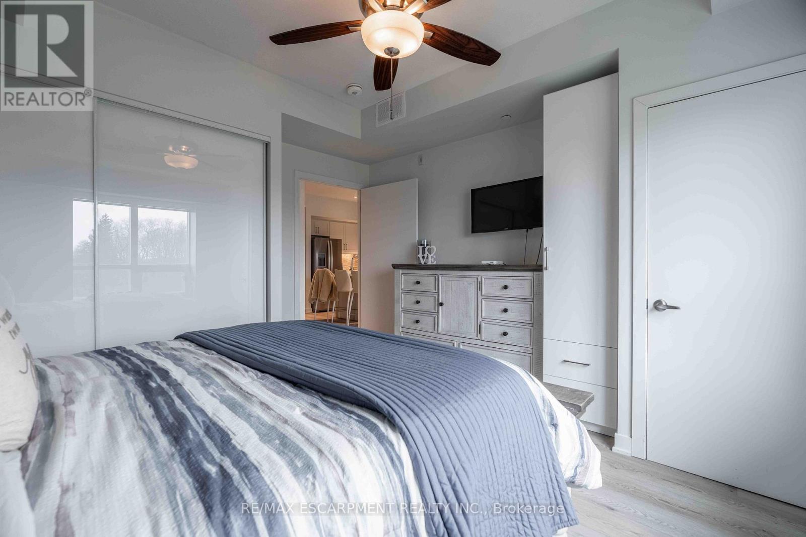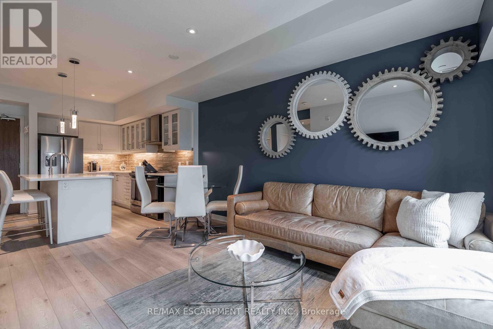 Welcome to this beautiful newer-build condo in the heart of desirable Ancaster, offering the perfect blend of modern design, comfort, and convenience. This bright and spacious unit features an open-concept layout with large windows that fill the space with natural light. Thoughtfully designed with accessible doorways and hallways, the unit provides ease of movement and functional living for all lifestyles. Enjoy cooking and entertaining in the upgraded kitchen, complete with premium finishes and enhancements that set this unit apart from others in the building. Additional upgrades throughout the condo add both style and value. Step outside to your private terrace overlooking peaceful green space, creating a quiet and relaxing setting rarely found in condo living. This unit also includes the convenience of owned parking and an owned storage locker. Residents enjoy fantastic building amenities including a fully equipped fitness centre, party room, and an outdoor patio with BBQs, perfect for entertaining or relaxing with friends and family. Ideally located close to all amenities in Ancaster, including shopping, restaurants, parks, and everyday conveniences, with easy highway access for commuters. A rare opportunity to own a beautifully upgraded condo in one of Ancaster's most sought-after communities. (id:4555)