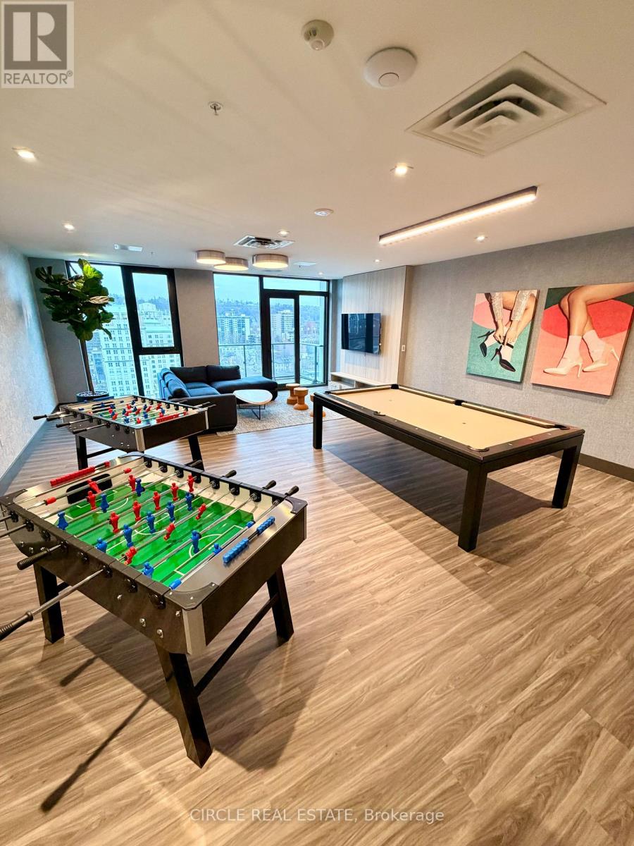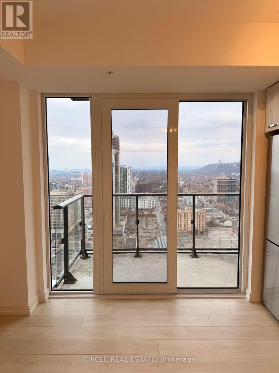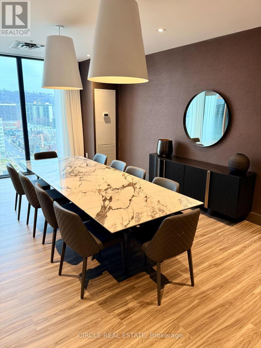 Perched on the 26th floor of the iconic 75 James Street South, this corner suite offers a seamless blend of luxury, light, and breathtaking panoramic views. Floor-to-ceiling windows wrap the space, showcasing stunning lake views from both bedrooms, while the living area and balcony capture beautiful sunrises over the escarpment. A second private balcony off the primary bedroom provides a peaceful retreat overlooking the water. Inside, elegant finishes define the home. The sleek modern kitchen features stainless steel appliances, under-mounted cabinet lighting, and contemporary detailing, flowing into a bright open-concept living and dining area-ideal for entertaining or relaxing above the city. Residents enjoy over 16,000 sq ft of premium amenities, including a rooftop terrace with 270 views, gazebos, fire pits, and a full BBQ station. Additional features include a movie theatre, party rooms, games room, kids' play area, pet spa, and 24/7 concierge service. Unbeatable location directly across from the Hamilton GO Station-just steps away. Positioned on Main Street's main transit corridor and moments to vibrant James Street, top dining, the waterfront, scenic trails, and the TD Coliseum. Experience elevated city living where design, convenience, and views come together. (id:4555)