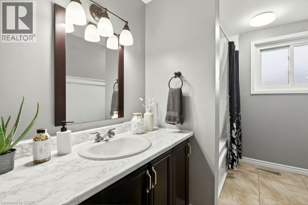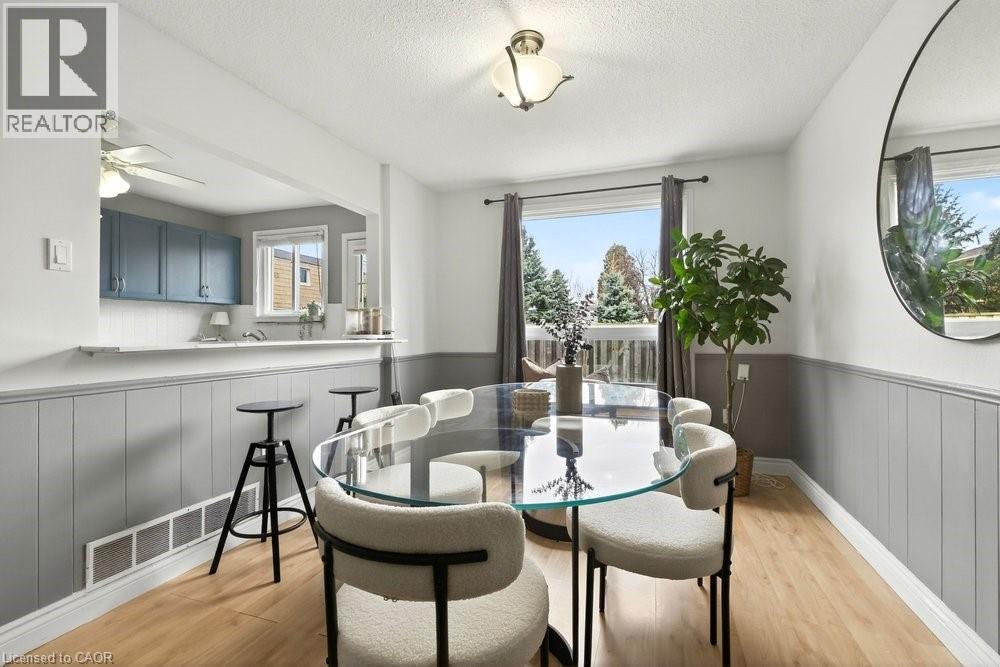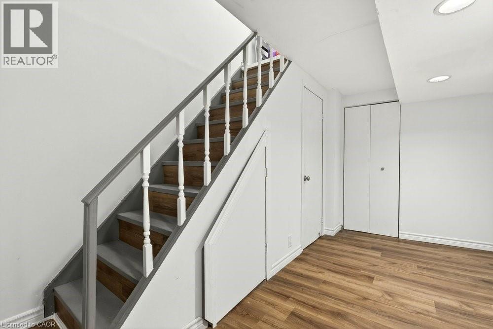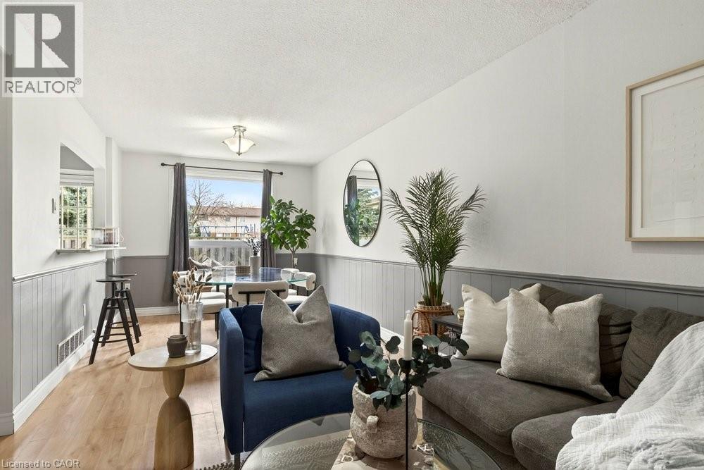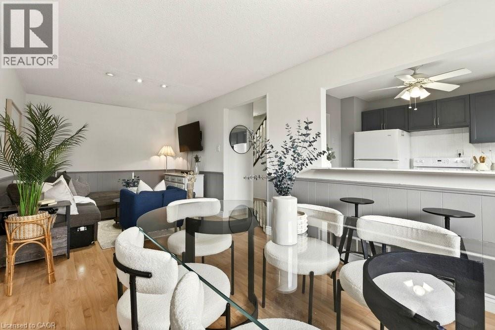 Move-in ready 3-bedroom townhome with garage and finished basement on Hamilton's desirable East Mountain! Welcome to #4-1350 Limeridge Road East, located in a quiet, family-friendly townhome community directly across from Mohawk Sports Park with green space, sports fields and walking trails, and just minutes to schools, Albion Palls, shopping and highway access. The main floor offers a bright and functional layout with a spacious living and dining area and a kitchen with breakfast bar, ideal for everyday living and entertaining. Upstairs you'll find three generously sized bedrooms and a full bathroom, offering comfortable space for families or first-time buyers. The finished basement adds valuable living space and features new vinyl flooring, perfect for a family room, home office or play area. The home has also been freshly painted, giving it a clean, updated feel throughout. Enjoy the convenience of an attached single garage (compact) plus private driveway parking and a fully fenced, low-maintenance backyard with patio backing onto the complex playground and greenspace. This well-maintained community offers a family-friendly setting just steps from Mohawk Sports Park. Low condo fees include water, basic cable, high-speed internet and exterior maintenance, offering excellent value and truly low-maintenance living. A great opportunity for first-time buyers, downsizers or investors looking for value in a well-connected East Mountain neighbourhood. (id:4555)