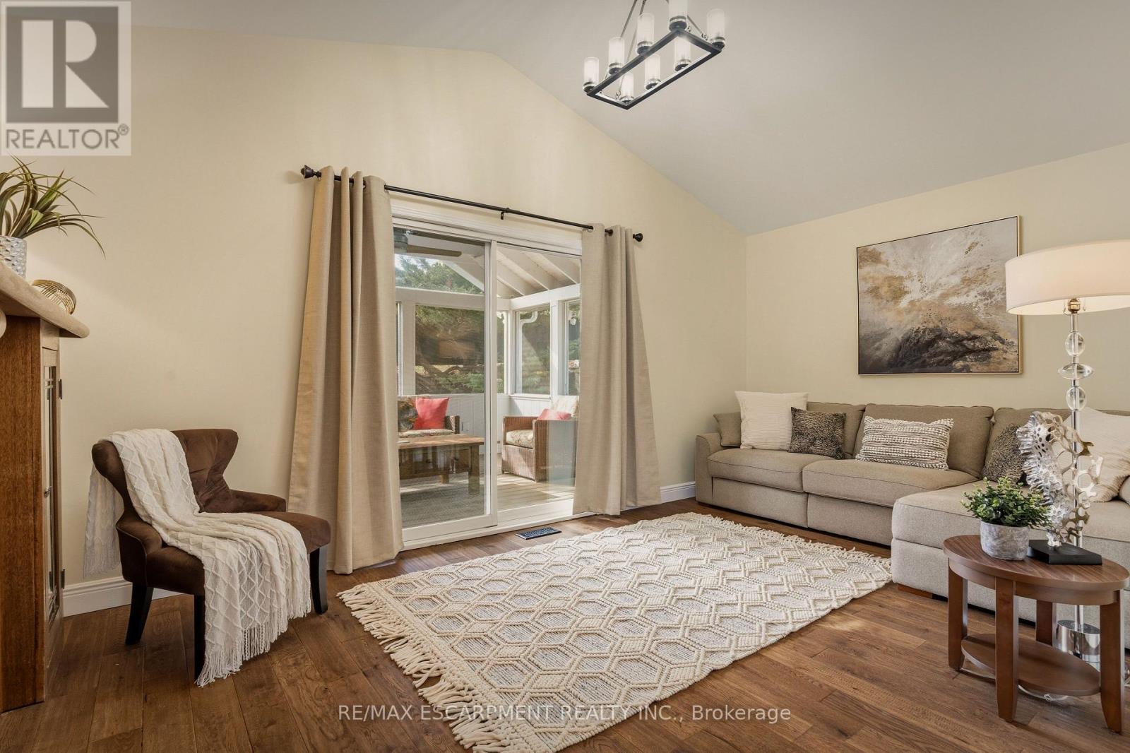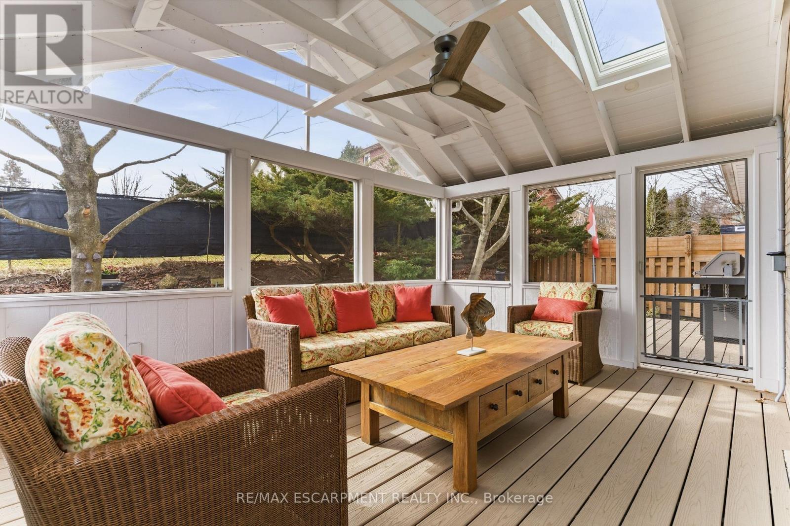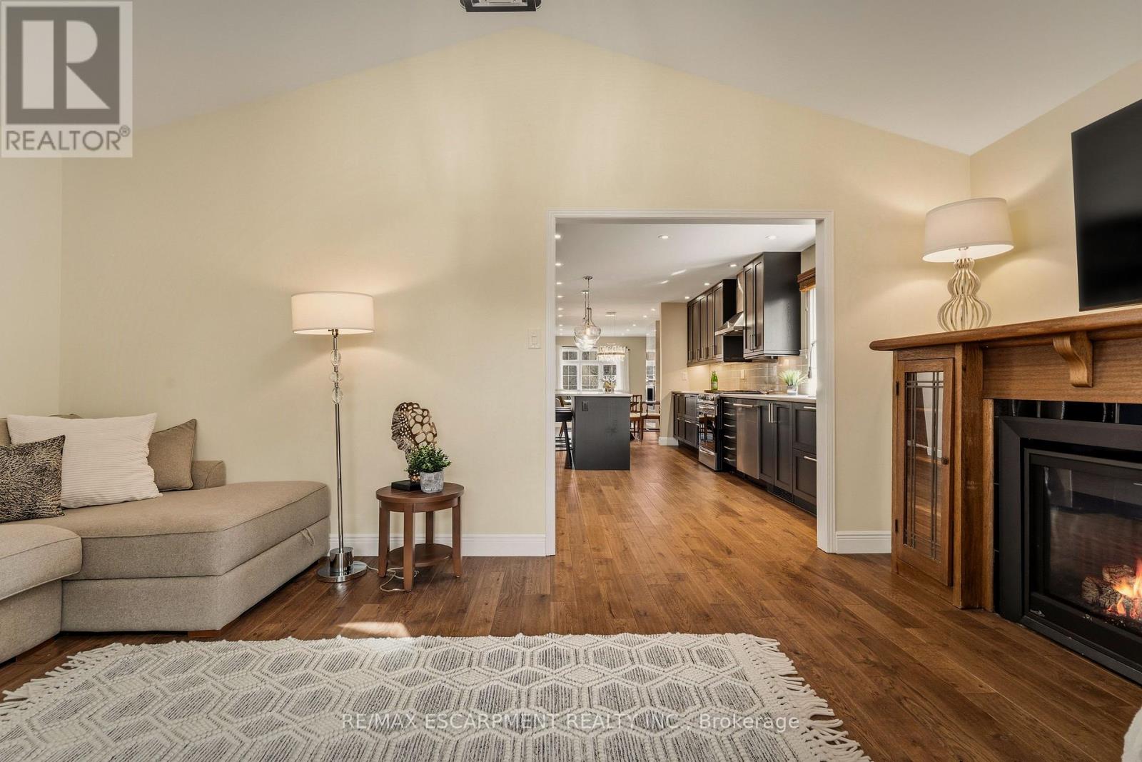 Welcome to 25 Linington Trail! This beautiful BUNGALOW, offering just under 2,400 sq. ft. of finished living space, has been lovingly maintained and extensively renovated with over $80,000 in upgrades. Every detail reflects quality craftsmanship and timeless design. Step inside to discover solid white oak hardwood flooring (2020) and a renovated kitchen (2020)featuring stylish cabinetry, a central island, granite countertops, modern lighting, and upgraded appliances. The open-concept living and dining area is perfect for entertaining, complete with a sleek gas fireplace (2020) and a large window overlooking the beautifully landscaped garden. Relax in the spacious family room, highlighted by a second gas fireplace with a custom-designed mantle and a walkout to a screened-in porch (2021)-a perfect retreat for warm summer evenings. The primary suite offers a generous walk-in closet and a spa-inspired 4-piece ensuite with double sinks and a separate shower. The second bedroom makes an ideal guest room or home office, and the main bath has been thoughtfully renovated. On the lower level, you'll find a large recreation room-an inviting space for gatherings-complete with a third gas fireplace and a built-in bar. The updated laundry area (2022) includes a stackable washer/dryer and a second fridge. The renovated 3-piece bath (2022) features a shower screen, custom cabinetry, porcelain sink, and heated floors. Two additional bedrooms with built-in cabinetry offer comfortable accommodations and abundant storage. Upgrades continue in the utility room, including a tankless water heater (2022), upgraded electrical panel (2022), modernized furnace and A/C, and extra storage. Outdoors, the backyard oasis (2021-2024) is a gardener's delight, featuring a new patio, walkway, landscape curbing, French drain, stepping stones, and a full irrigation system (2024).Don't miss this gorgeous home, ideally located close to shopping, highways, excellent schools, and scenic hiking trails. (id:4555)