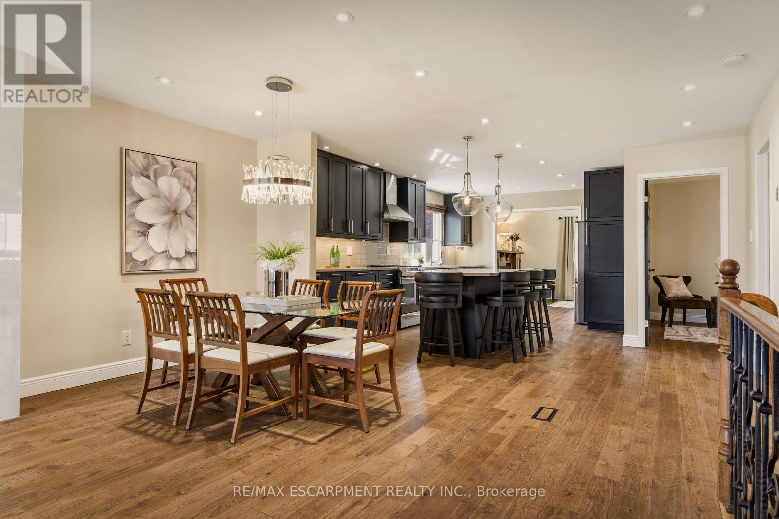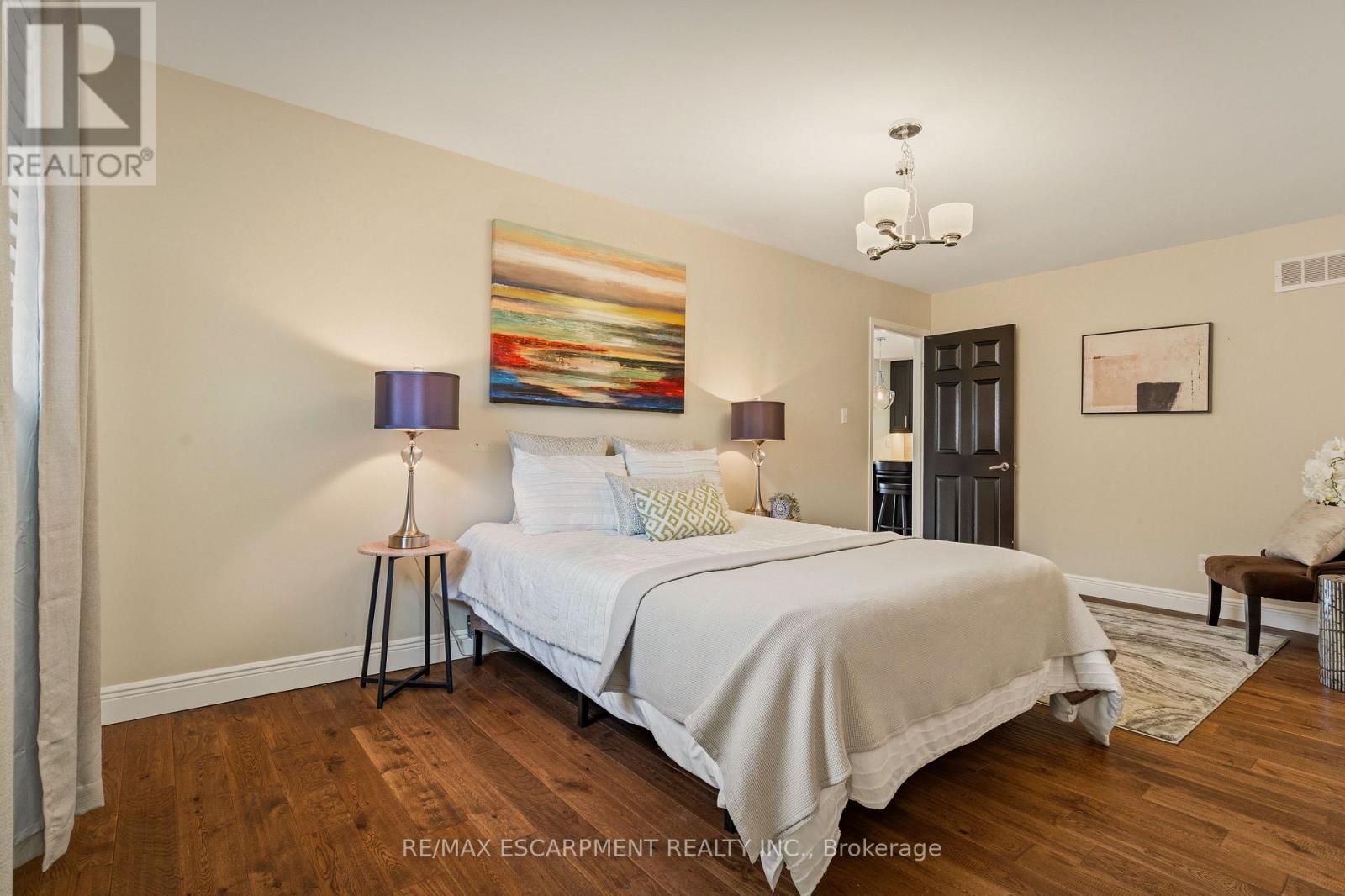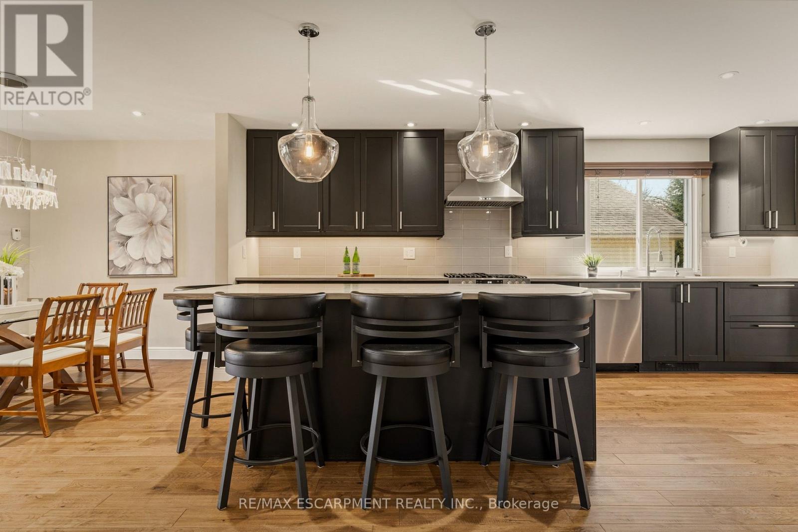 Welcome to 25 Linington Trail! This beautiful BUNGALOW, offering just under 2,400 sq. ft. of finished living space, has been lovingly maintained and extensively renovated with over $80,000 in upgrades. Every detail reflects quality craftsmanship and timeless design. Step inside to discover solid white oak hardwood flooring (2020) and a renovated kitchen (2020)featuring stylish cabinetry, a central island, granite countertops, modern lighting, and upgraded appliances. The open-concept living and dining area is perfect for entertaining, complete with a sleek gas fireplace (2020) and a large window overlooking the beautifully landscaped garden. Relax in the spacious family room, highlighted by a second gas fireplace with a custom-designed mantle and a walkout to a screened-in porch (2021)-a perfect retreat for warm summer evenings. The primary suite offers a generous walk-in closet and a spa-inspired 4-piece ensuite with double sinks and a separate shower. The second bedroom makes an ideal guest room or home office, and the main bath has been thoughtfully renovated. On the lower level, you'll find a large recreation room-an inviting space for gatherings-complete with a third gas fireplace and a built-in bar. The updated laundry area (2022) includes a stackable washer/dryer and a second fridge. The renovated 3-piece bath (2022) features a shower screen, custom cabinetry, porcelain sink, and heated floors. Two additional bedrooms with built-in cabinetry offer comfortable accommodations and abundant storage. Upgrades continue in the utility room, including a tankless water heater (2022), upgraded electrical panel (2022), modernized furnace and A/C, and extra storage. Outdoors, the backyard oasis (2021-2024) is a gardener's delight, featuring a new patio, walkway, landscape curbing, French drain, stepping stones, and a full irrigation system (2024).Don't miss this gorgeous home, ideally located close to shopping, highways, excellent schools, and scenic hiking trails. (id:4555)