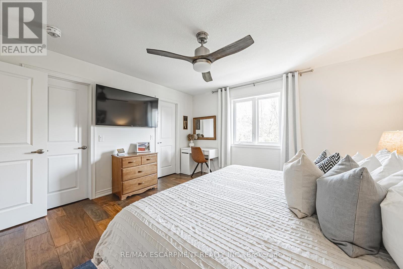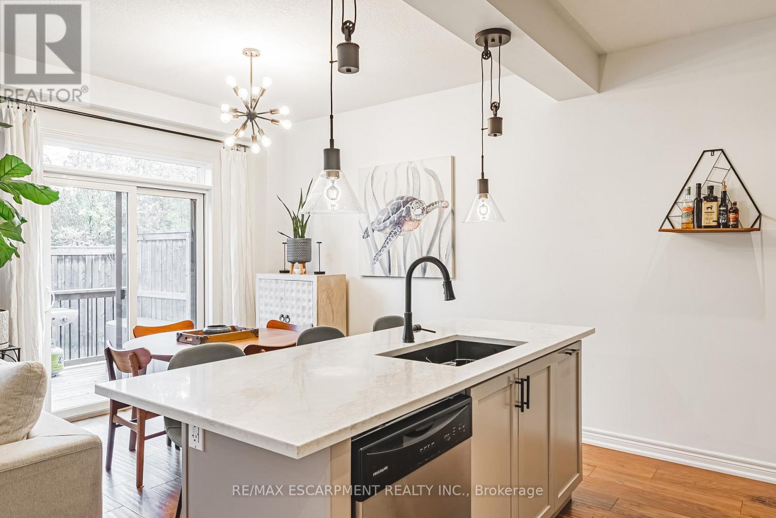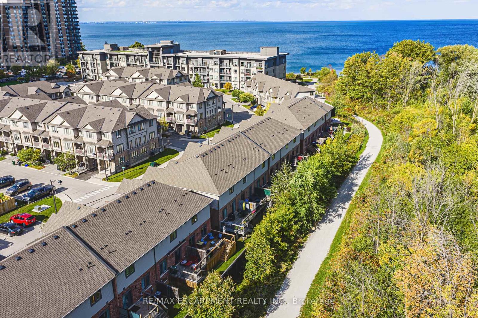 Introducing 83 Southshore, a stunning freehold townhome located in the heart of Stoney Creek with lakefront access and luxurious upgrades throughout. Offering over 1500 sq ft of above-grade living space, this 3 Bed, 2.5 Bath home is truly a gem. From the moment you walk in, pride of ownership is evident. The living room boasts custom built-ins, including a hidden appliance caddy, while the kitchen has been tastefully upgraded with quartz countertops, a designer backsplash (2025), stainless steel appliances, and a gas stove. Engineered hardwood flooring and pot lights run throughout the home - no carpet anywhere! Key upgrades include owned furnace, AC, and hot water heater. Laundry is conveniently located on the 2nd floor, complete with a built-in floor drain. The primary suite is a retreat, featuring his & her closets and a 4-piece ensuite. The backyard is perfect for entertaining, with a new deck (2025) and just steps from Lake Ontario. The basement includes a 3-piece rough-in and sump pump, ready for your personal touch. With an unbeatable location, 83 Southshore is close to major highways, the Confederation GO Station (operational in 2025), and offers quick connections to downtown Toronto and Niagara wine country. Enjoy serene lakefront living at Ellie's Beach (200m away) or explore the multi-million dollar revitalization of waterfront trails and recreational amenities at Confederation Beach Park (under 1.5km away). This freehold townhome includes a $120/month association fee covering snow removal and landscaping, ensuring peace of mind year-round. Don't miss this rare opportunity to own a luxurious home in such a coveted location. Book your viewing today and Let's Get Moving! (id:4555)