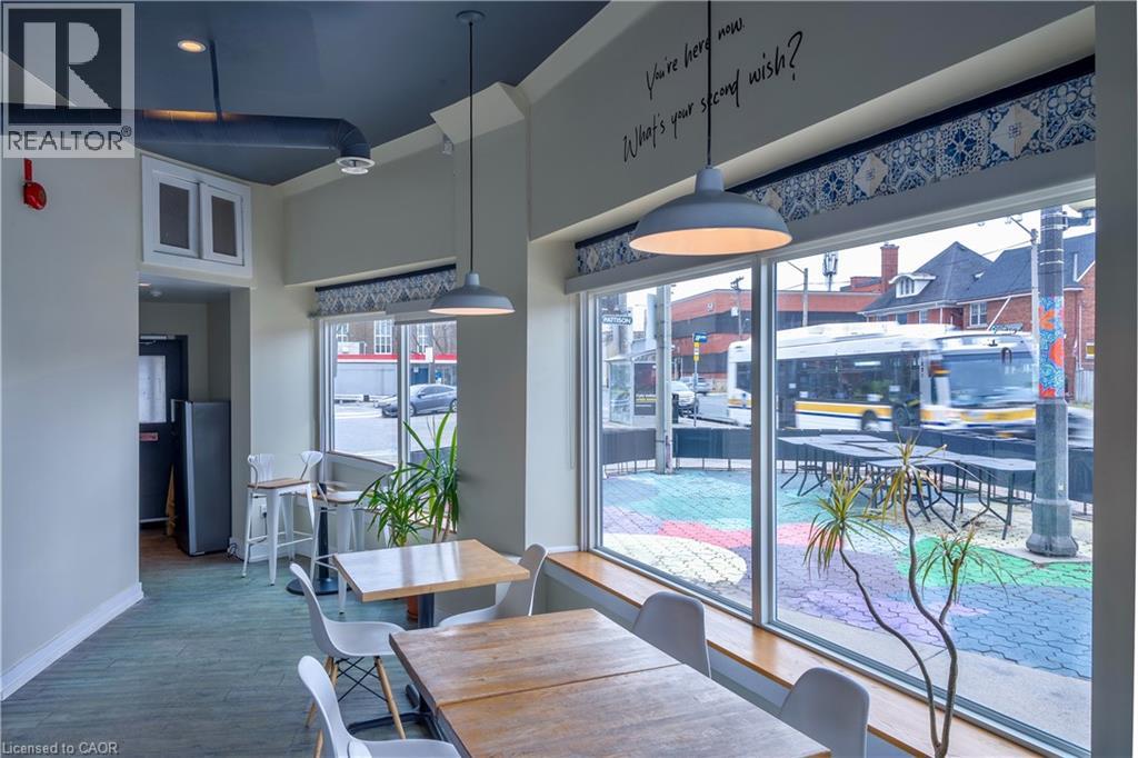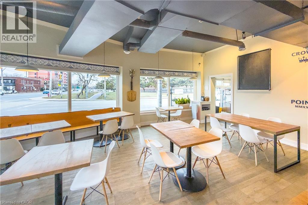 Turnkey restaurant space for lease at the high profile corner of Ottawa Street North and Main Street East in Hamilton. This prominent corner location delivers exceptional visibility along a major arterial route, strong signage exposure, and expansive wraparound glass windows that fill the space with natural light and create a bright, open street presence. Set over two levels, the premises are ideally suited for restaurant, café, lounge, or other food-service uses seeking a space with existing infrastructure already in place. The layout includes a fully built-out commercial kitchen with existing equipment, including a range hood, stove/oven, pizza oven, and dishwasher. A bar area is also in place with bar fridge, taps, and ice maker, along with customer seating and outdoor patio space. Located within one of Hamilton’s best-known commercial corridors, this opportunity offers excellent accessibility, consistent pedestrian and vehicular exposure, and a strong profile for operators looking to establish or expand in a proven retail node. A compelling leasing opportunity to secure a prominent restaurant location with existing kitchen and bar improvements already in place. (id:4555)