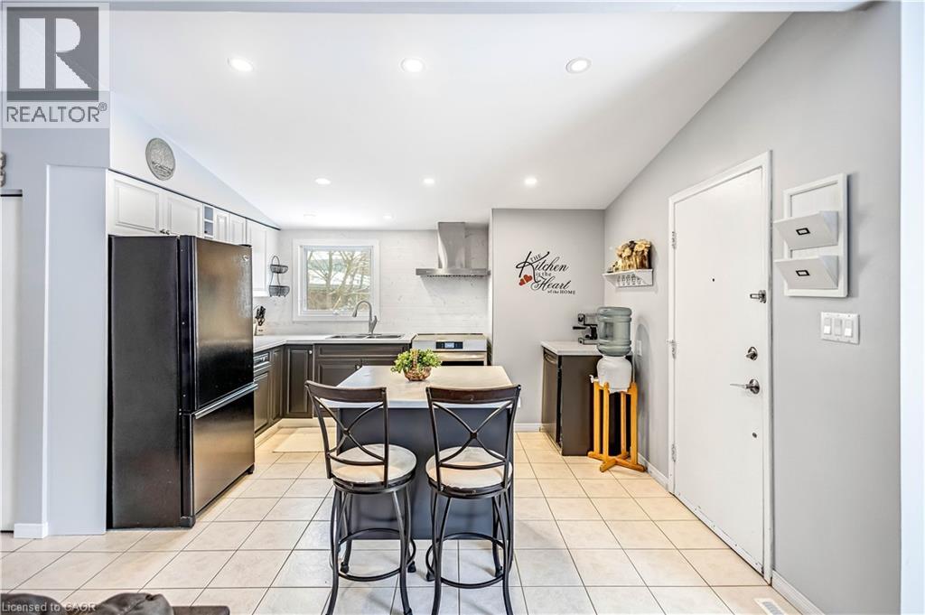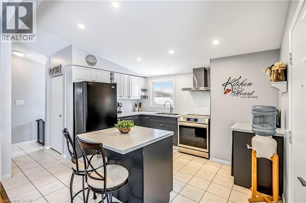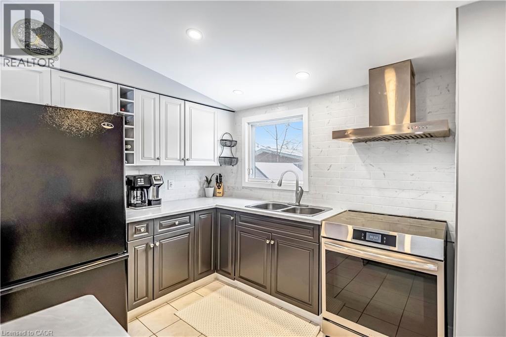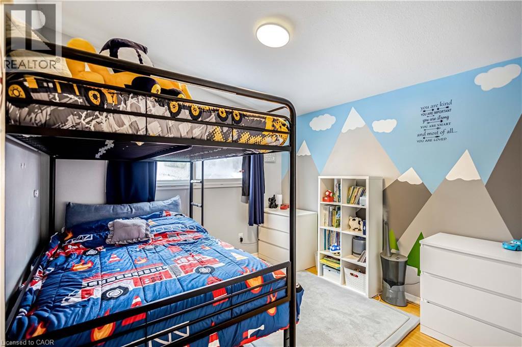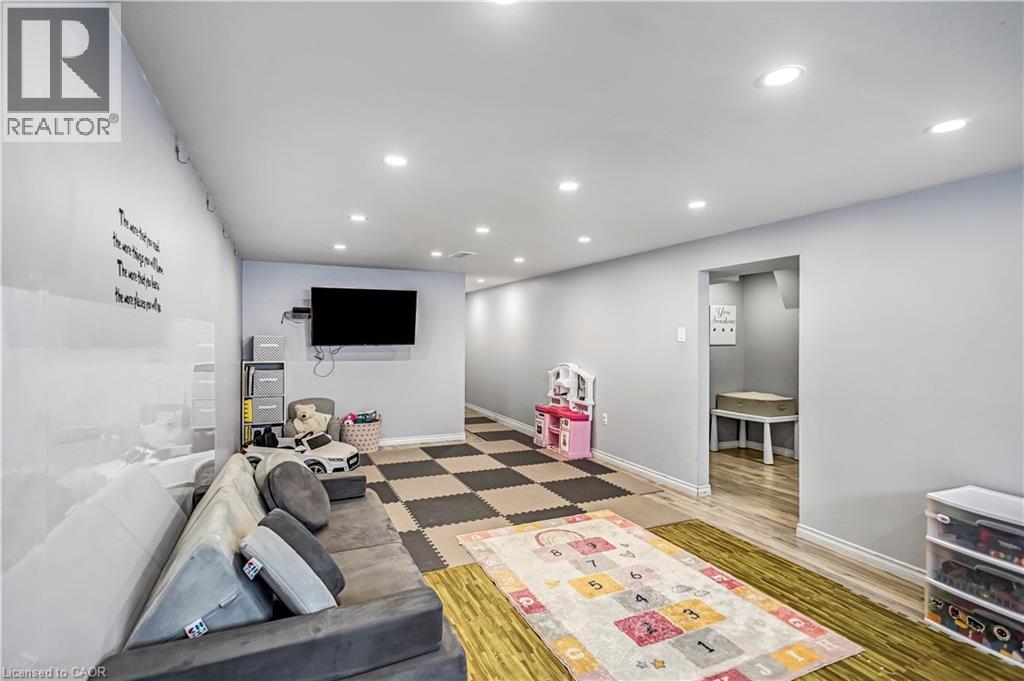 Welcome to 5 Carrington Court, tucked away in the highly desirable Bruleville neighbourhood on Hamilton Mountain, a quiet family friendly community close to excellent schools, shopping, transit, and major commuter routes. This exceptional location offers the perfect balance of peaceful cul de sac living with easy access to everyday amenities and nearby recreational trails. Inside, this thoughtfully updated 3 plus 1 bedroom, 2 bathroom home blends style and functionality with ease. The bright family room features a vaulted ceiling and a striking rustic fireplace feature wall, creating a warm and inviting focal point for cozy evenings. The refreshed kitchen showcases two tone cabinetry, a modern backsplash, and pot lighting for a clean contemporary look. A sleek 3 piece main bathroom with a stand up shower complements the main level, while the generously sized bedrooms include a comfortable primary retreat with a full wall closet. The separate side entrance to the basement offers outstanding versatility with the potential to convert the space into an in law suite or rental opportunity for ultimate flexibility. The lower level is complete with a spacious rec room with pot lights, a full 4 piece bathroom, an additional well sized bedroom, a storage room and laundry room for all your needs. Step outside to a truly rare find, a massive backyard approximately 165 feet deep, offering exceptional privacy and endless possibilities for entertaining, play, gardening, or future outdoor projects. A home that truly checks all the boxes. RSA (id:4555)