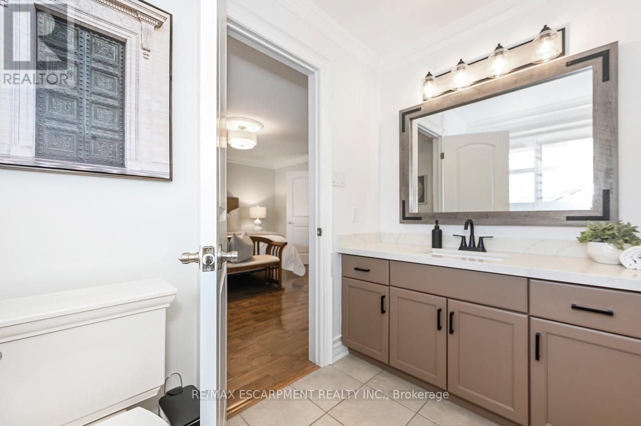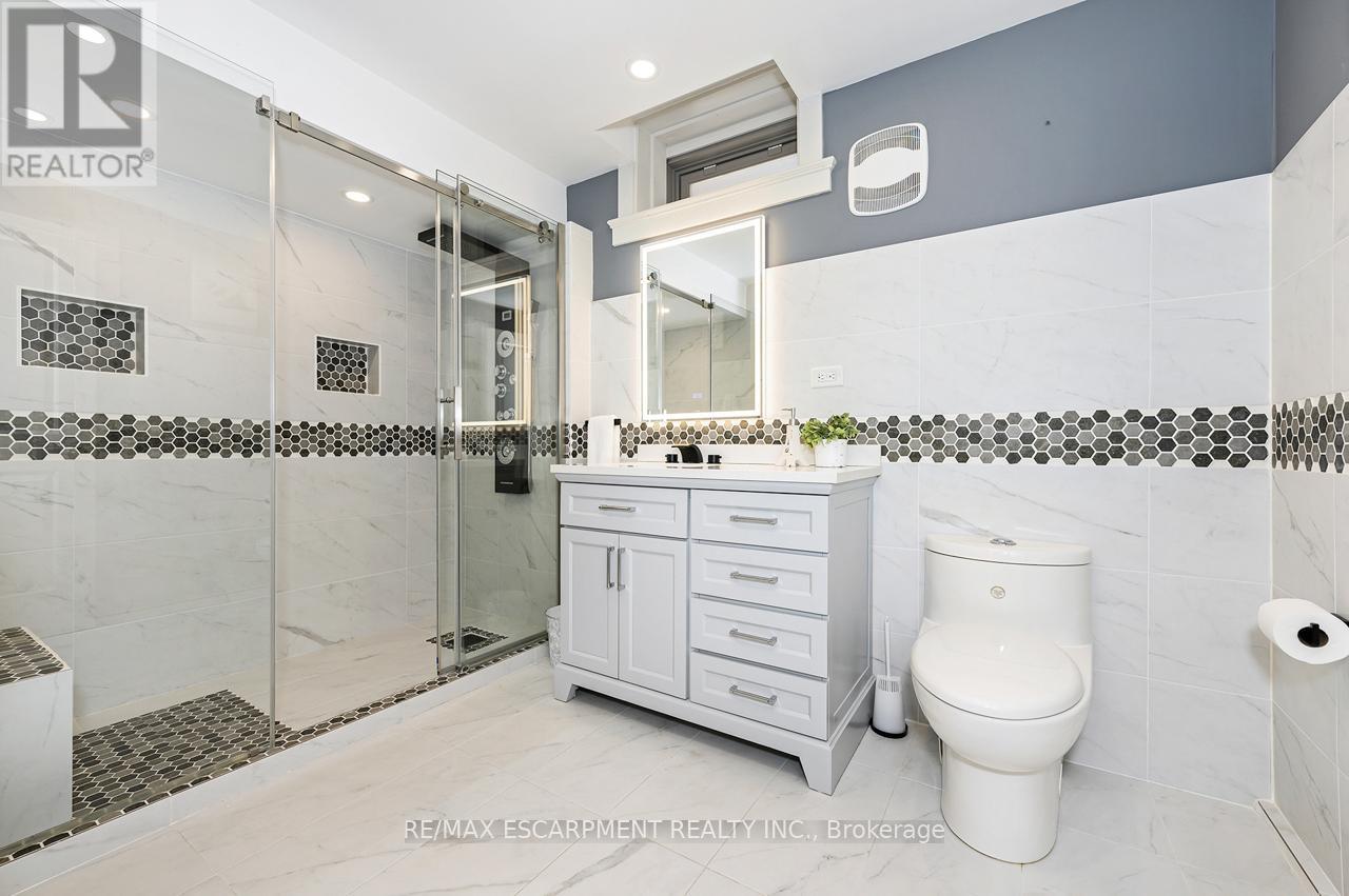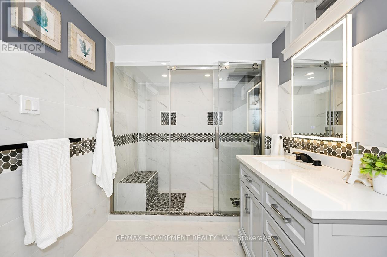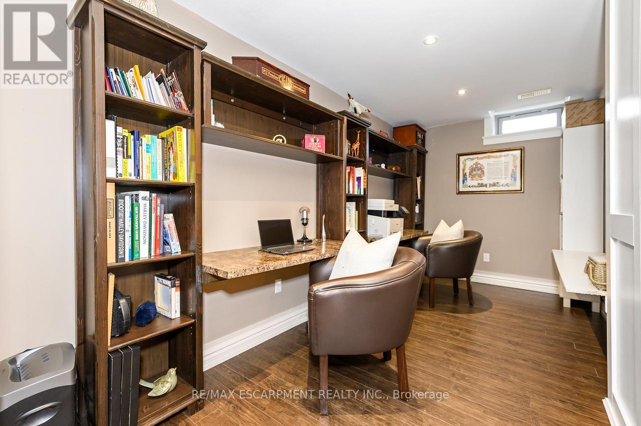 Rare offering of an absolutely gorgeous, impeccably maintained sprawling bungalow with a double car garage and parking for an additional 4 vehicles in the driveway. Set on beautifully landscaped grounds featuring thoughtful hardscaping, an in-ground sprinkler system, and exceptional curb appeal. Offering over 3500 sq ft of fully finished living space, this impressive home delivers comfort, functionality, and elegance throughout. A spacious entryway welcomes you into the sun-filled vaulted dining area that flows seamlessly into the open-concept kitchen, complete with stainless steel appliances, gas stove, quartz countertops, a large peninsula, and centre island overlooking the grand family room with gas fireplace. French doors lead to a charming gazebo, creating the perfect setting for indoor and outdoor entertaining. The main floor features a spacious primary bedroom with walk-in closet and updated ensuite bathroom with glass shower, along with a second generously sized bedroom, a 4-piece bathroom, and convenient main floor laundry. The fully finished lower level offers excellent additional living space including a large rec room, home office, third bedroom, updated 3-piece bathroom, and a versatile fourth room ideal for a gym, office, or playroom, plus abundant storage throughout. This exceptional home truly has it all inside and out, ideally suited for downsizers, empty nesters, or anyone seeking the ease of one-level living, all set on a quiet, tranquil street close to amenities. (id:4555)