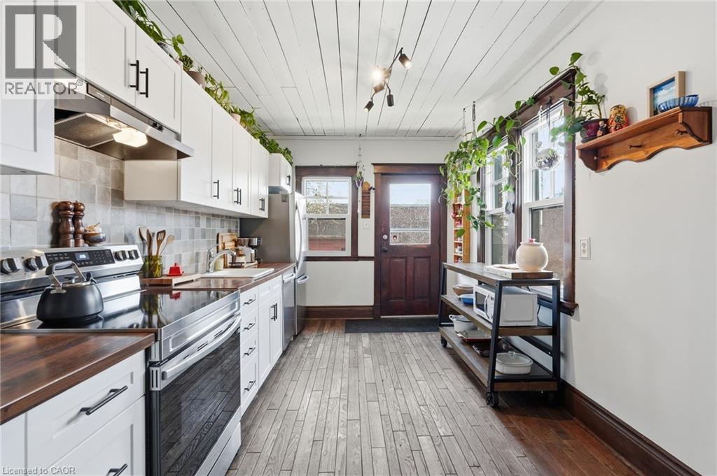 Welcome to 16 Burris Street! This charming 3-bedroom, 1.5-bath home offers 1,514 sq ft of character, warmth and thoughtful updates throughout. The inviting main floor features a bright living space, convenient powder room and a cozy gas fireplace added in 2023. The refreshed kitchen includes new cabinet fronts (2026) and appliances (2025), blending modern convenience with timeless charm. Upstairs you'll find three spacious bedrooms and a refreshed full bathroom. The separate side entrance offers excellent in-law suite potential, while the basement provides additional storage. Outside, enjoy the welcoming front porch, newly paved driveway and private backyard. Major updates include windows throughout the entire home including the basement (2023/2024), roof, soffits and eaves (2023), asphalt driveway (2023), Furnace, A/C and hot water tank (2019). A rare opportunity to own a beautifully updated character-filled home in a convenient Hamilton location. (id:4555)