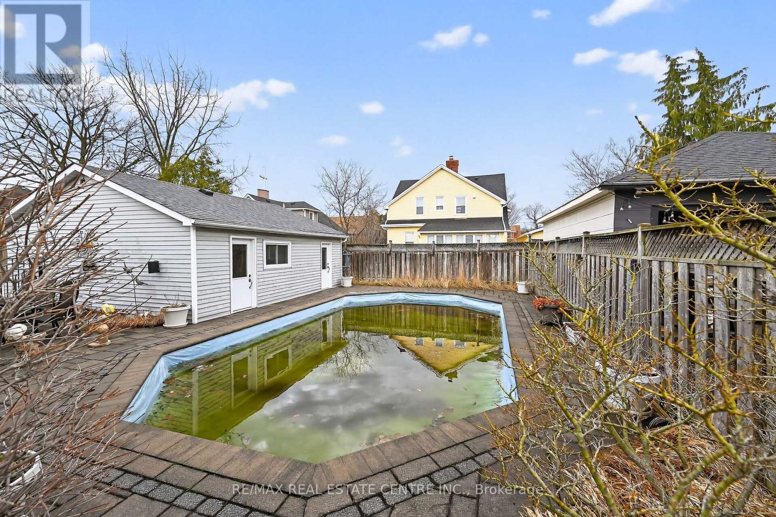 Welcome to this charming 2-storey home nestled in the heart of highly sought-after Olde Stoney Creek. Full of warmth and character, this lovingly maintained property showcases beautiful original trim and rich hemlock woodwork that truly sets it apart. Offering 3 bedrooms and 1.5 bathrooms, this home blends timeless charm with thoughtful updates. The bright and inviting sunroom is filled with natural light, creating the perfect space to relax, while the skylight-lit upper hallway adds even more brightness throughout. The main floor features a functional layout with an updated kitchen, updated bathrooms, and a cozy family room ideal for everyday living. Mechanically sound and meticulously cared for, this home includes updated windows (2015), furnace (2021), A/C (2015), a 200-amp electrical service with copper wiring, and copper plumbing throughout. The roof was replaced in 2016, and the detached 20 x 20 garage (2023) with hydro offers endless potential-perfect as a workshop, man cave, or easily convertible to additional functional space. Step outside to your private backyard oasis featuring a beautifully landscaped, kidney-shaped inground pool (refreshed in 2013) with a new pump and filter valve (2025), making it ideal for summer entertaining. Additional features include an owned hot water heater (2022), central vacuum with attachments, and an unfinished basement offering great storage or future potential. Located in a quiet, established neighbourhood known for its charm, mature trees, and strong sense of community, Olde Stoney Creek offers easy access to parks, schools, shopping, and the waterfront-making it a perfect place to call home. This property is truly immaculate and full of character-you don't find homes like this often. (id:4555)