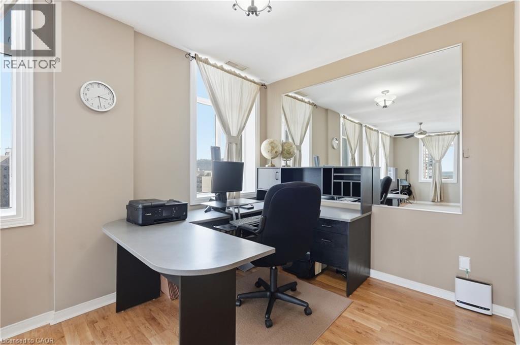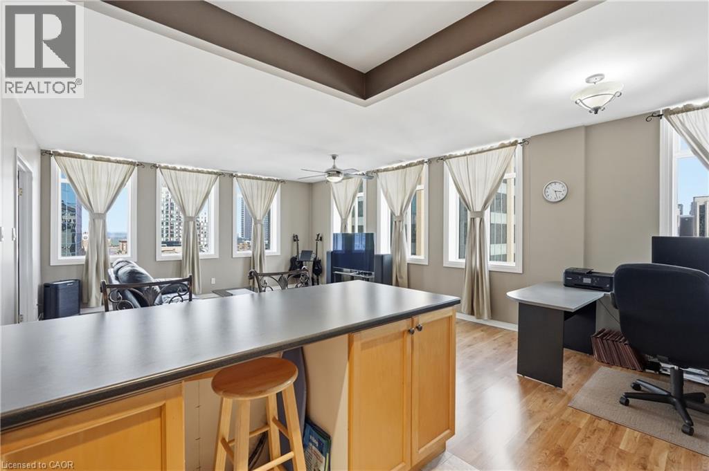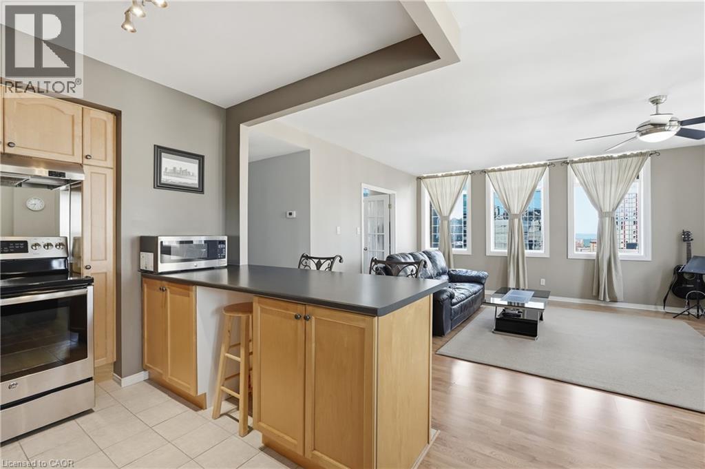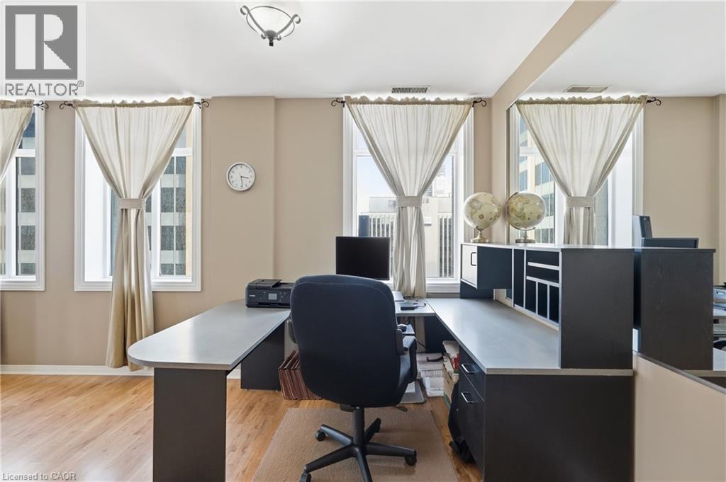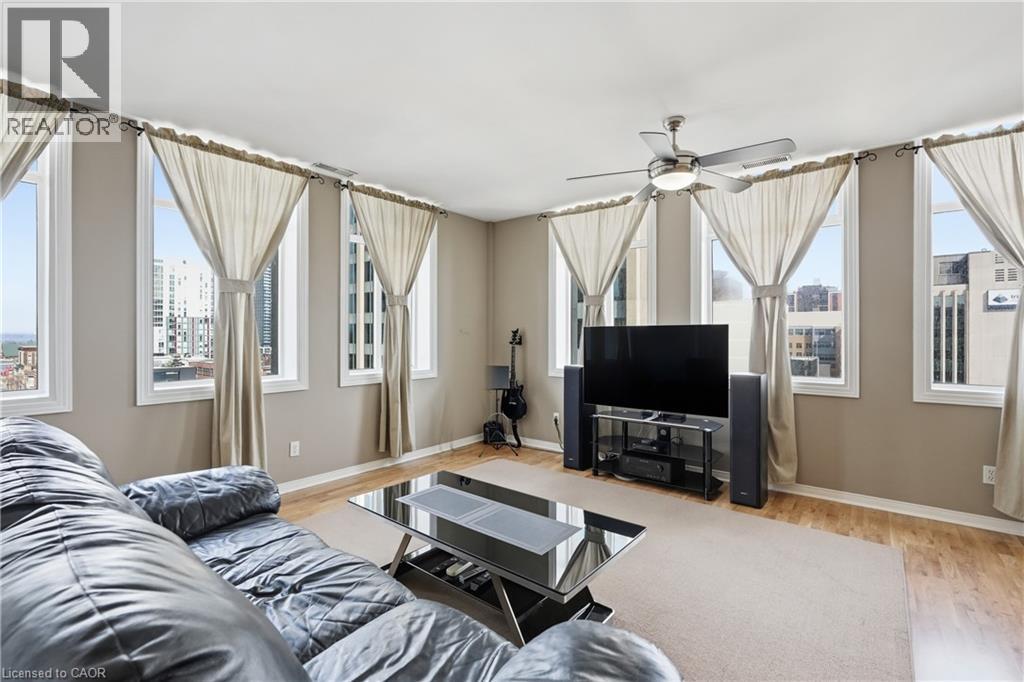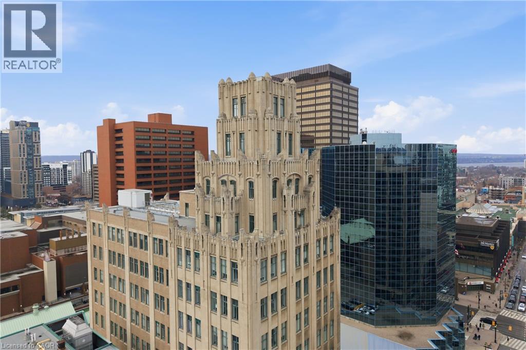 Own a piece of Hamilton’s history in the iconic Pigott building, the city’s first skyscraper, built in 1929 and celebrated for its art deco, gothic revival architecture and heritage designation. Converted to condominiums in 1996, this landmark seamlessly blends historic charm with modern urban living, offering amenities such as a fitness centre, billiards room, and party/meeting space. This rare corner suite features 9.5 ft ceilings, oversized windows, and breathtaking panoramic views of Hamilton bay, the city skyline, and the escarpment. The spacious layout is filled with natural light, creating a bright and airy atmosphere throughout. The primary bedroom offers a generous layout with a large walk-in closet, while the second bedroom, complete with French doors, is ideal as a home office, guest room, or gym. The open-concept living and dining area is perfect for entertaining while taking in the stunning views. Located in the heart of downtown Hamilton, this prime setting offers a fully walkable lifestyle just steps to top restaurants, entertainment, and cultural attractions. Additional features include full-size in-suite laundry and one parking space, with convenient access to HSR and GO Transit, the public library, Jackson Square, the Farmers’ Market, parks, McMaster University, and local hospitals all nearby. (id:4555)
