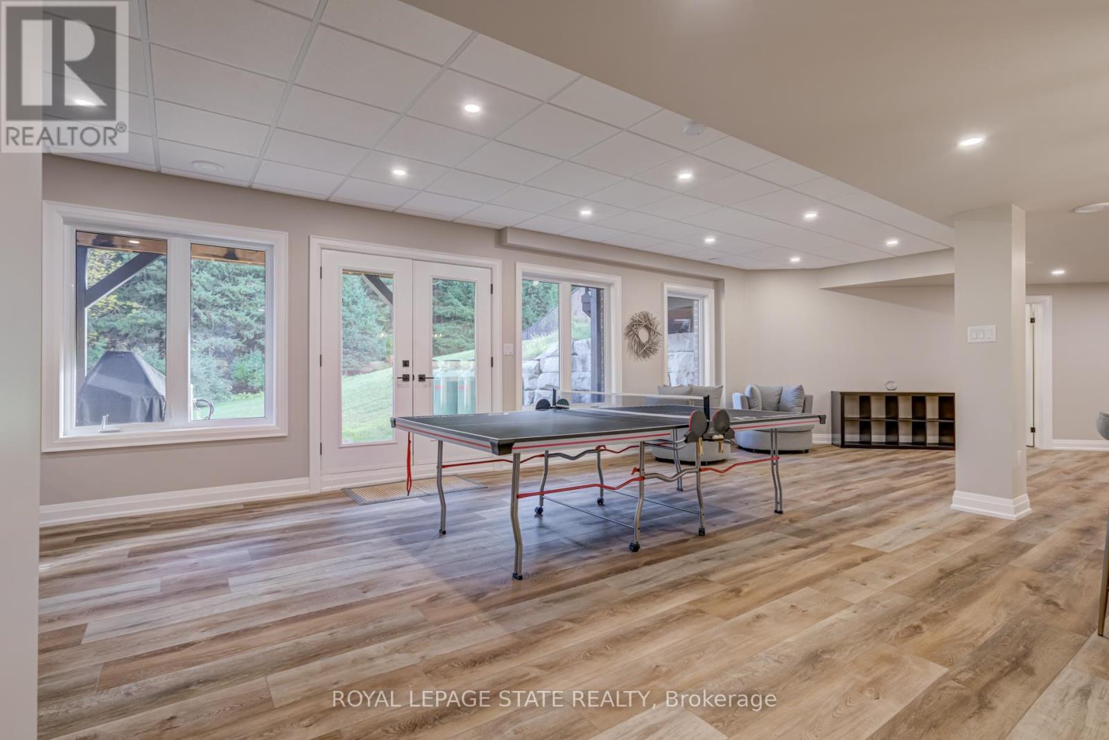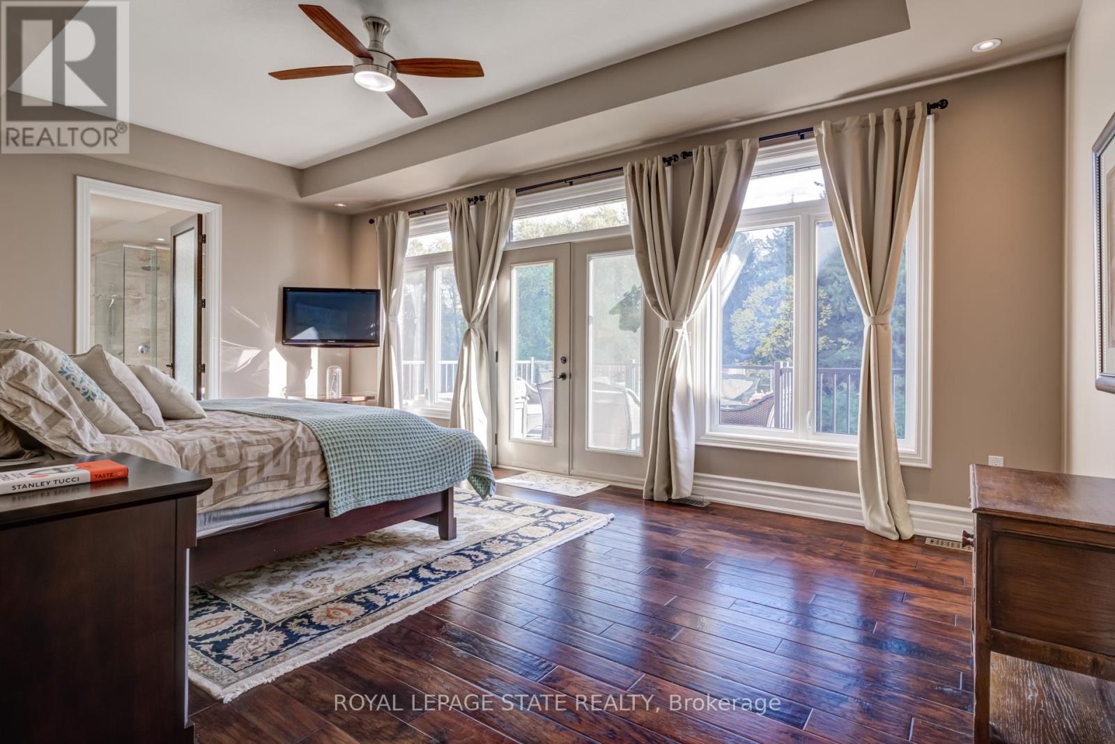 An extraordinary estate where luxury living meets the tranquility of nature. Set on 6.37 private acres directly across from Dundas Valley Conservation Area (over 40 km of hiking/cycling trails), this custom 8,075 sq. ft. bungaloft offers a rare opportunity to experience Muskoka-like serenity just minutes from Ancaster and Dundas. A long, tree-lined driveway leads to a secluded residence surrounded by mature forest, private trails, and a picturesque pond, creating a true year-round retreat. The backyard is a resort- inspired oasis featuring a stunning 20' x 35' mountain lake-style pool with waterfalls, expansive lounging areas, and a covered outdoor patio designed for effortless entertaining. Inside, timeless craftsmanship and scale define the home. Soaring 9-foot ceilings on all levels and a 14-foot coffered great room create an impressive yet inviting atmosphere. Rich finishes, solid maple doors, custom millwork, and a grand foyer elevate every space. The chef's kitchen is both functional and refined, equipped with premium appliances, custom cabinetry, a servery, and walk-in pantry, seamlessly connecting to the main living and dining areas. The main-floor primary suite offers a private retreat with a spa-inspired ensuite, oversized dressing room, and a secluded deck overlooking the grounds. Designed for long-term comfort, the home also features accessible main-level living. Upstairs, 3 spacious bedrooms, all with ensuite access provide comfort for family and guests, while a partially finished 600 sq. ft. loft space offers endless potential. The fully finished walk-out lower level (2023) functions as a self-contained living space, complete with a full kitchen, bedrooms, recreation areas, and separate access - ideal for extended family or multi- generational living. With geothermal heating & cooling, a whole-home generator, and exceptional efficiency, this home delivers both luxury and peace of mind. A rare offering where privacy, nature, and refined living converge. (id:4555)
