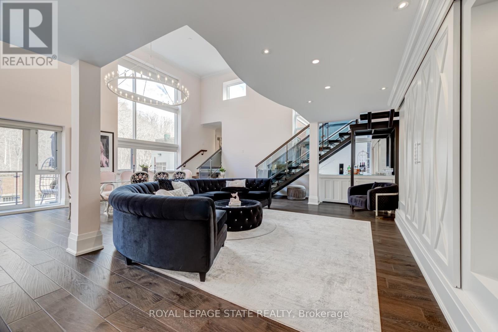 Stunning penthouse-inspired luxury at the District Lofts! Circa 1929, this boutique building was completely rebuilt in 2013 and offers just 44 unique residences. Unit 215 is one of the largest in the building, presenting a rare opportunity for the discerning buyer. An oversized double-car garage and private entrance create a true home-like feel without the exterior maintenance. Experience the grandeur of this loft-style, two-storey condo featuring a spectacular open-concept living space filled with natural light, soaring 17-ft ceilings, and a dramatic Restoration Hardware chandelier, all complemented by breathtaking views of Dundas Peak. The gourmet kitchen is both elegant and functional, showcasing extended-height cabinetry, high-end appliances, quartz countertops, and a large island with seating for six-perfect for entertaining. This residence offers two spacious bedrooms and two spa-like bathrooms with upgraded fixtures. Additional features include two private balconies, full-sized laundry, and extensive custom closet storage. Premium upgrades throughout include custom trim and millwork, Swarovski crystal hardware, and motorized blinds. The building features state-of-the-art in-floor radiant heating, and this unit includes a brand-new A/C system. Amenities at the Lofts include a fitness studio, a large exclusive locker, and a rooftop patio-ideal for entertaining or relaxing while enjoying the views and tranquil sounds of the nearby waterfall. Ideally located at the foot of Dundas Peak, just steps to the Bruce Trail, Webster's Falls, Dundas Valley Golf & Curling Club, and the historic downtown core, offering a vibrant mix of shops and restaurants. (id:4555)