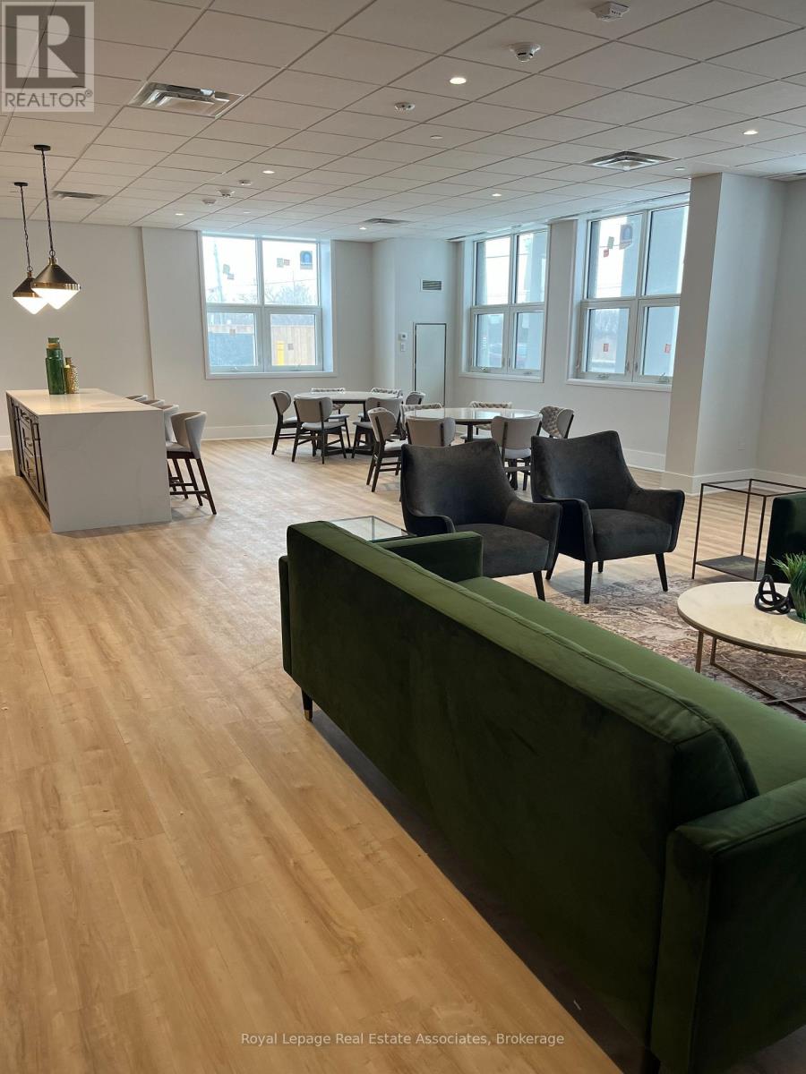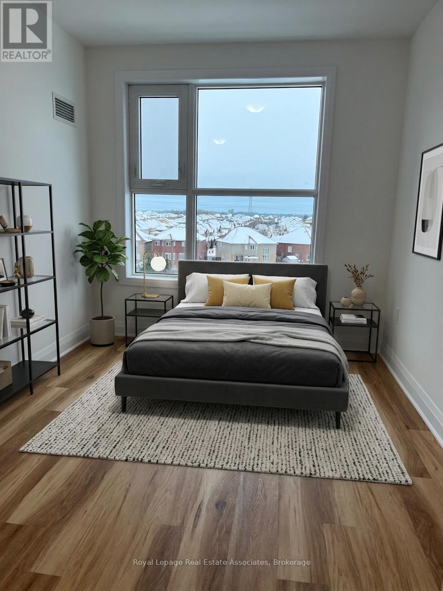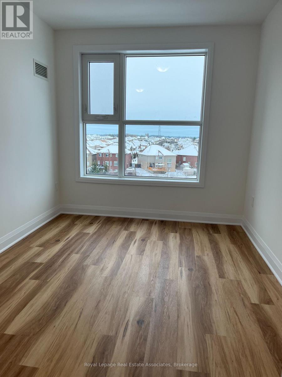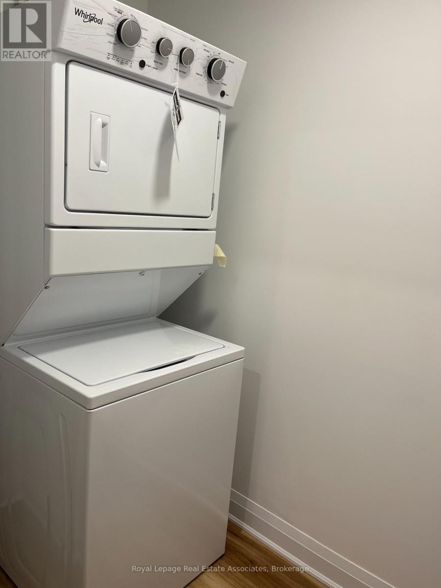 Welcome to your luxury top floor condo! This brand-new, top-floor 1-bedroom + den, 1-bath suite offers 641 sq. ft. of modern living space plus a balcony with views of the pond perfect for enjoying your morning coffee or relaxing evenings. Step inside to a bright and airy open-concept layout, featuring a sleek white kitchen with stainless steel appliances, stone coutertops and ample cabinetry for storage, all overlooking the living and dining area. Gorgeous laminate flooring flows throughout, adding warmth and elegance to the space. The primary bedroom boasts a walk-in closet, providing plenty of storage, while the versatile den is ideal for a home office. Enjoy the convenience of in-suite laundry and modern finishes throughout. With one underground parking and a storage locker, this condo also offers exceptional amenities such as a bright well equipped exercise room, sophisticated party room, roof top patio and parcel pick up room. Easy access to shopping, dining, and more. (id:4555)