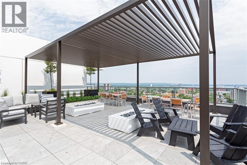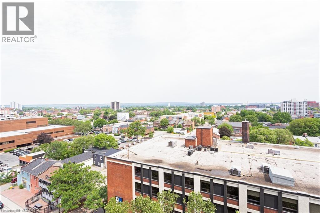 Welcome to Kiwi Condos in downtown Hamilton's King William Core! This North Facing Kings Cross model offers a 1 bedroom + den and 1 bathroom with over 650 sqft of functional living space. The custom kitchen features stainless steel appliances and opens to the living room with a walkout to a private balcony with unobstructed views . In-suite laundry and a locker (#15) are included. Enjoy amenities like an elegant lobby, parcel room, pet spa, bike storage room with bike repair station, gym, yoga studio, rooftop terrace with BBQs, social room with bar kitchen, indoor dining, a TV, fireplace and more. This is a fantastic opportunity to live in the heart of downtown Hamilton's vibrant restaurant and cafes scene just steps from parks, trails, shopping, theaters and stadiums, and within easy access to public transportation including the Hamilton GO Centre and West Harbour GO Station and major highways. Don't miss out! Unlimited Bell Fibe internet is included in the lease. Tenant pays Hydro/Water & Heat Pump Rental. (id:4555)