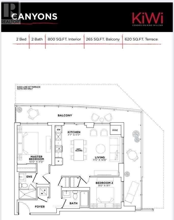 Introducing an exceptional Corner Unit opportunity in prestigious KIWI Condos located in the heart of downtown Hamilton. This thoughtfully designed 800 sq. ft. suite offers a well-proportioned layout featuring 2 bedrooms and 2 full bathrooms, ideal for both comfortable living and investment potential. The interior is enhanced by 9-foot smooth ceilings and premium 6" wide vinyl plank laminate flooring throughout, creating a modern and cohesive aesthetic. The open-concept kitchen is appointed with stainless steel appliances and a sleek quartz countertop, providing both functionality and contemporary appeal. Seamlessly connected to the living space, this area is perfect for entertaining or everyday enjoyment. A standout feature of this residence is the expansive 265 sq. ft. wraparound balcony, offering an impressive outdoor extension with excellent city views. Additional conveniences include one underground parking space and a storage locker. Situated in a vibrant urban setting, this property is steps from acclaimed restaurants, entertainment venues, and essential amenities, with immediate access to major highways and the Hamilton GO Centre-making commuting effortless. This is a rare opportunity to own a stylish, well-appointed condo in one of Hamilton's most dynamic neighborhoods. (id:4555)