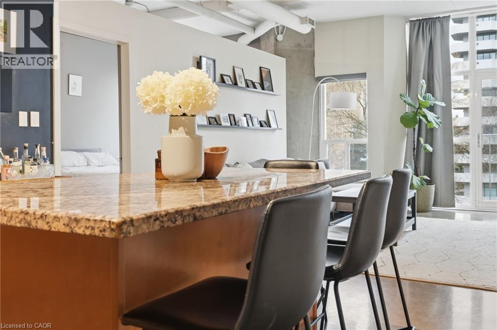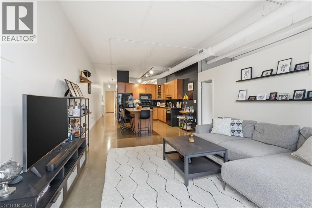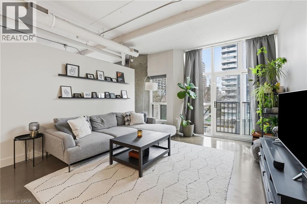 Welcome to Core Lofts, a unique conversion of the historic Bell Canada building in the heart of downtown Hamilton. This spacious Lincoln model offers approximately 1,100 square feet of loft-style living with 10+ ft ceilings, floor-to-ceiling windows and polished concrete floors. Filled with great afternoon light from its west-facing exposure, the unit features a Juliet balcony and an open layout centred around a spacious kitchen with granite counters, newer appliances and an oversized island. Two well-sized bedrooms, updated bathrooms and in-suite laundry complete the space. The building offers a rooftop patio with BBQs and city views, along with a gym and party room – all just steps to transit, the GO station, restaurants and everything downtown has to offer. Available from July 1st with flexible lease terms and the option of furnished or unfurnished. One parking space is currently rented for $200/month, with the option to assume. Don’t be TOO LATE*! *REG TM. RSA. (id:4555)