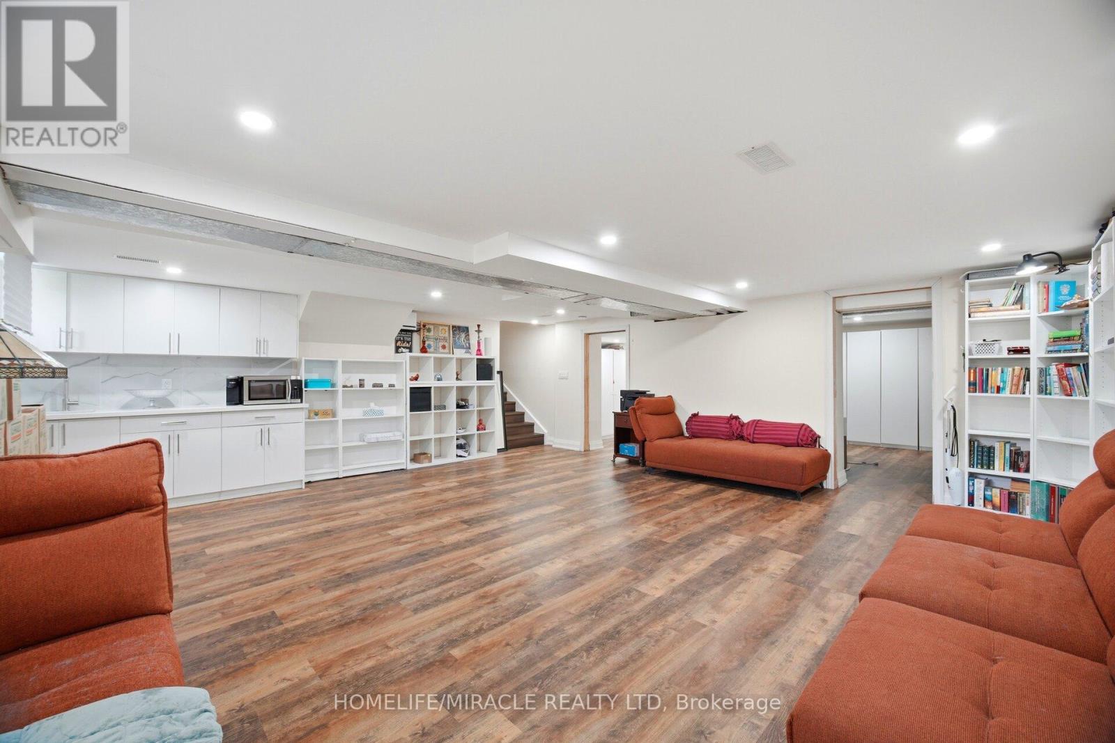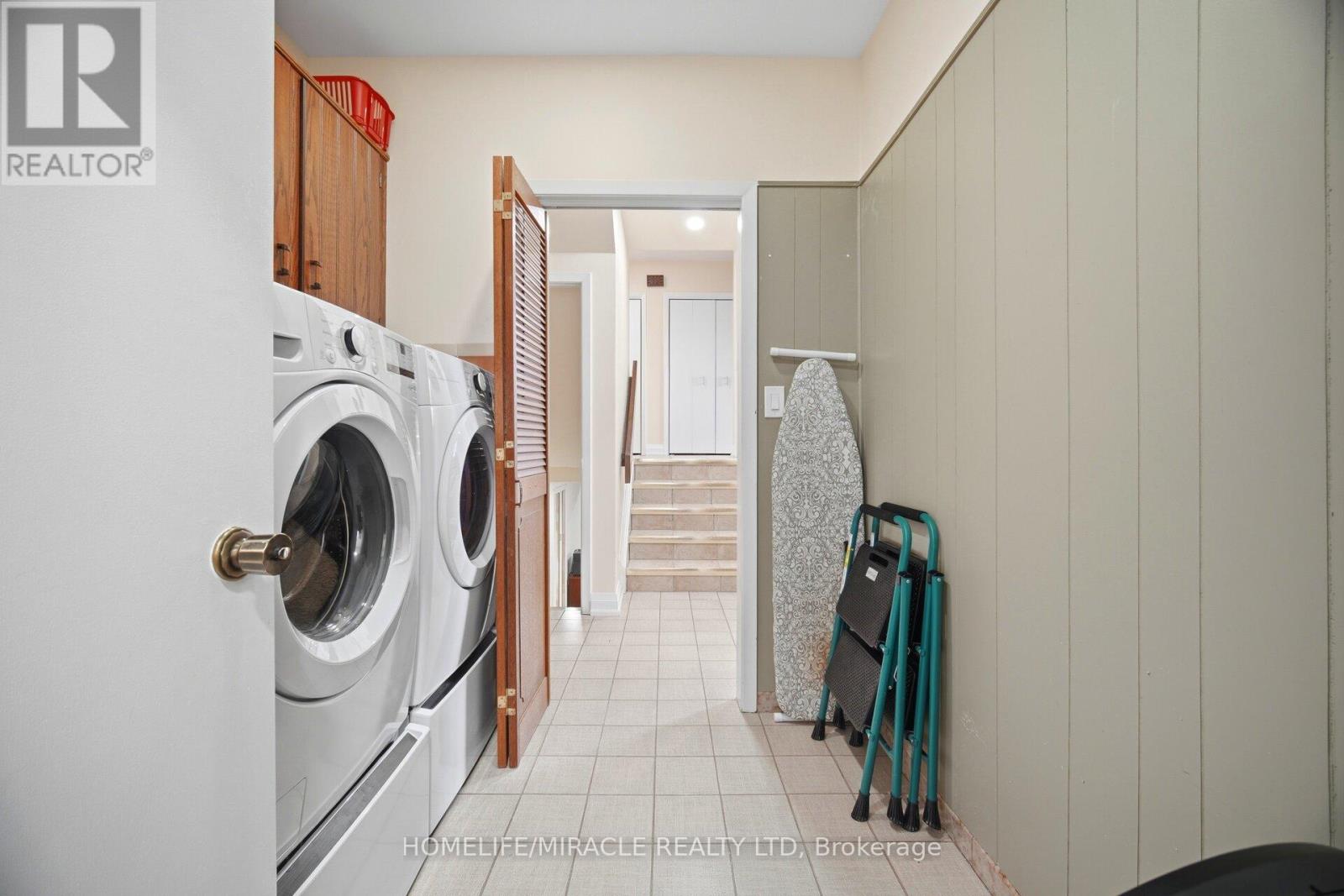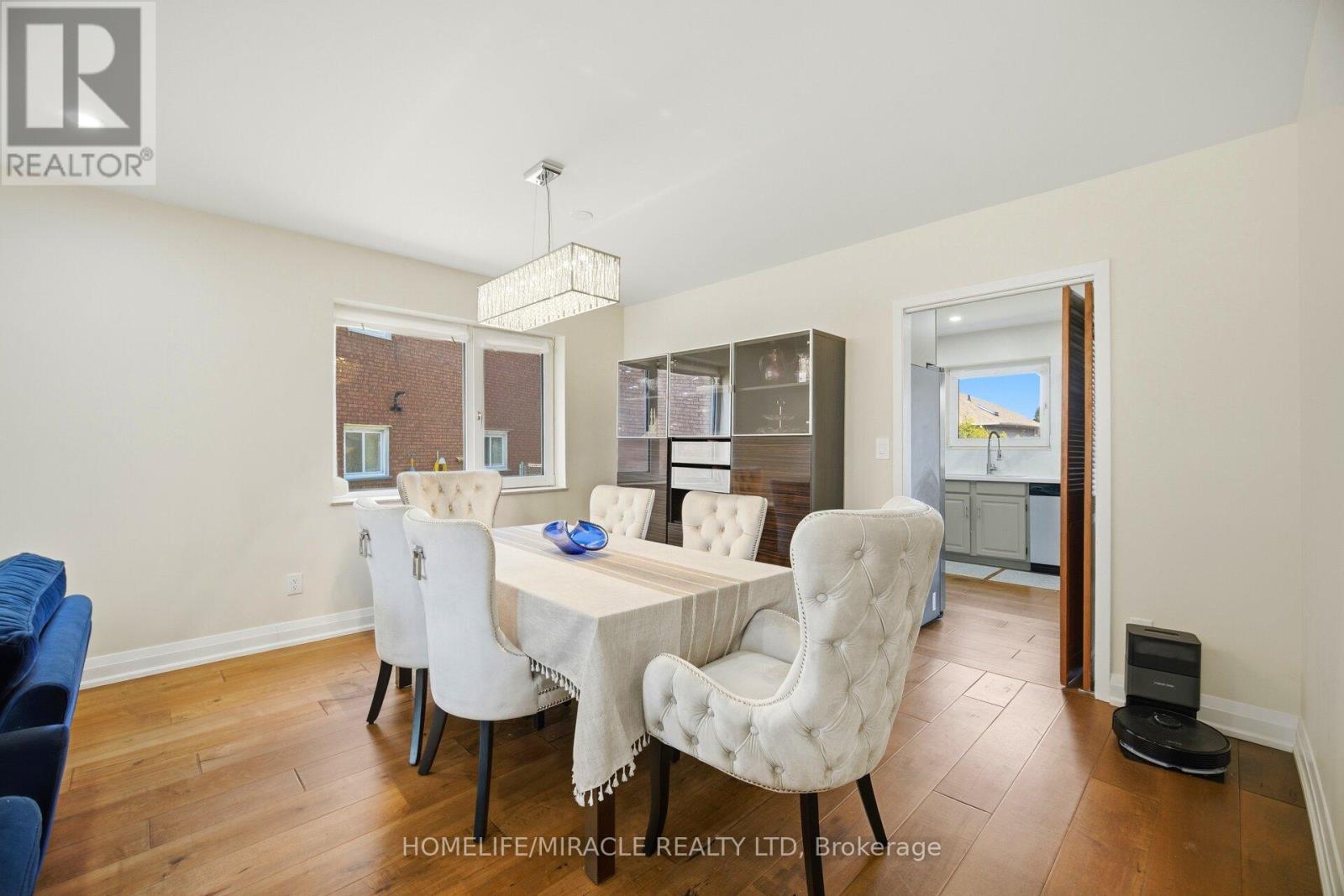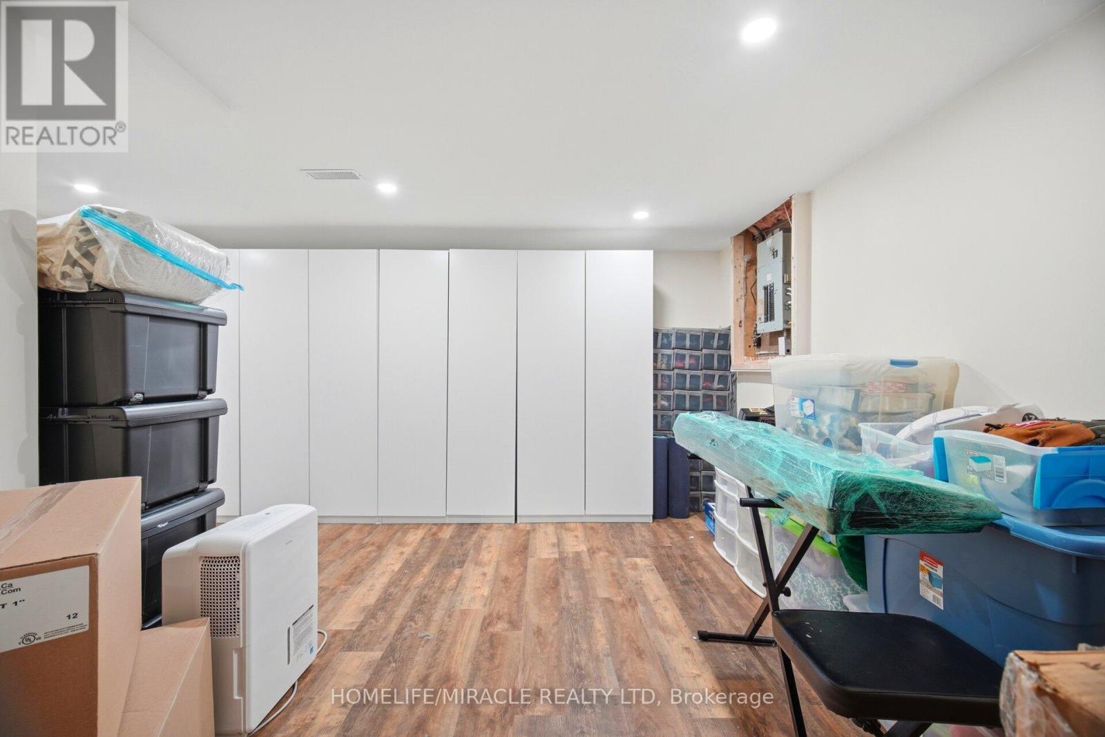 Nestled on a quiet, tree-lined street, this beautifully renovated custom-built solid brick home sits on a rare pie-shaped lot, offering exceptional privacy, curb appeal, and charm in a highly desirable and family-friendly neighborhood. Featuring premium German-engineered inward-opening windows (2010) for enhanced energy efficiency and durability, the home was extensively renovated in 2023 with new hardwood flooring, a sleek stainless steel gas stove and refrigerator, and a striking electric fireplace with a mounted 85-inch television, creating a warm, modern, and inviting living environment throughout with high-quality finishes. The spacious eat-in kitchen with contemporary glass railings overlooks a sunken family room filled with natural light and offers a seamless walkout to a large, private backyard with a covered patio-ideal for entertaining, outdoor dining, or relaxing in a peaceful setting. The main level also includes customized baseboards, remotely operable dimmable pot lights, a well-appointed 3-piece bathroom, and a thoughtfully designed laundry room with full-size washer and dryer, built-in bottom drawers, and upper cabinets for ample storage. Direct access to an oversized two-car garage with automatic openers, a side entry door, and an additional refrigerator provides added convenience, functionality, and everyday peace of mind. Upstairs features three generously sized bedrooms, including a spacious primary suite with a fully renovated ensuite. The updated main bathroom offers a double vanity and a full-size custom cabinet for enhanced storage and practicality. With approximately 2,800 sq. ft. of living space, a basement crawl space behind built-in bookshelves, enhanced security shutters, and close proximity to highways, top-rated schools, shopping, parks, and scenic surroundings, this move-in-ready home delivers exceptional comfort, style, and location, making it a perfect choice for families and discerning buyers alike. (id:4555)