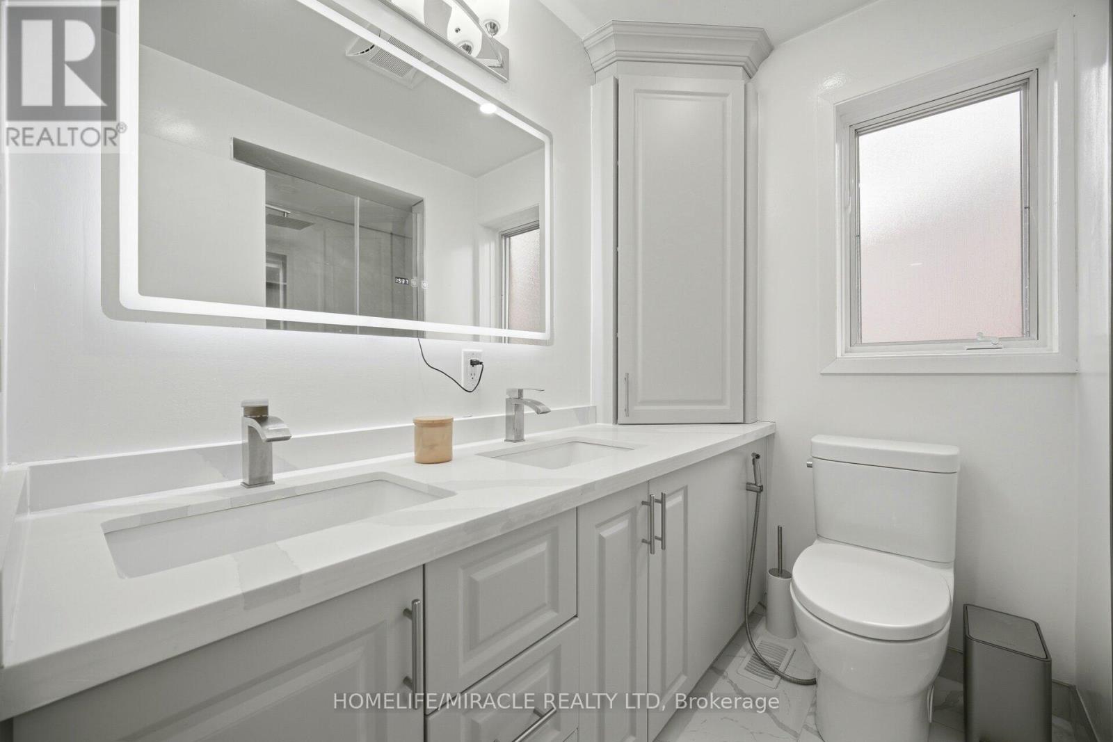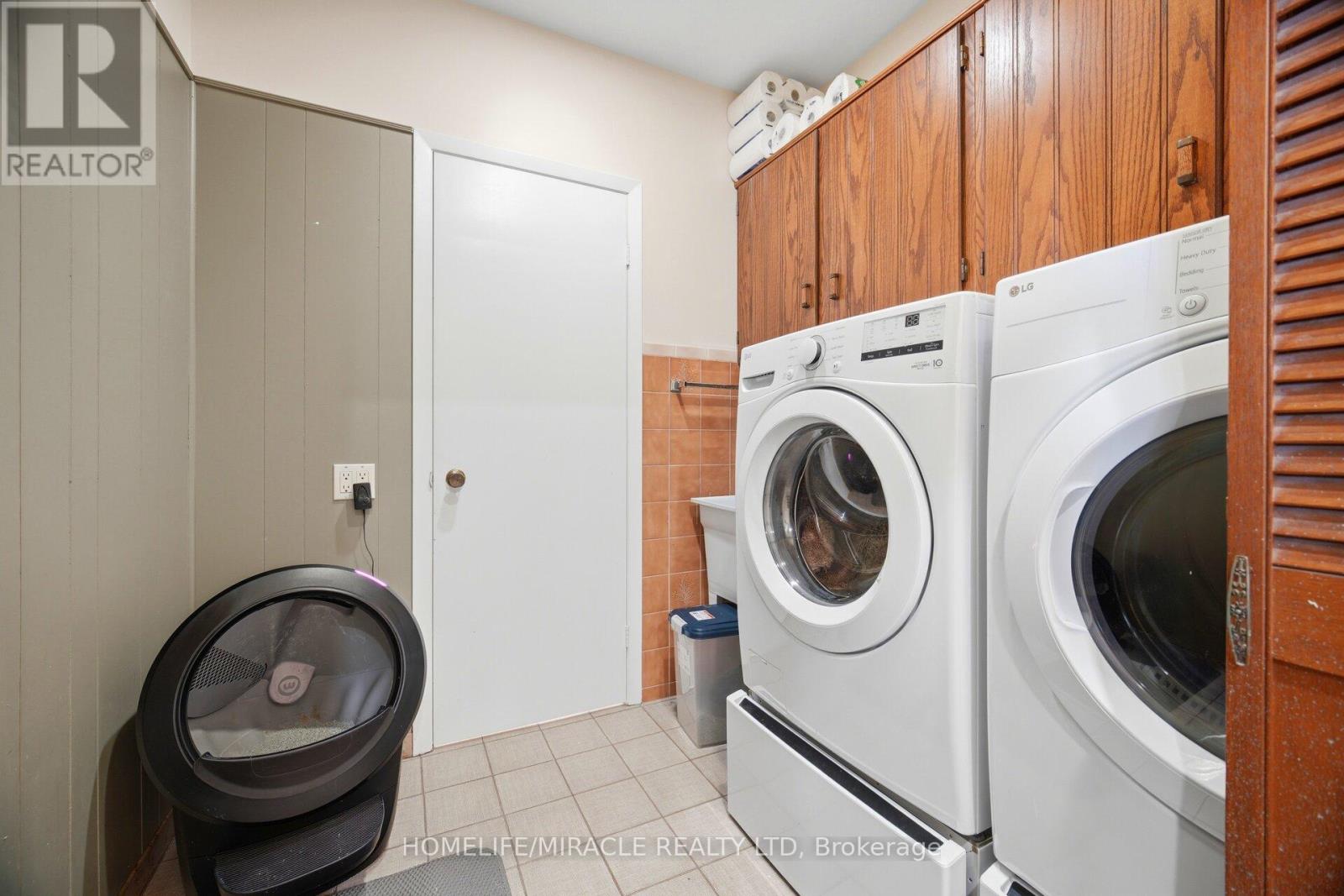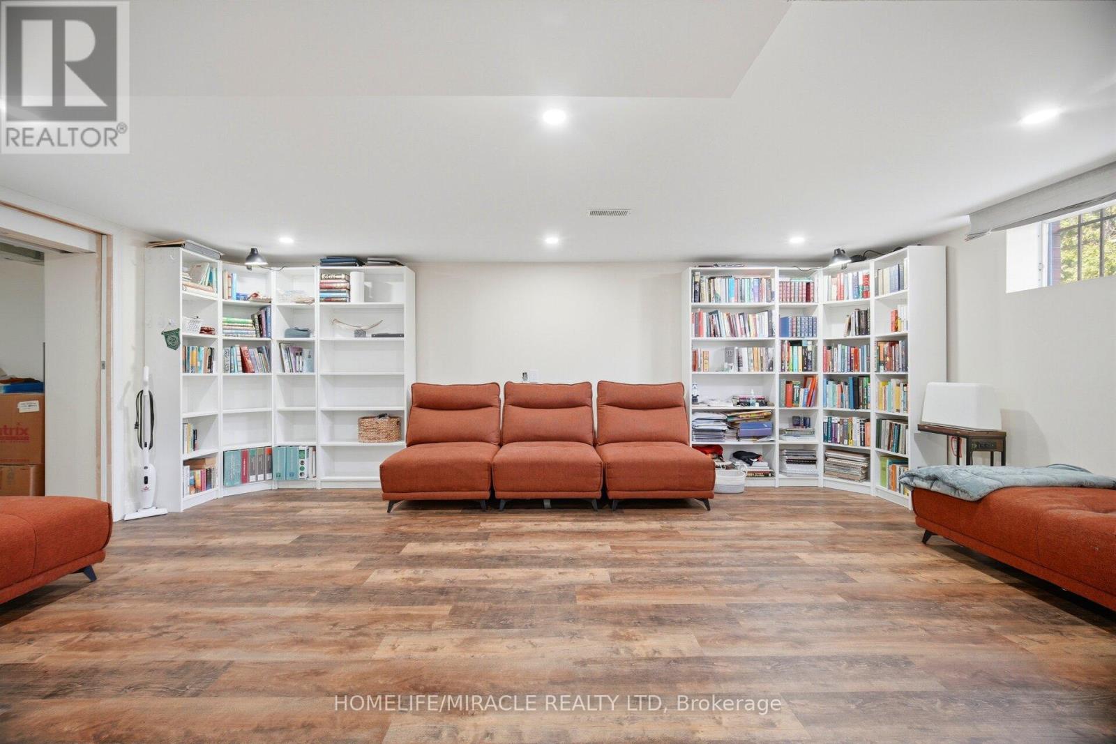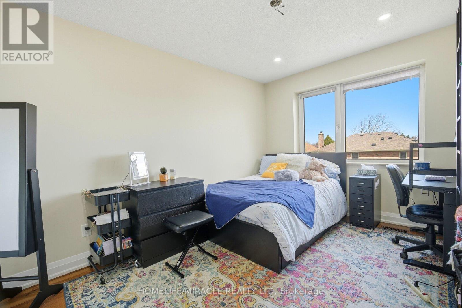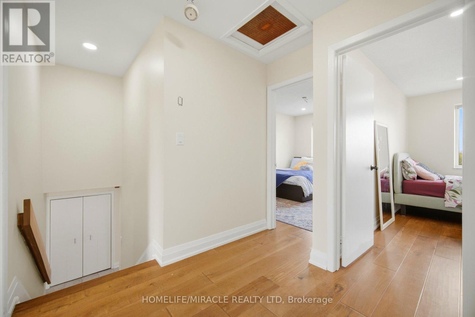 Nestled on a quiet, tree-lined street, this beautifully renovated custom-built solid brick home sits on a rare pie-shaped lot, offering exceptional privacy, curb appeal, and charm in a highly desirable and family-friendly neighborhood. Featuring premium German-engineered inward-opening windows (2010) for enhanced energy efficiency and durability, the home was extensively renovated in 2023 with new hardwood flooring, a sleek stainless steel gas stove and refrigerator, and a striking electric fireplace with a mounted 85-inch television, creating a warm, modern, and inviting living environment throughout with high-quality finishes. The spacious eat-in kitchen with contemporary glass railings overlooks a sunken family room filled with natural light and offers a seamless walkout to a large, private backyard with a covered patio-ideal for entertaining, outdoor dining, or relaxing in a peaceful setting. The main level also includes customized baseboards, remotely operable dimmable pot lights, a well-appointed 3-piece bathroom, and a thoughtfully designed laundry room with full-size washer and dryer, built-in bottom drawers, and upper cabinets for ample storage. Direct access to an oversized two-car garage with automatic openers, a side entry door, and an additional refrigerator provides added convenience, functionality, and everyday peace of mind. Upstairs features three generously sized bedrooms, including a spacious primary suite with a fully renovated ensuite. The updated main bathroom offers a double vanity and a full-size custom cabinet for enhanced storage and practicality. With approximately 2,800 sq. ft. of living space, a basement crawl space behind built-in bookshelves, enhanced security shutters, and close proximity to highways, top-rated schools, shopping, parks, and scenic surroundings, this move-in-ready home delivers exceptional comfort, style, and location, making it a perfect choice for families and discerning buyers alike. (id:4555)