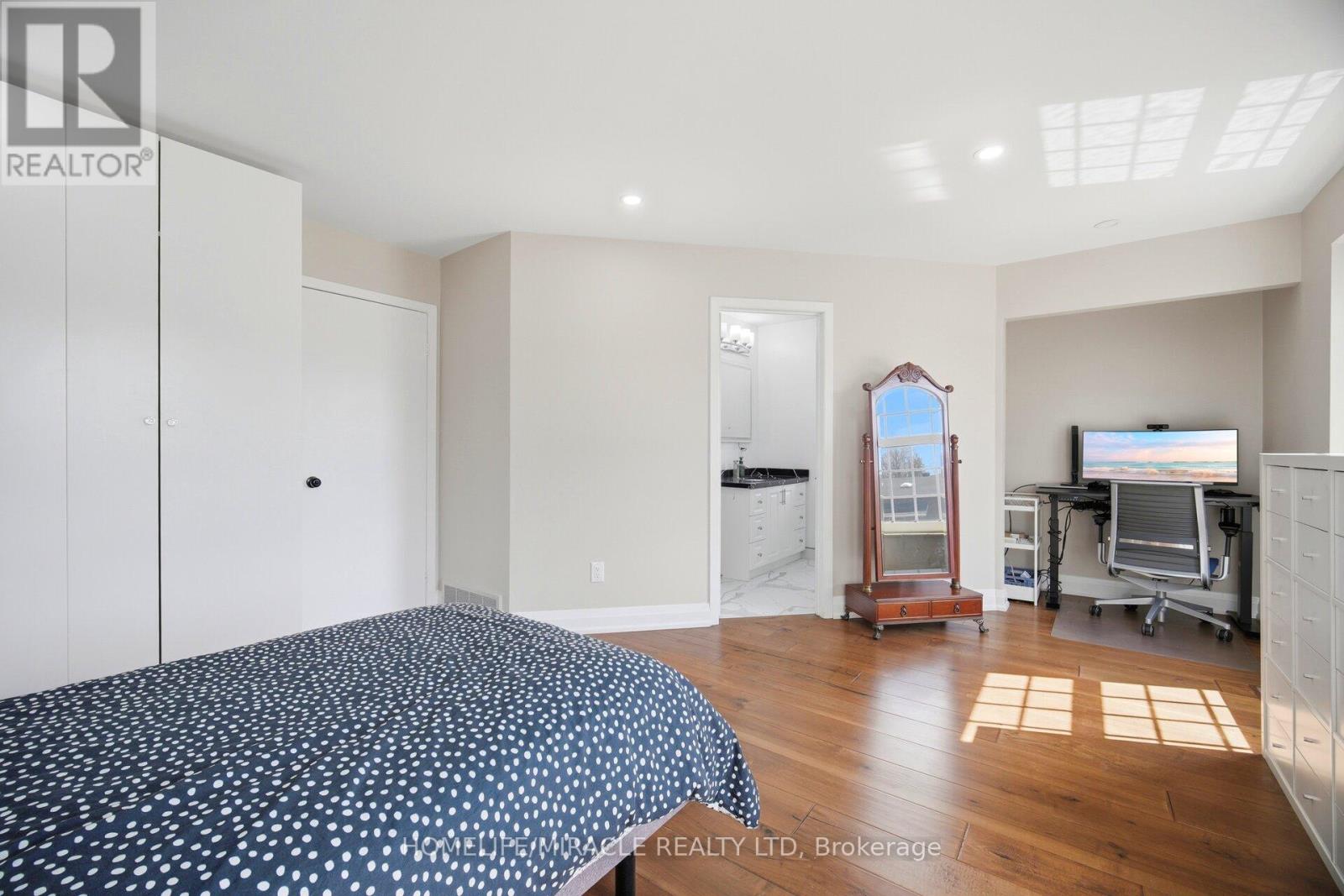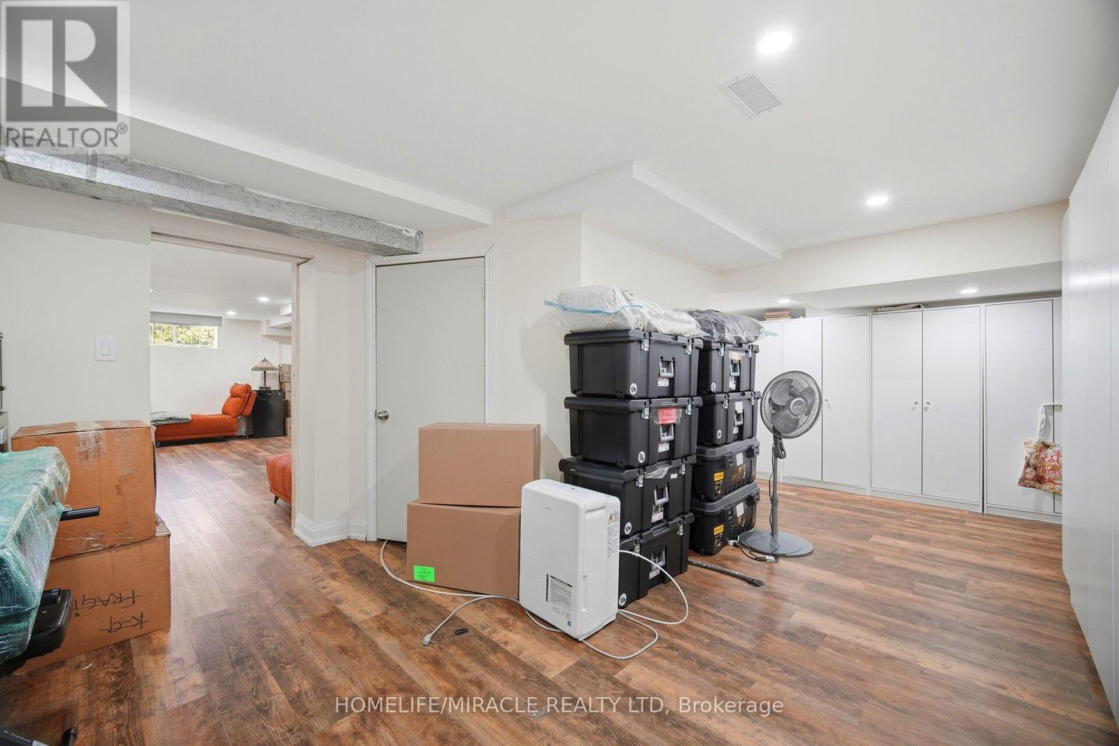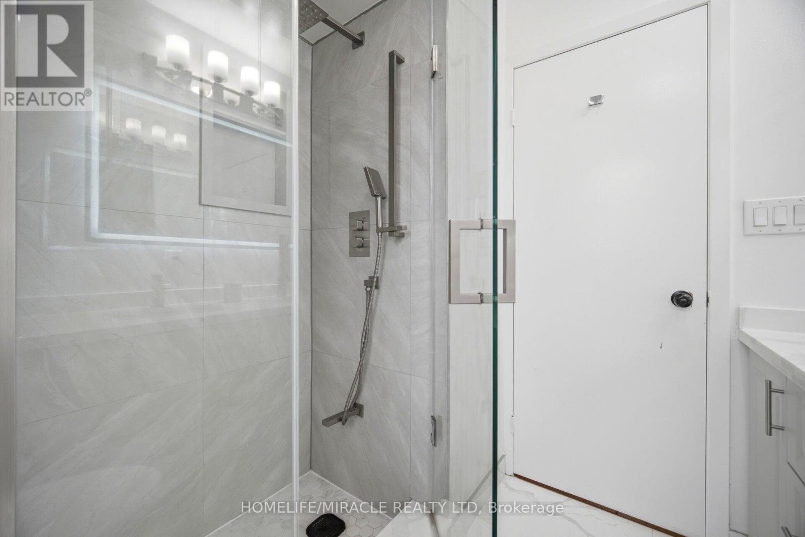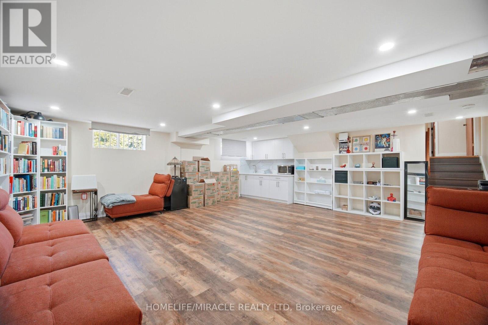 Nestled on a quiet, tree-lined street, this beautifully renovated custom-built solid brick home sits on a rare pie-shaped lot, offering exceptional privacy, curb appeal, and charm in a highly desirable and family-friendly neighborhood. Featuring premium German-engineered inward-opening windows (2010) for enhanced energy efficiency and durability, the home was extensively renovated in 2023 with new hardwood flooring, a sleek stainless steel gas stove and refrigerator, and a striking electric fireplace with a mounted 85-inch television, creating a warm, modern, and inviting living environment throughout with high-quality finishes. The spacious eat-in kitchen with contemporary glass railings overlooks a sunken family room filled with natural light and offers a seamless walkout to a large, private backyard with a covered patio-ideal for entertaining, outdoor dining, or relaxing in a peaceful setting. The main level also includes customized baseboards, remotely operable dimmable pot lights, a well-appointed 3-piece bathroom, and a thoughtfully designed laundry room with full-size washer and dryer, built-in bottom drawers, and upper cabinets for ample storage. Direct access to an oversized two-car garage with automatic openers, a side entry door, and an additional refrigerator provides added convenience, functionality, and everyday peace of mind. Upstairs features three generously sized bedrooms, including a spacious primary suite with a fully renovated ensuite. The updated main bathroom offers a double vanity and a full-size custom cabinet for enhanced storage and practicality. With approximately 2,800 sq. ft. of living space, a basement crawl space behind built-in bookshelves, enhanced security shutters, and close proximity to highways, top-rated schools, shopping, parks, and scenic surroundings, this move-in-ready home delivers exceptional comfort, style, and location, making it a perfect choice for families and discerning buyers alike. (id:4555)