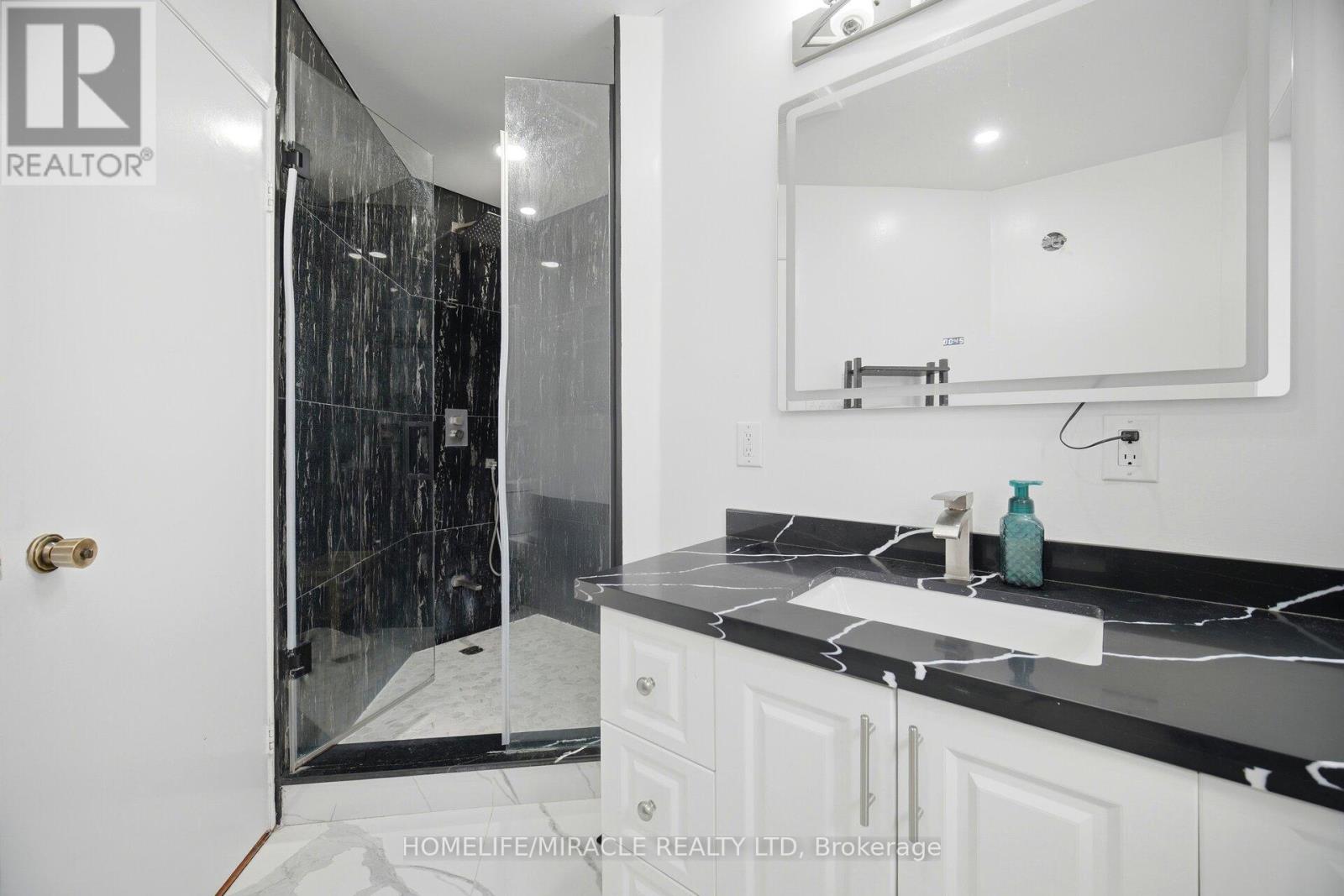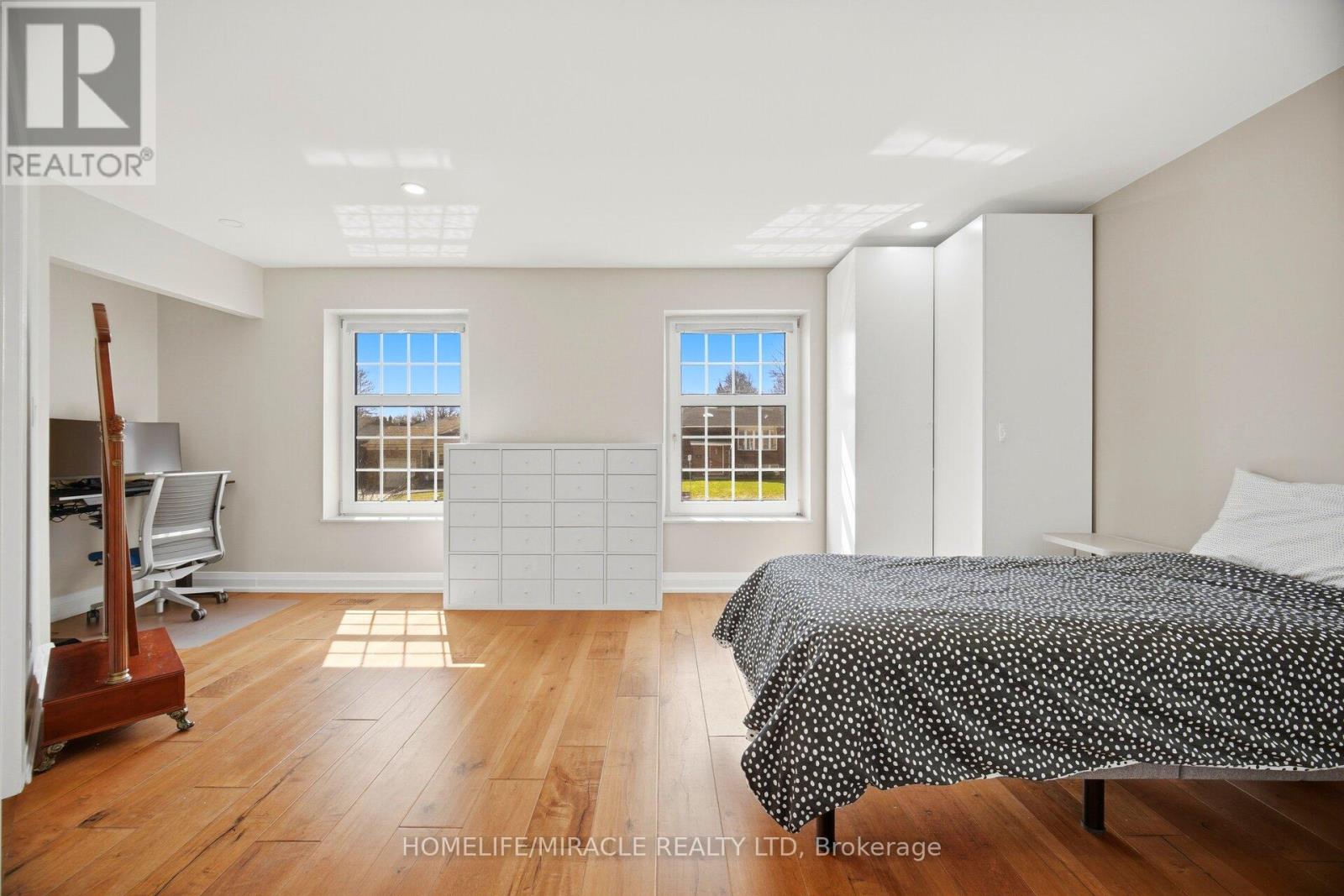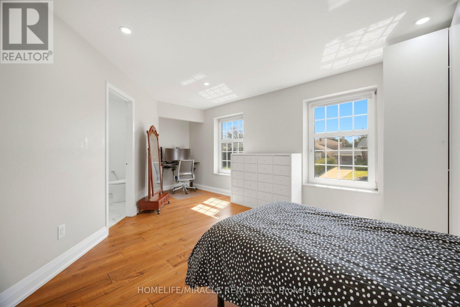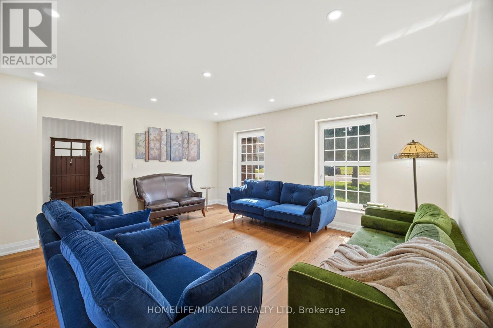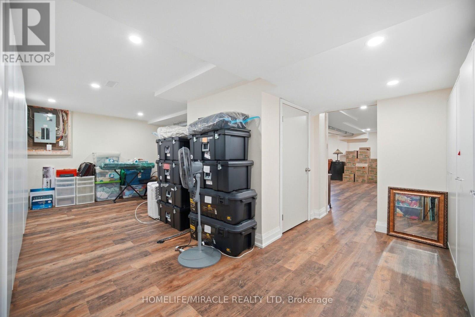 Nestled on a quiet, tree-lined street, this beautifully renovated custom-built solid brick home sits on a rare pie-shaped lot, offering exceptional privacy, curb appeal, and charm in a highly desirable and family-friendly neighborhood. Featuring premium German-engineered inward-opening windows (2010) for enhanced energy efficiency and durability, the home was extensively renovated in 2023 with new hardwood flooring, a sleek stainless steel gas stove and refrigerator, and a striking electric fireplace with a mounted 85-inch television, creating a warm, modern, and inviting living environment throughout with high-quality finishes. The spacious eat-in kitchen with contemporary glass railings overlooks a sunken family room filled with natural light and offers a seamless walkout to a large, private backyard with a covered patio-ideal for entertaining, outdoor dining, or relaxing in a peaceful setting. The main level also includes customized baseboards, remotely operable dimmable pot lights, a well-appointed 3-piece bathroom, and a thoughtfully designed laundry room with full-size washer and dryer, built-in bottom drawers, and upper cabinets for ample storage. Direct access to an oversized two-car garage with automatic openers, a side entry door, and an additional refrigerator provides added convenience, functionality, and everyday peace of mind. Upstairs features three generously sized bedrooms, including a spacious primary suite with a fully renovated ensuite. The updated main bathroom offers a double vanity and a full-size custom cabinet for enhanced storage and practicality. With approximately 2,800 sq. ft. of living space, a basement crawl space behind built-in bookshelves, enhanced security shutters, and close proximity to highways, top-rated schools, shopping, parks, and scenic surroundings, this move-in-ready home delivers exceptional comfort, style, and location, making it a perfect choice for families and discerning buyers alike. (id:4555)