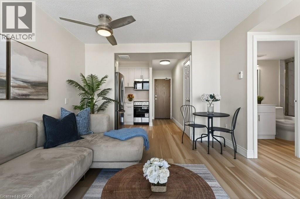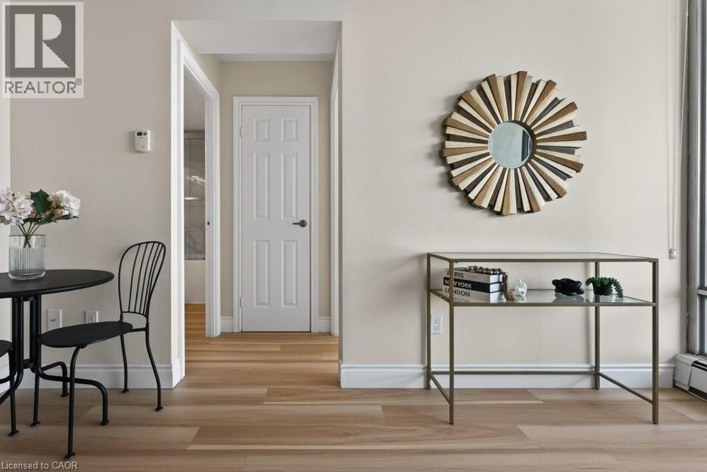Welcome to this beautifully renovated one bedroom, one bathroom condominium unit at The Olympia, a modern urban living space in the heart of the city. This contemporary unit offers a perfect blend of comfort, style and functionality, making it an ideal choice for young professionals, couples, or anyone looking to experience a convenient downtown lifestyle. This unit has undergone extensive renovations offering a fresh and clean environment. Updated flooring, kitchen, appliances, washroom, lighting and radiators have all been thoughtfully chosen to create a warm, inviting space. Large windows flood the unit with natural light and provide a fantastic view of the city and lake beyond. The Olympia has also undergone a fresh renovation elevating the lobby and common areas. Residents enjoy access to a range of amenities designed to enhance their living experience, including secure entry, on-site laundry facilities, indoor swimming pool, gym, sauna, steam room, rooftop patio, squash courts, party room and billiards room. Situated in the vibrant Corktown neighbourhood, this condo offers a perfect balance of tranquility and convenience. The neighbourhood offers easy access to Go Transit, popular restaurants and pubs at Young and Augusta, as well as access to shopping, St. Joe's hospital, medical offices and hiking and biking along the Escarpment. Whether you're a first-time buyer or looking to downsize, this unit offers a fantastic combination of style, convenience and value. (id:4555)